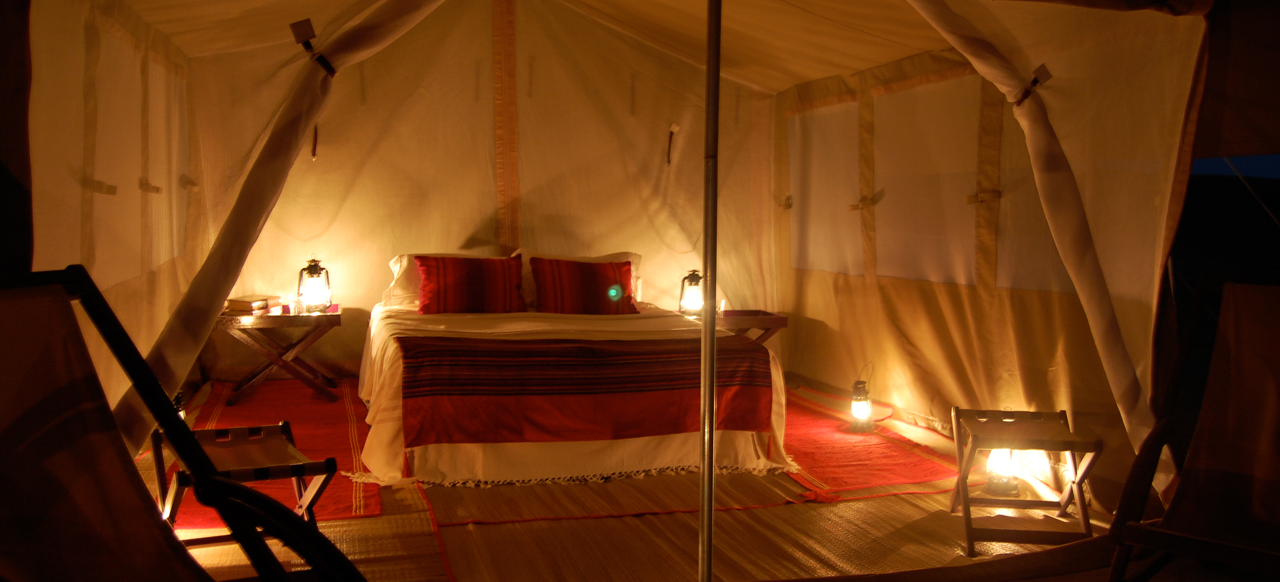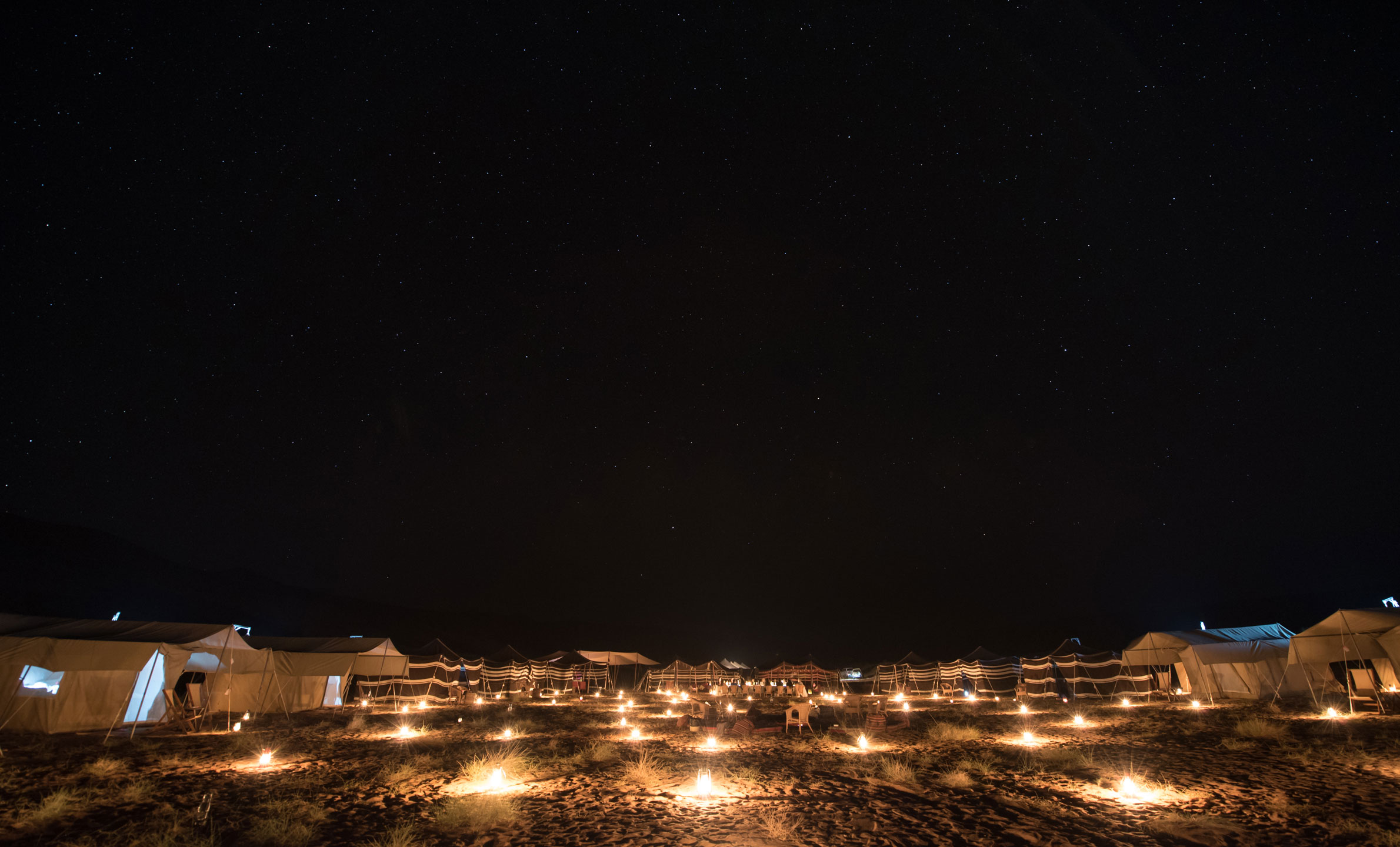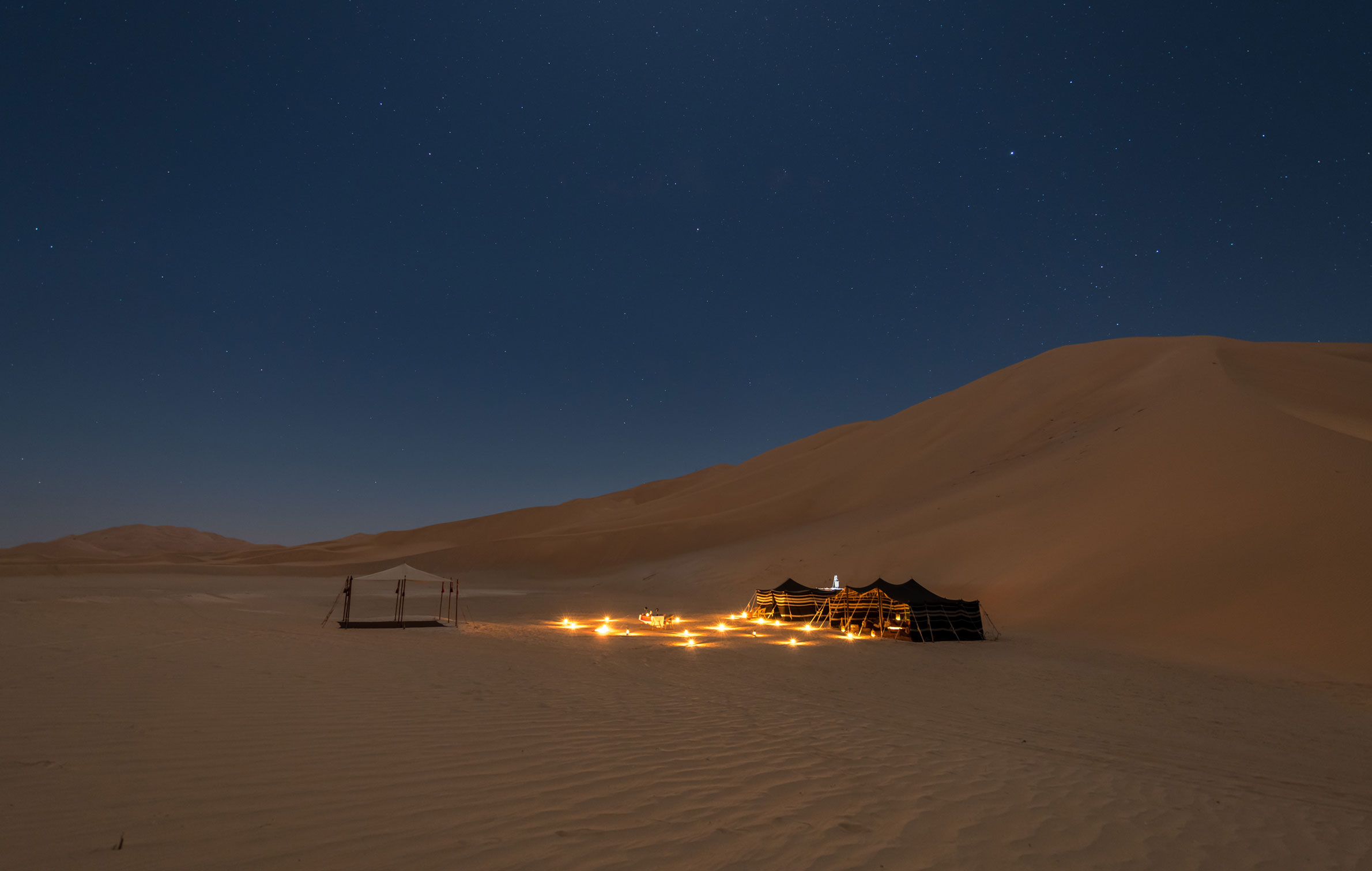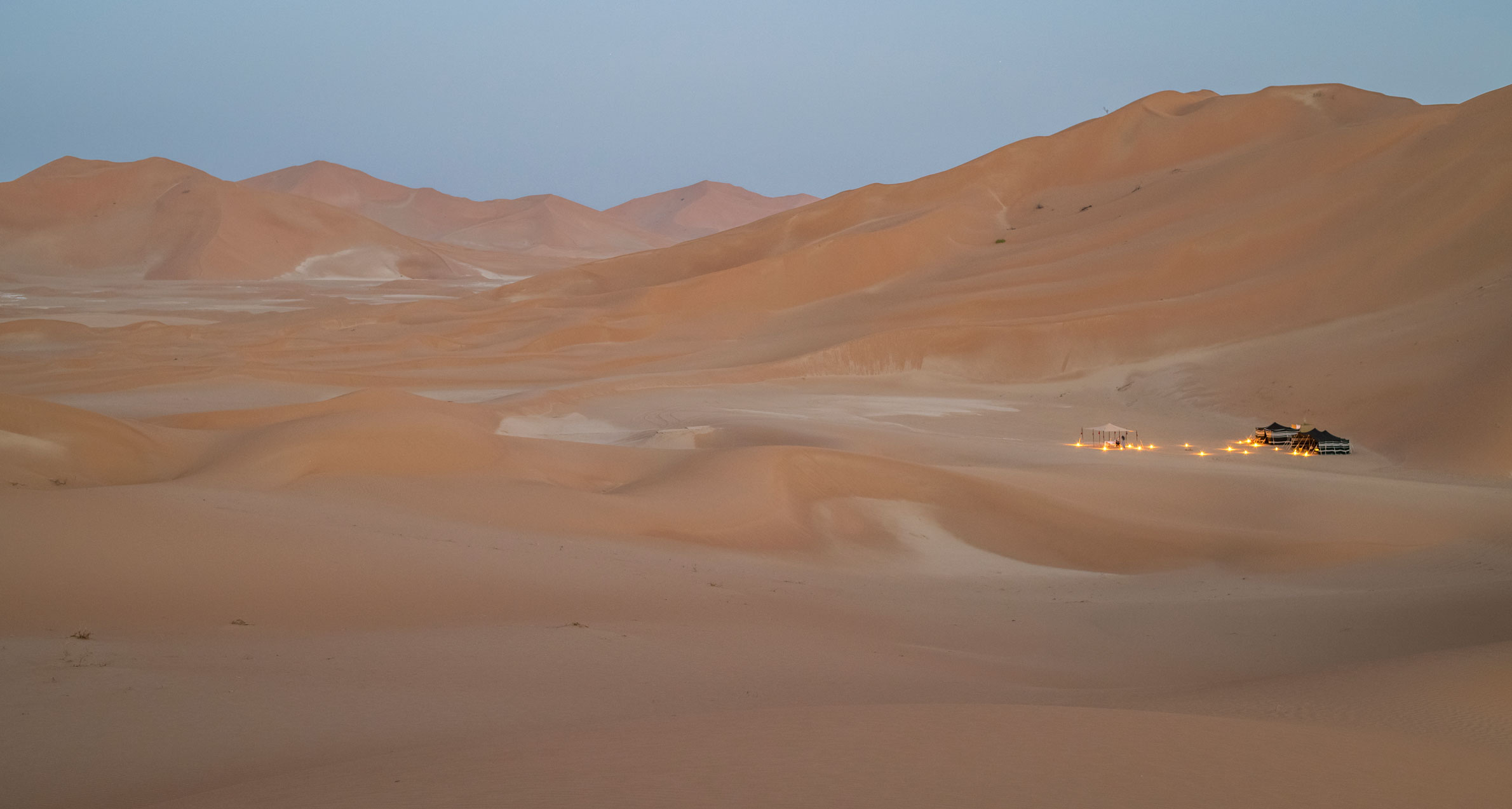 Hud Hud Travel är en exklusiv ökensafari där du bor i helt privata tältläger utan andra gäster och påminner om en äkta en beduinupplevelse. Du blir otroligt väl omhändertagen av bra guider och åker i bekväma fyrhjulsdrivna jeepar mellan camperna, till exempel från sandöknen Wahiba Sands till ett tältläger direkt på stranden vid Indiska oceanen. Tälten är rymliga och du sover i riktiga sängar bland kuddar och bolster. Varje tält har egen dusch och faciliteter. Det finns ingen elektricitet och att duscha i uppvärmda ”bucket showers” direkt under bar himmel och stjärnor är en del av den unika upplevelsen. I öknen där det är lite kallare om nätterna sker boendet i fyrkantiga syrianska tält med väggar tjocka som mattor. På stranden där nätterna är varmare är tälten tunnare och påminner om en afrikansk safariupplevelse på savannen. De underbara rätterna av grytor, grillat och nybakt bröd tillreds i kökstältet endast med gasolkök och kockar med pannlampa. De njuts sedan i natten bland mattor, kuddar och med vattenpipa under den arabiska stjärnhimlen. Hud Hud Travel är att leva underbart beduinliv - i ”Tusen och en natt-stil”.