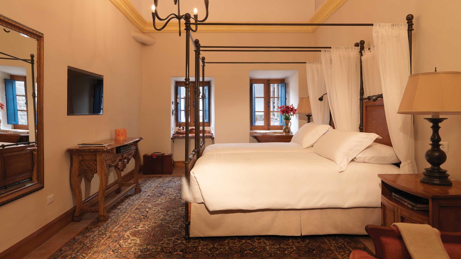 Palacio Nazarenas ligger på ett lugnt torg i det exklusiva området mellan Cuscos stora torg Plaza de Armas och den unga livliga stadsdelen San Blas. Den vackra byggnaden har varit såväl ett palats som ett kloster och har byggstenar från den inkabyggnad som en gång stått på platsen. År 1977 flyttade den sista nunnan ut och idag ryms istället 55 av Perus allra bästa sviter, ett spa, en restaurang och Cuscos första uppvärmda pool bakom den gamla fasaden. Alla sviter kan berikas med syre för att motverka höjdsjuka, och du får själv välja en subtil doft och arom till rummet av andinska blommor och örter. Stil och design är autentisk med handsnidade tak och naturliga färgpaletter. Hypnôze Spa omges av en lugn, privat uteplats och har behandlingsrum med glasgolv där du kan se den antika Inkaväggen. Restaurangen Senzo serverar exceptionella maträtter i en pulserande men ändå sofistikerad atmosfär. Rätterna har en modern twist av det andinska köket med färska lokala råvaror, utsökta smaker och ätbara blommor som odlats på hotellet. På hotellet Palacio Nazarenas anordnas flera trevliga aktiviteter för gästerna som matlagning, salsakurser och yoga.
