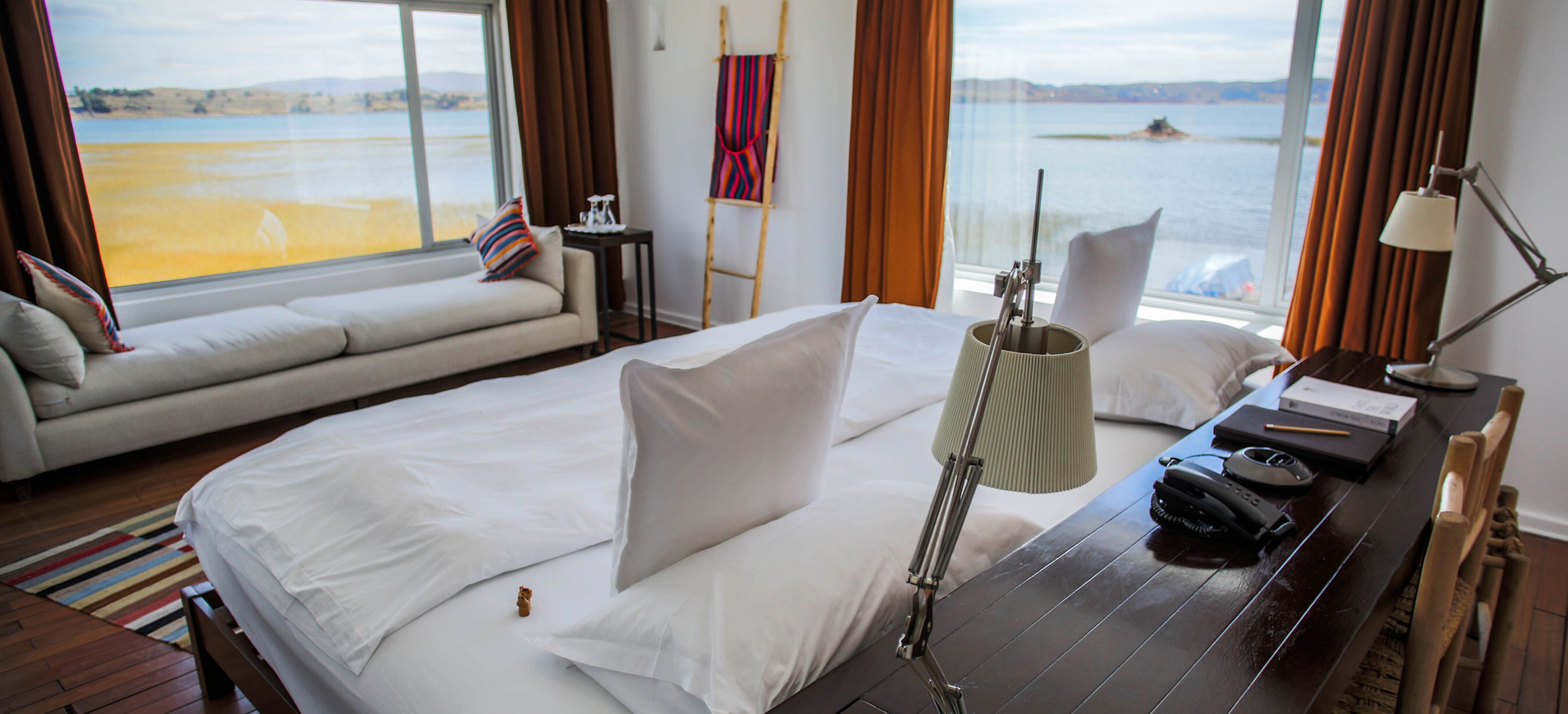 Titilaka ligger på platsen där himlen, jorden och vattnet möts, Titikakasjön. Världens högst belägna sjö, belägen på 3 800 meters höjd och utgör gräns mellan Peru och Bolivia. Blotta namnet trollar fram bilderna av en lika mystisk som dramatisk värld och Sydamerikas äldsta civilisation; Inca. Lodgen ligger långt bortom allfartsvägarna på en privat halvö där varje rum bjuds på en fantastisk sjöutsikt, liksom varje måltid, utflykt och aktivitet - då här råder all inclusive. Stilen är urbant chic på utsidan som bryter tvärt mot bergslandskapet. Insidan är full av färg, dagsljus, vaser fulla av gladioler, konstverk, exklusiva textilier samt vackra mattor och gobelänger. Bottenvåningen på lodgen har en öppen planlösning med tre terrasser möblerade med solstolar mot sjön. De sjutton rummen ligger på de två övre våningarna med högt i tak och har antingen gryning-, eller skymningsutsikt. Sängarna är massiva och alla badrum är utrustade med djupa badkar. Rummen har dessutom extra syre till hands för den som ev. känner av den höga höjden. Maten är den bästa i hela regionen med till exempel läckra ceviches gjorda på öring odlad i sjön och Andernas egen typ av kebab, antichucos. Marsvin finns endast till beställning. Utflykter som ingår är kajakpaddling, dagslånga fågelskådningsturer och utflykter till sjöns olika öar.