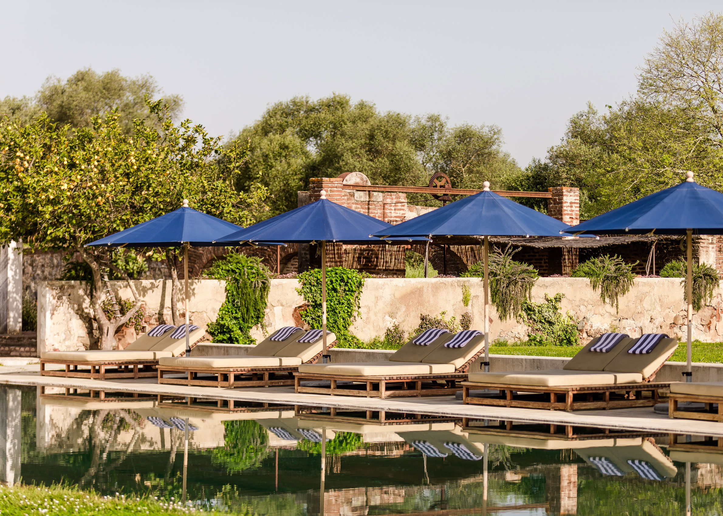 Två timmar från Lissabon, nära den spanska gränsen, vid foten av Monsarazbergen, ligger Sao Lourenco do Barrocal. Den 780 hektar stora egendomen, som funnits i samma familj i över 200 år, har på det mest kärleksfulla sätt man kan tänka sig restaurerats till ett lyxigt hotell och en gård. Här har gästerna oändliga möjligheter att fördjupa sig i portugisisk natur och kultur. Det är Eduardo Souto de Moura, en av Portugals mest respekterade arkitekter, som ligger bakom transformationen från lador och rustika lantarbetarbostäder. Han har format insidan av de vitkalkade husen och skapat 22 rymliga rum, två sviter och 16 separata stugor, samt ett spa, restaurang och bar. Allt inrett i minimalistisk stil för att inte stjäla uppmärksamhet från de uråldriga byggnaderna, de vildvuxna ängarna och de soldränkta vingårdarna. Här kan du promenera genom den ekologiska grönsaksgården och fruktträdgården för att sen slå dig ner och njuta av en picknick i olivlundarna. Vill du hellre ta en cykeltur genom ägorna, simma några längder i poolen, skämma bort dig med en spa-behandling eller stanna till vid stallet och boka en eftermiddagsritt på häst, går det förstås lika bra. När magen kurrar ska du veta att menyn på restaurangen är en återspegling av hotellets från jord-till-bord-strategi. På grillen ligger inte sällan gårdens egna ekologiska grönsaker, organiskt kalvkött eller fisk fångad i Alquevasjön. Sommartid intas många av middagarna utomhus under den klara stjärnhimlen.