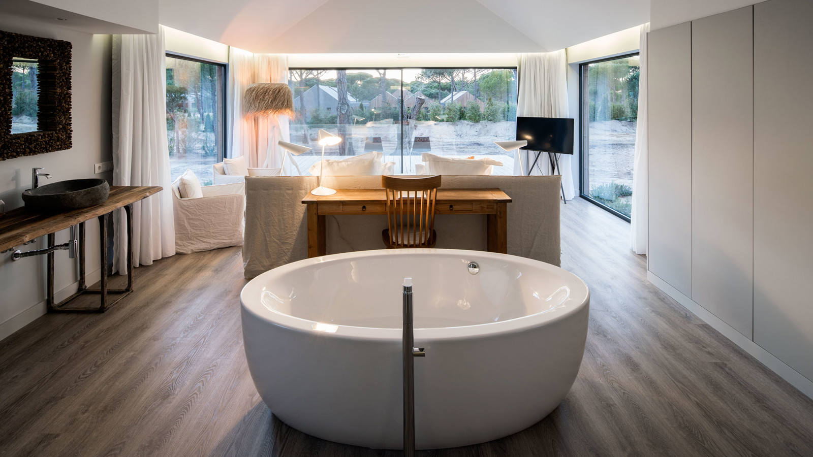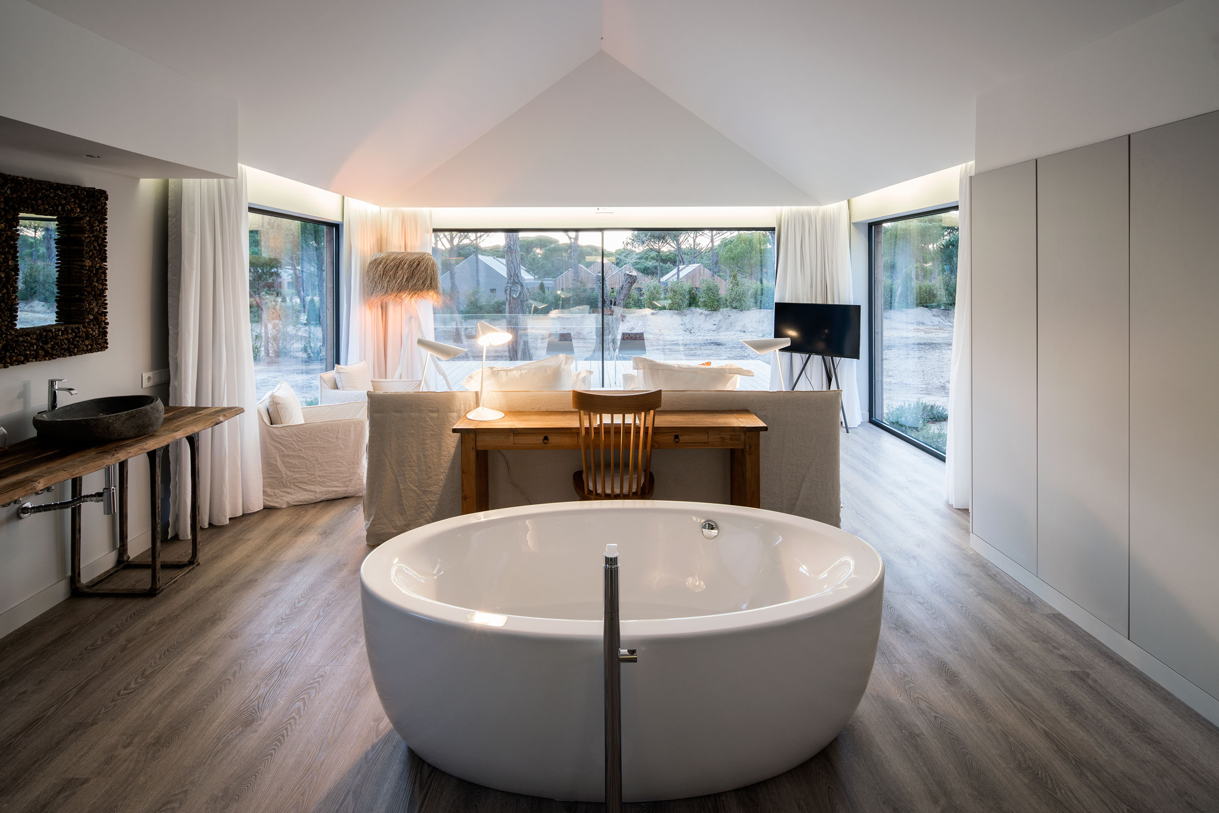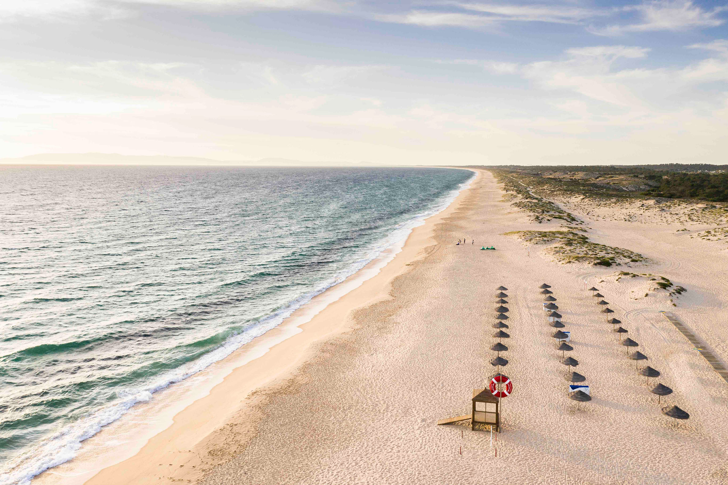 Att kalla något sublimt ställer ju vissa förväntningar, men kan omöjligt göra någon besviken, inte minst tack vare ekolyxhotellets natursköna läge. Här på en 12 kilometer långa strand vid Portugals Atlantkust bor du omgiven av en 17 hektar stor egendom med sanddyner, tallar, korkekar och vilda blommor. Bara minuter från vita, orörda sandstränder och ett turkosskimrande hav. De 45 rummen, sviterna och villorna är alla utspridda i flera olika byggnader och individuellt inredda i smakfull, minimalistisk design. Lackade cementgolv möter vita väggar, fönstren går från golv till tak, färgpaletten är naturens egen och alla rum har en privat terrass samt en eldstad för extra mysfaktor under de kyligare månaderna. Kocken levererar regionala rätter med en modern twist. Du kan till exempel se fram emot lokala ostron eller havsabborre med musselrisotto och grönt från hotellets egen ekologiska trädgård. Och missa inte det lokala vinet, Parus. När du vill ta en paus från magiska surfvågor och strand häng kan du koppla av i Sublime Spa, spela tennis, boka en privat yogalektion eller en vinprovning. Du kan också be personalen ordna en picknickkorg till din vandring eller ta en ridtur på stranden. Orten Comporta har beskrivits som en utsökt blandning av Ibiza, St. Tropez, Hamptons och Gotland – för 30 år sedan. Det är ett småhemligt och surfigt strandparadis som genomsyras av en avslappnad genuinitet och en ”hippie chic” anda. För skogurun Christian Louboutin, arkitekten Philippe Starck och Madonna är Comporta favoritplatsen på jorden. Troligtvis lika mycket för ortens anonyma prägel som för stränderna och hästarnas skull.