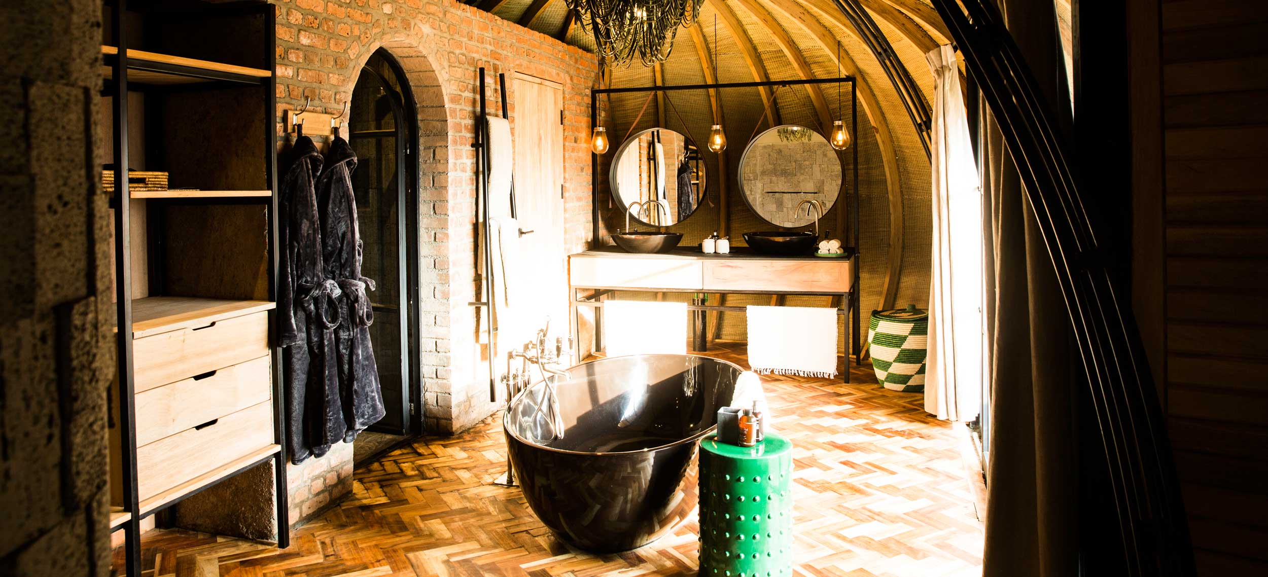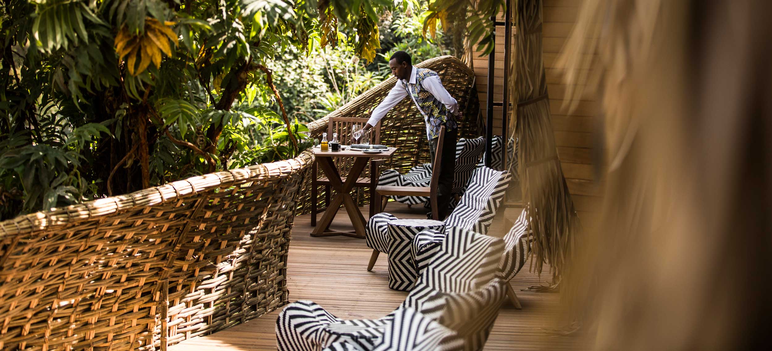 Bisate Lodge är en efterlängtad safarilodge belägen i den naturliga amfiteatern från en eroderad krater vid kanten av Volcanoes National Park, i de dimhöljda gorillabergens Rwanda. Efter öppnandet sommaren 2017 kommer sammanlagt tolv personer att kunna njuta de ultramoderna sviterna med stora utsiktsdäck mot den dramatiska vyn över vulkanerna Bisoke och Karisimbi. Sviterna är designade som fågelbon med stråtak - eller som den rwandiske monarkens palats - och smälter in i landskapet med det ekoansvar som Bisate Lodge tar. Varje svit har varma färger i vackra naturfärger, värmande öppna spisar eller kaminer och fantastiska badrum med djupa kar. Vävda skärmar och detaljer ger rummen en stark rwandisk känsla och ton. Bisate Lodge ligger på ett bekvämt avstånd från parkens huvudkontor varifrån de privata turerna utgår för att spåra någon av de bofasta gorillafamiljerna. Flera andra spännande utflykter arrangeras som till exempel till kulturbyn Iby’wacu, tvillingsjöarna Ruhondo och Burera, lavatunnlarna i Musanze Caves, gorillalegenden Dian Fosseys grav och speciella turer i jakt på guldmarkattan, endemisk för området. Rwanda är välkänt för sitt högklassiga kaffe och te, och på Bisate Lodge bjuder baristan på både kaffe- och teprovningar. Skulle du hellre spendera tid i den välsorterade vinkällaren är du även välkommen till exklusiva vinprovningar.