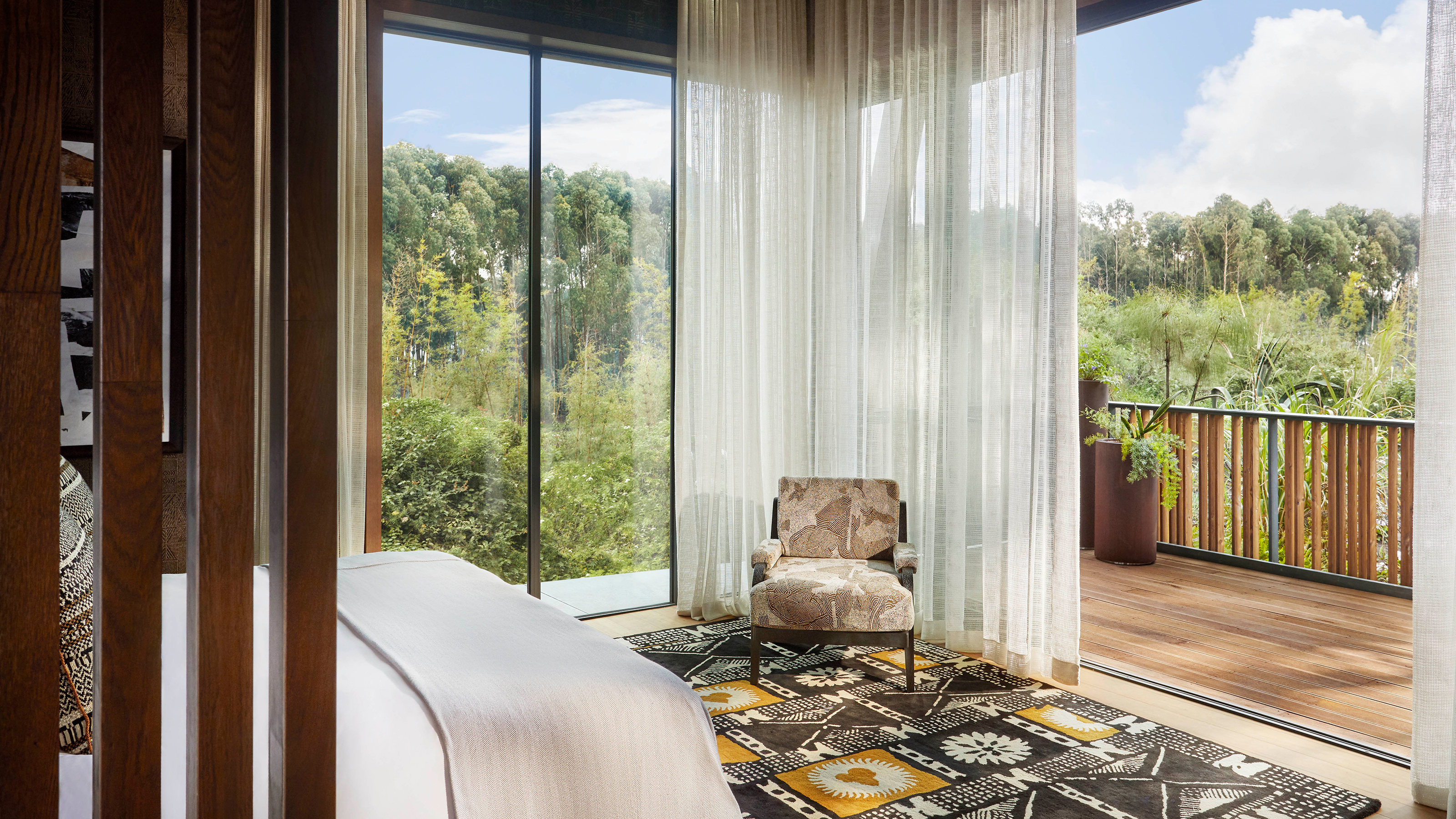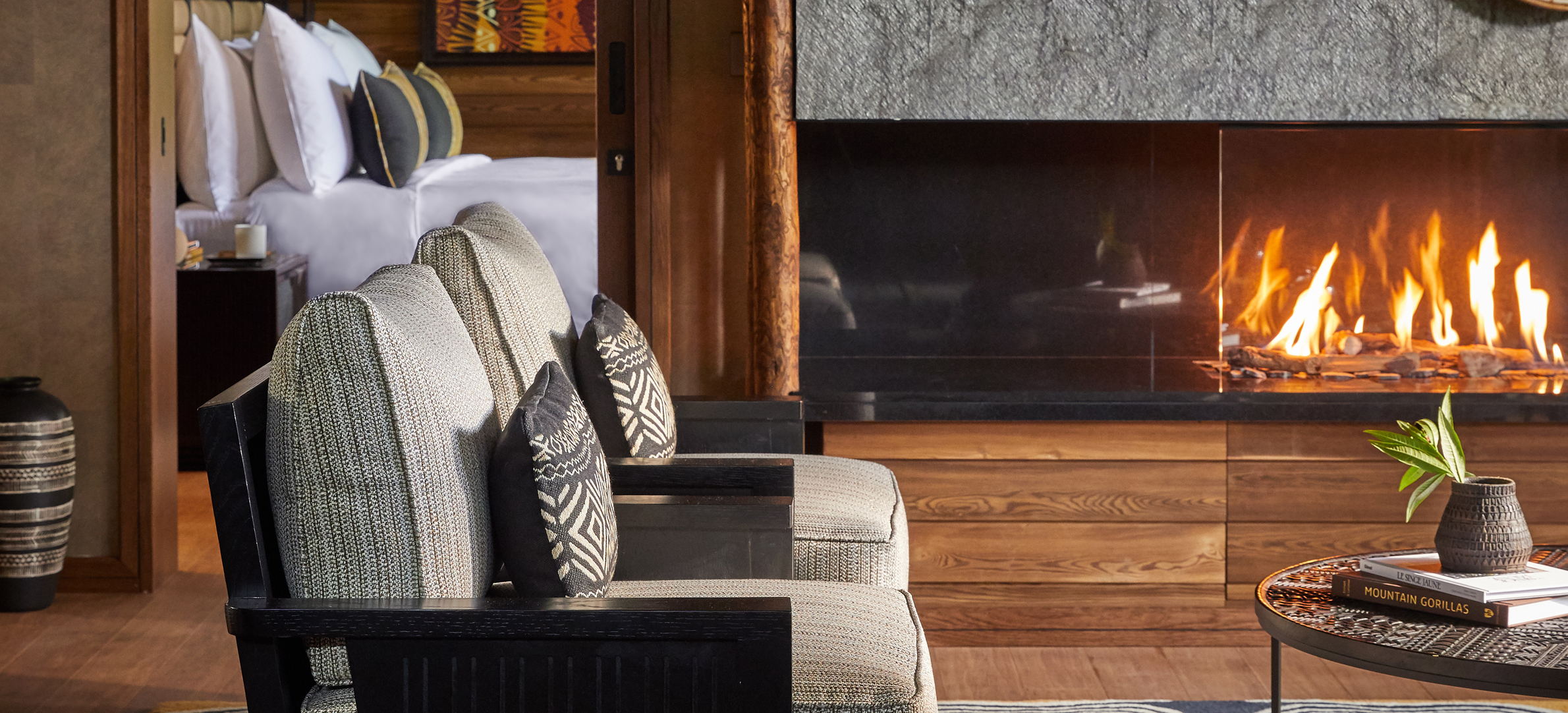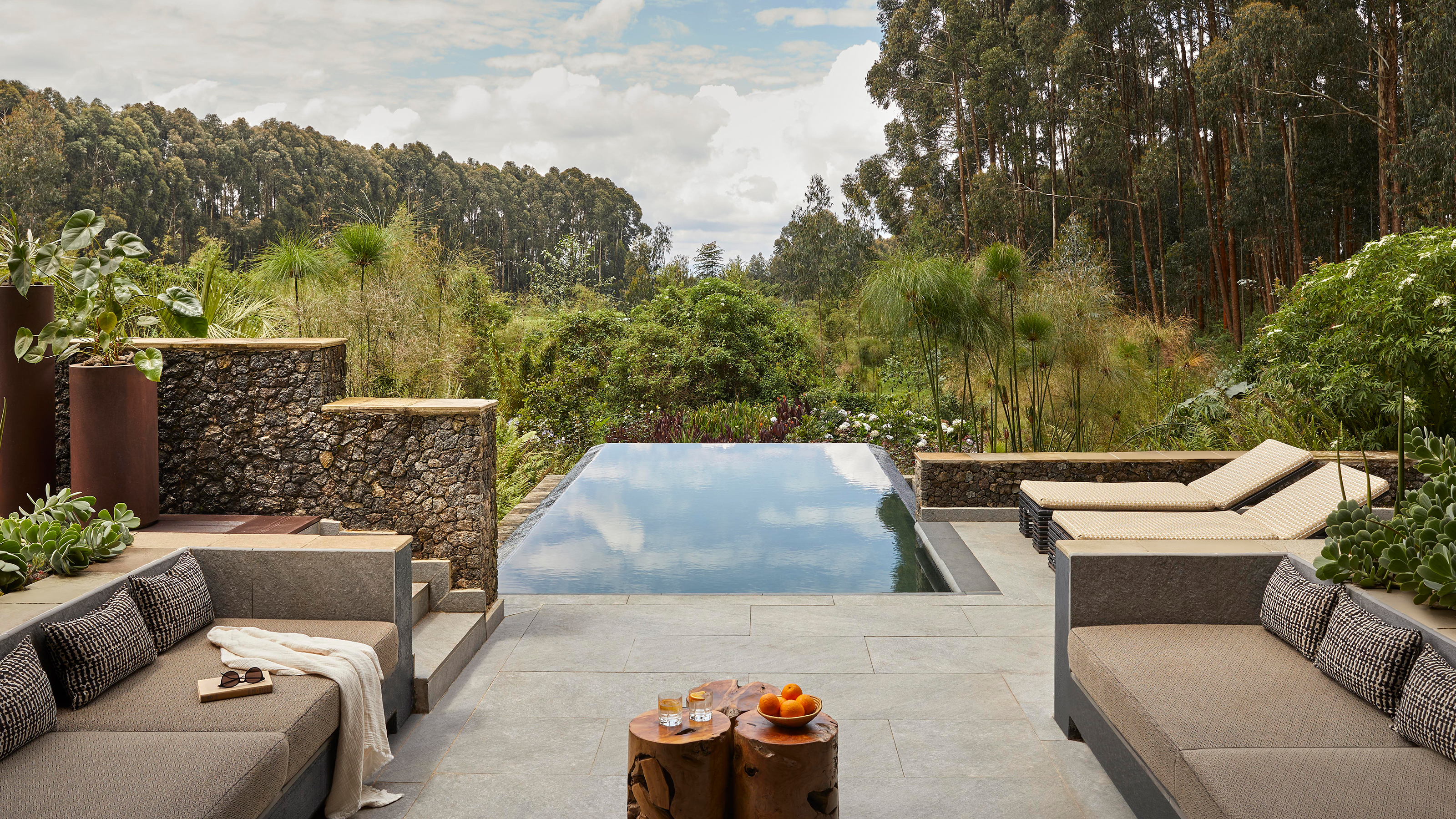 Vid foten av Rwandas Virungaberg där primatologen Dian Fossey arbetade, ligger One&Only Gorilla’s Nest. En optimal bas för dig som vill besöka bergsgorillorna och bo med alla femstjärniga element, inklusive pool och spa. Det finns gott om primater i närområdet och längre ner på sluttningarna finns traditionella rwandiska byar, där lokalbefolkningen odlar den vulkanrika jorden. Små barn vinkar och ropar, medan deras föräldrar bearbetar jorden med hackor och doften av eukalyptus svävar genom luften. Hotellets 21 rum och sviter är designade som personliga trädhus med privata utsiktsdäck. Vissa kommer med duschar, andra med badkar på sina trädäck vilket ger känslan av att djungeln är en del av rummet. Inredning och konst är inspirerat av Rwandas naturliga skönhet och stolta traditioner. Råvarorna hämtas från kockens egen köksträdgård och varje måltid är utsökt. Även servicen är perfekt. Efter en tidig morgon med gorillaspårning är det skönt att byta de leriga gummistövlarna mot mjuka tofflor. Stövlarna dyker upp i ditt rum senare, rengjorda och glänsande tillsammans med dina tvättade regnkläder. Som gäst på One&Only Gorilla’s Nest kan du inte bara bocka av de stora aporna utan däremellan ägna dig åt mountainbiketurer, bågskytte, korgvävning och kaffeprovning. De flesta avslutar dagen med bastubad och helkroppsmassage som är oslagbart för trötta leder. Inte sällan följt av en drink i mysiga Nest Bar. Där växlar de gärna några ord med Patrick – en anställd som enligt rykten skyddades av gorillorna i hela tre dagar, när han gick vilse i eukalyptusskogen som barn.