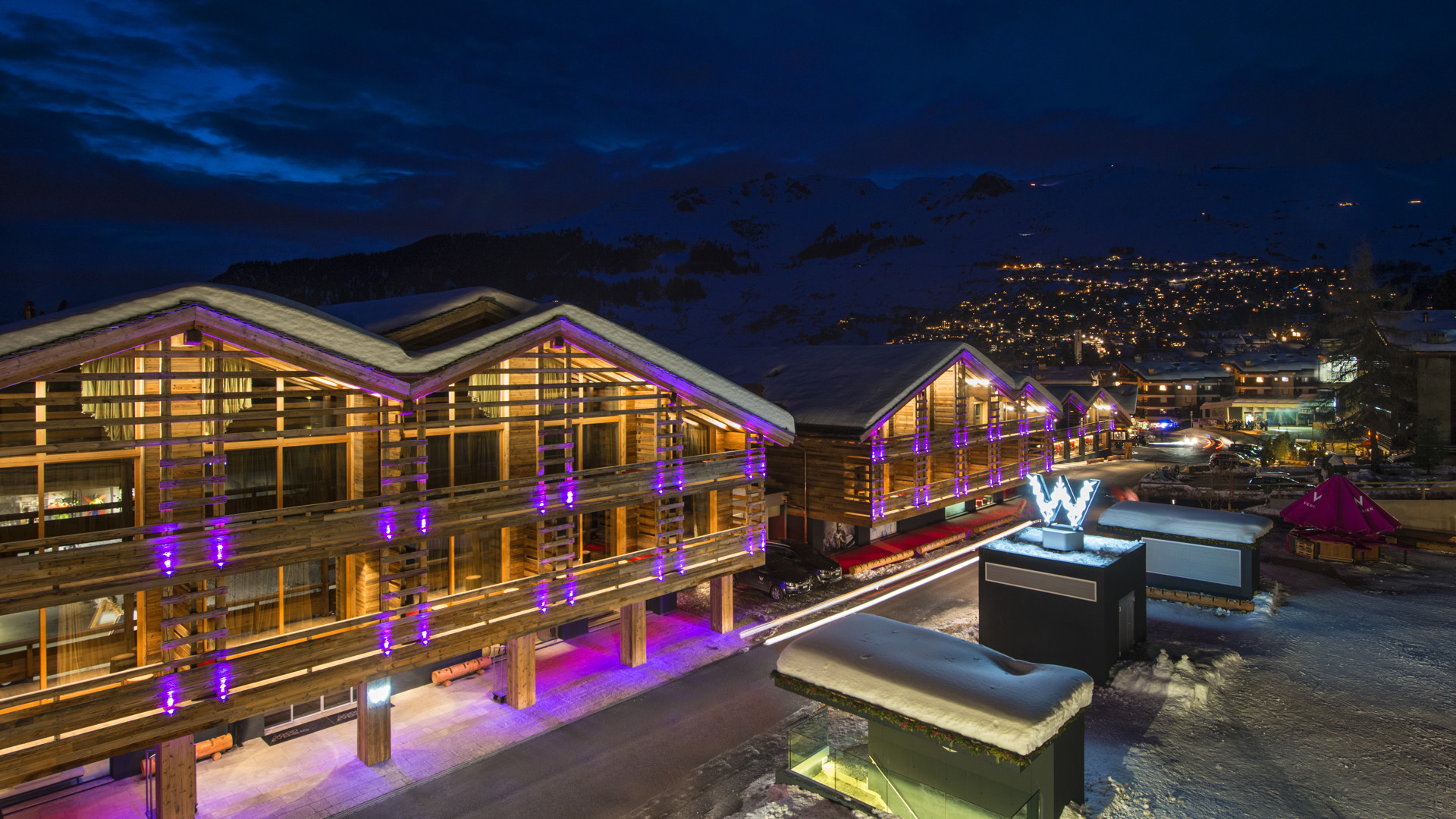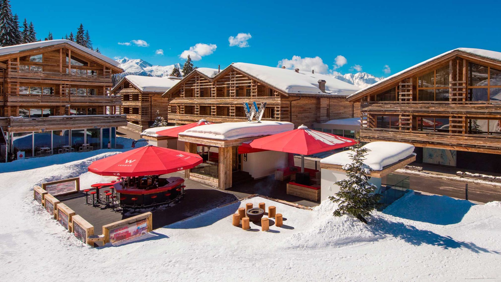 W har på några få år blivit till ett begrepp när det handlar om moderna lyxhotell, klassisk ambition och gastronomi i världsklass. När hotellkedjan i december 2013 slog upp portarna till sitt första ”Alpine Escape” var det självklart i samma anda och på en av alpernas mest exklusiva adresser, Place Blanche i exklusiva Verbier. Här erbjuds ski-in/ski-out. Rum och sviter går i klassisk rymlig W-stil med utsökt alptouch i form av sten och trä i modern mix. Många av rummen har balkong och underbara panoramavyer över bergstopparna. Efter skidåkning i över 412 kilometer pister med pudersnö upp till 3 300 meters höjd väntar sann njutning i W-världen. Chef Sergio Arola är redan dekorerad med två stjärnor i Guide Michelin och driver redan berömda Sergio Gastro i Madrid och Arola i Paris. Hotellets egna DJ:s ser till att stämningen alltid är den rätta och för den som fortfarande är pigg kan det dansas in på småtimmarna innan du somnar för sköna drömmar i hotellkedjans patenterade säng – the W Bed.