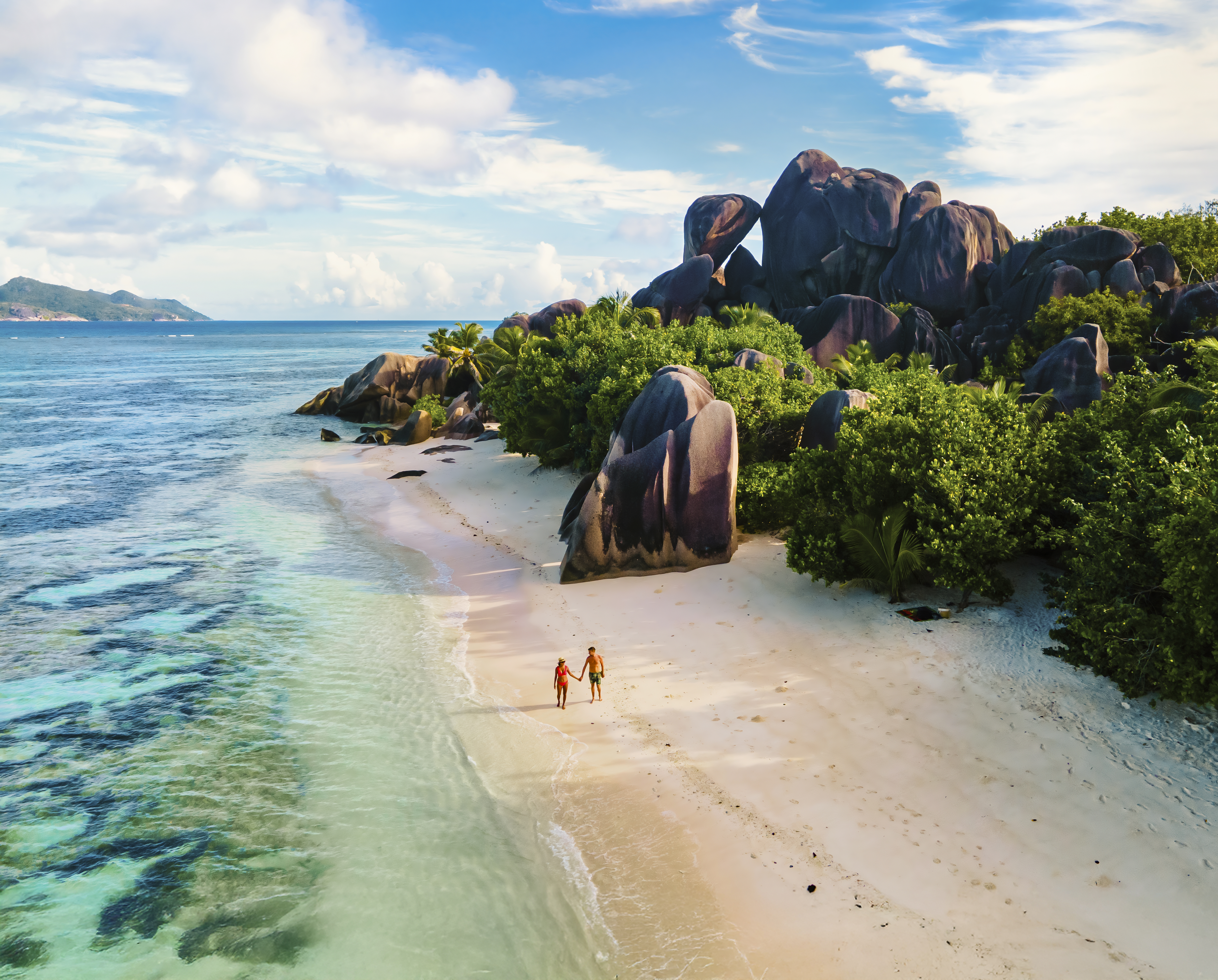 Det finns få platser som Seychellerna. Ett örike där du kan vandra längs kritvita stränder utan att möta en människa, snorkla bland korallrev strax utanför strandkanten eller läsa en bok i skuggan av en palm – långt från massturismens tempo. Här har man valt att bevara känslan av något äkta och orört. Naturen är både dramatisk och stillsam: uråldriga granitformationer, regnskog fylld av färgglada fåglar och jättesköldpaddor som rör sig i maklig takt över grönskande sluttningar. Att resa till Seychellerna är som att stiga in i en annan värld – där varje ö har sin egen personlighet. Seychellerna är inte ett resmål för den som söker nattliv – utan för dig som vill ha tid att andas, utforska, vila och verkligen ta in det som omger dig. Och boendet? Tänk moderna villor och strandnära bungalower där komforten möter naturen, alltid med havet inom synhåll. Vi på Travel Beyond har besökt Seychellernas mest exklusiva hotell och hjälper dig att skräddarsy din drömresa till perfektion.