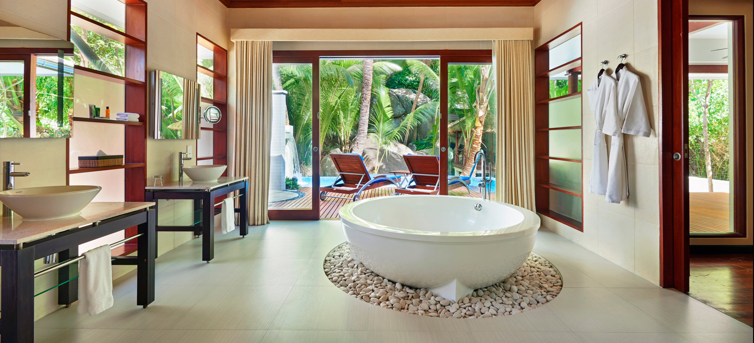 40 minuters transfer med båt eller 15 minuters transfer med helikopter från Mahe flygplats