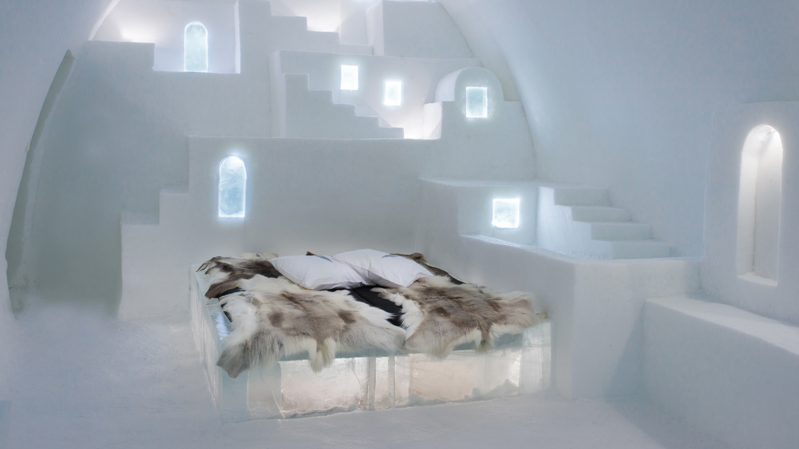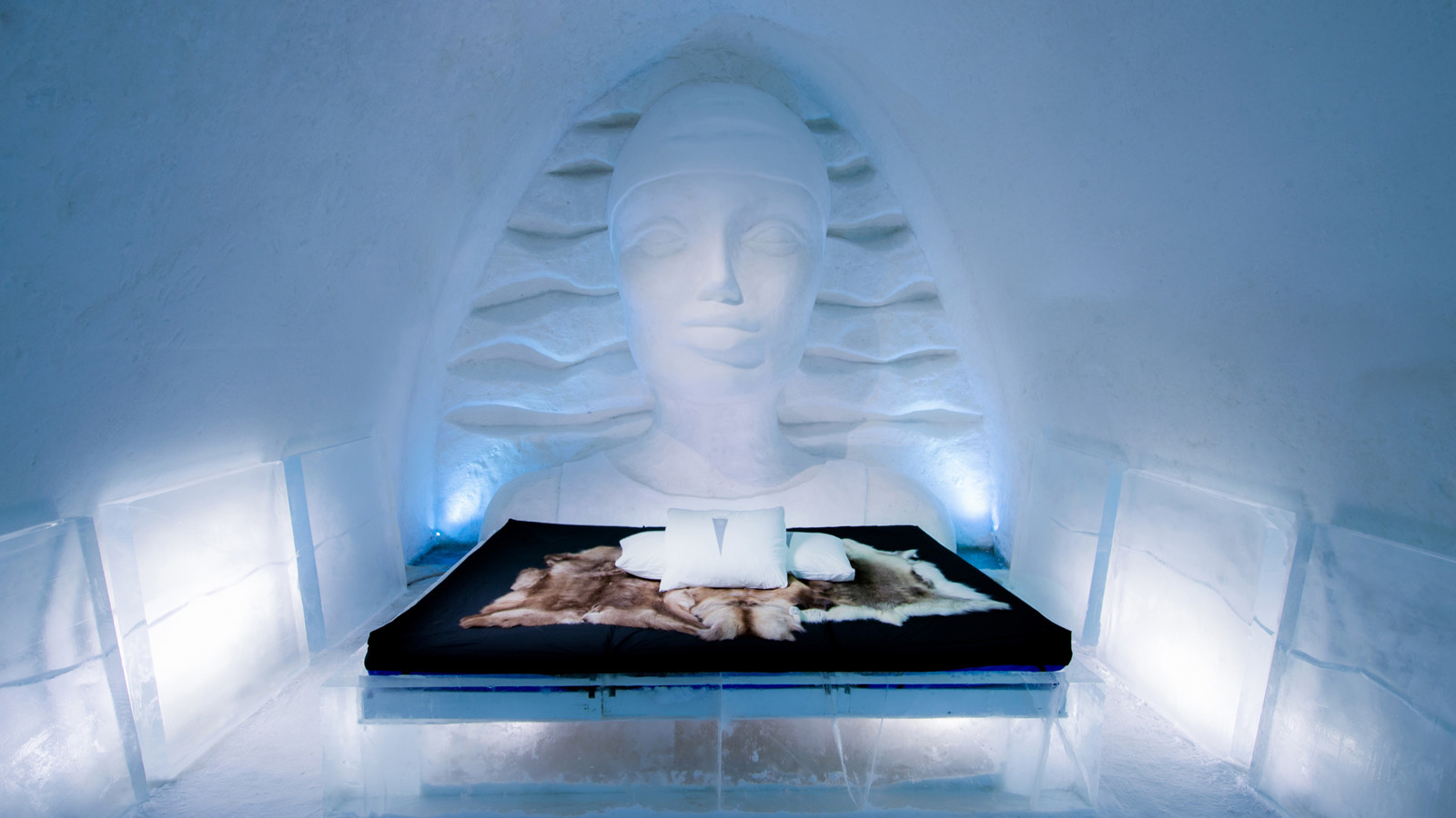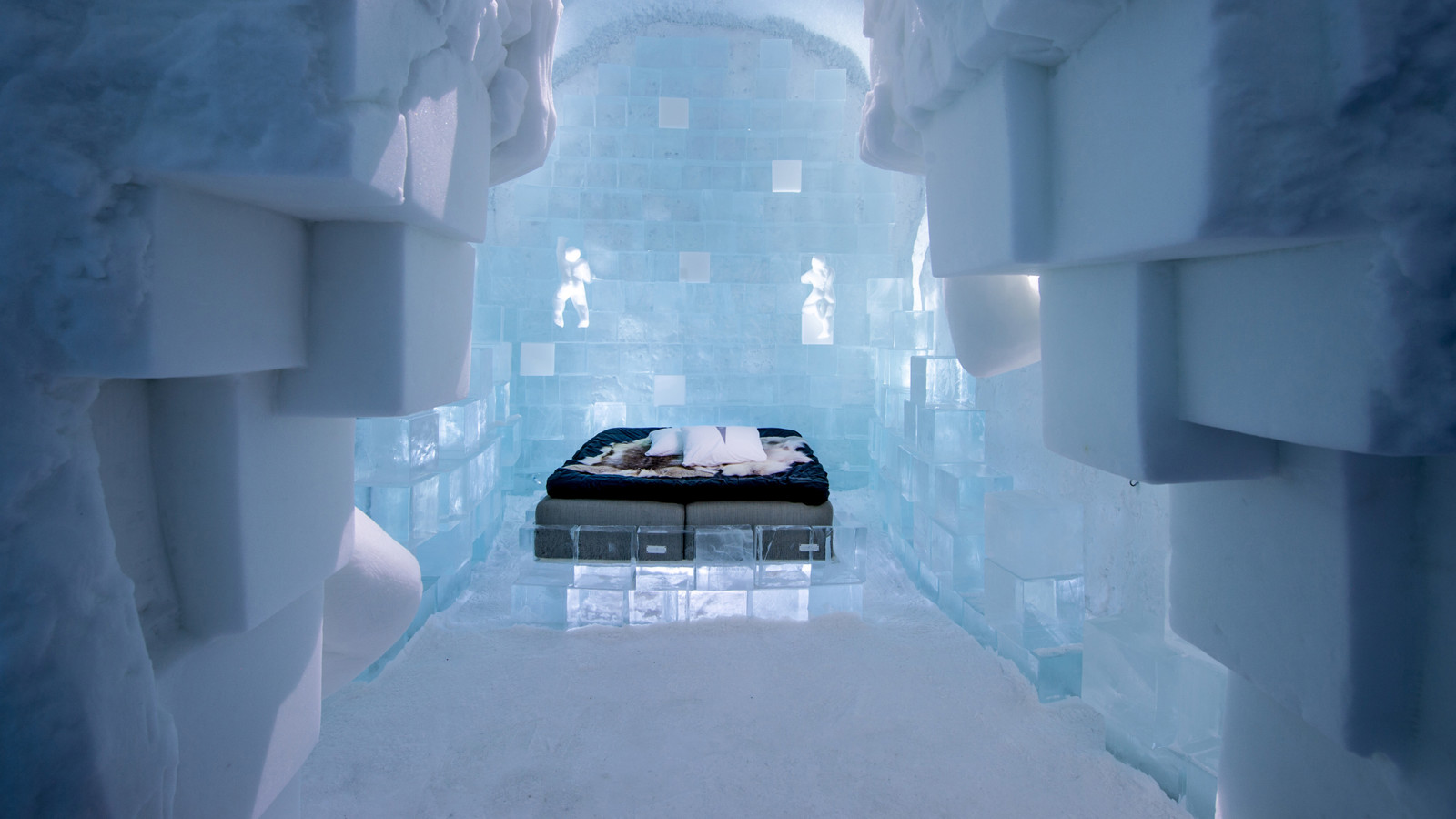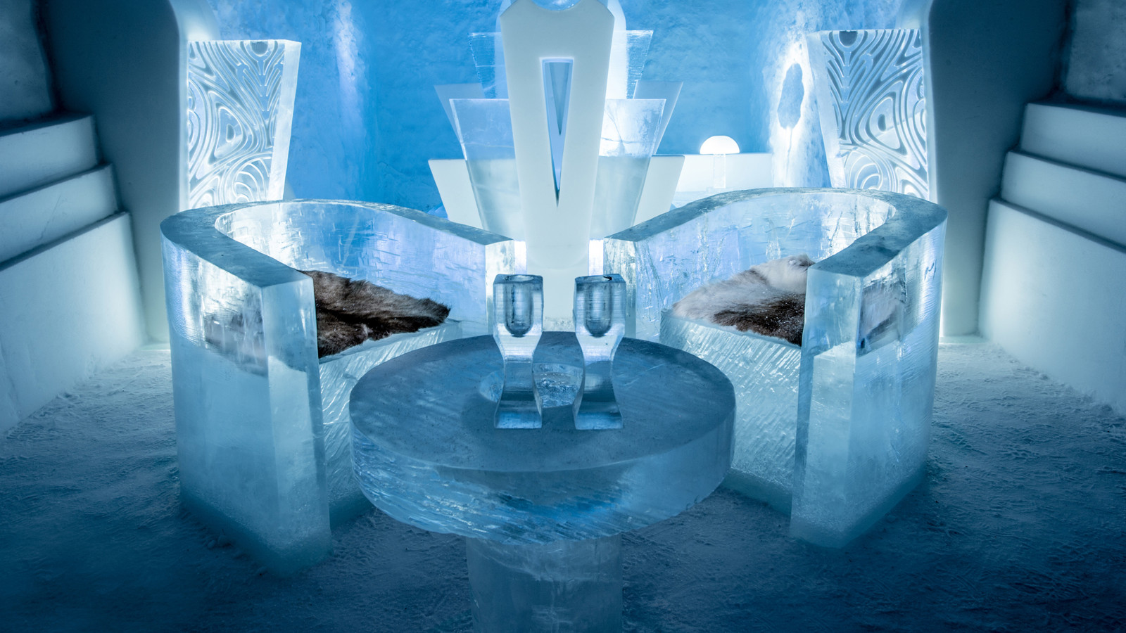 En av världens mest oförglömliga och spektakulära hotellupplevelser väntar i den norrbottniska byn Jukkasjärvi, 20 mil norr om polcirkeln. Här möts konstnärlig kreativitet och gnistrande is, när ett nytt hotell återföds i december varje vinter. Du känner säkert till historien vid det här laget: Varje vår skördas stora block av is ur Torne älv som lagras och bevaras för att fram på senvintern användas som byggmaterial när årets nya Icehotel återuppstår i en ny skepnad. Noggrant utformat och handgjort av omkring 40 konstnärer från hela världen. Under den arktiska vintern kan temperaturen sjunka så långt ner som till -40 grader. I själva issviterna ligger dock temperaturen på mer behagliga -5 grader och här sover du gott i en varm sovsäck på en renfäll, omgiven av handskulpterad iskonst. Värt att notera – ta med underställ i ylle. Förutom sviterna av is, vars antal varierar från år till år, finns det möjlighet att övernatta i ett varmt hotellrum eller i en stuga av mer konventionell standard. Utanför hotellet väntar en lång rad unika upplevelser, från norrskensturer till häst och middagar i vildmarken till längdskidåkning och hundspannsturer över de vita vidderna. När Icehotel Vinter smälter, står det nya systerhotellet Icehotell 365 kvar med 18 sviter, en isbar som serverar champagne och drinkar samt ett isgalleri. Byggnaden, vars golv, väggar och tak är täckta av snö och kristallklar is, nedkyls med energi från solpaneler som skördar massor av ljus i midnattssolen.