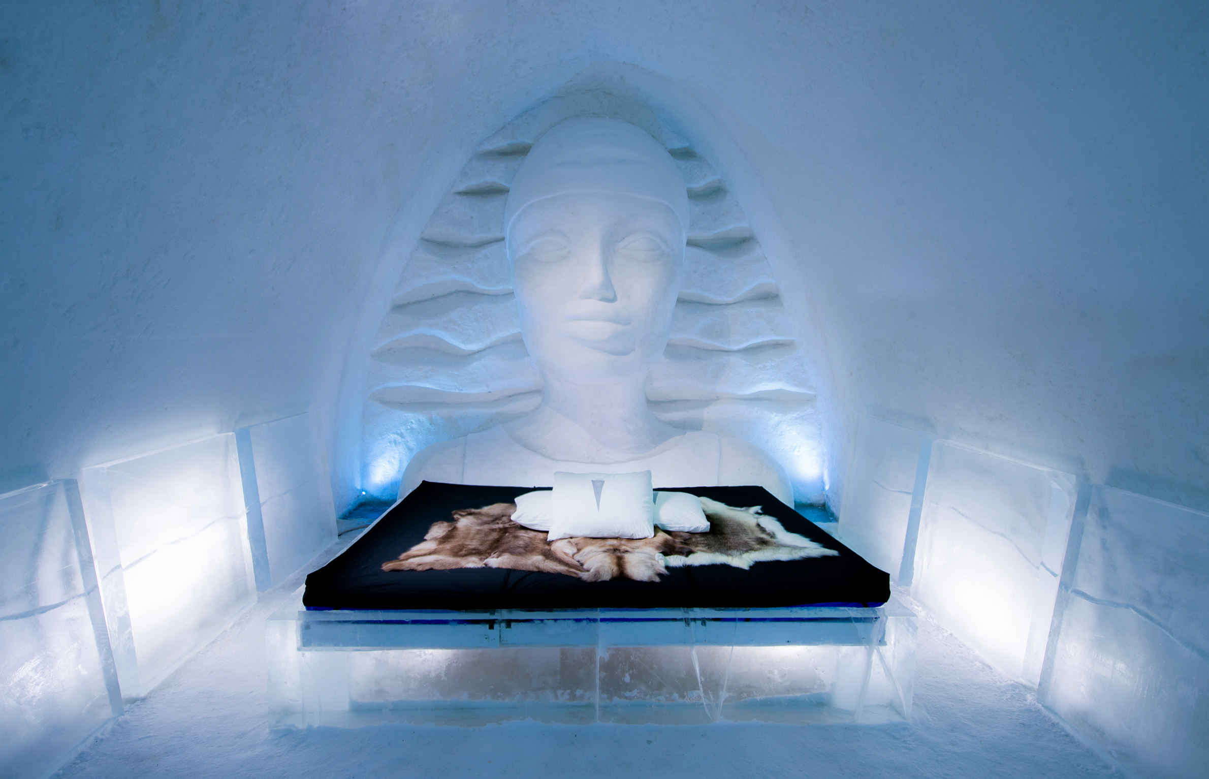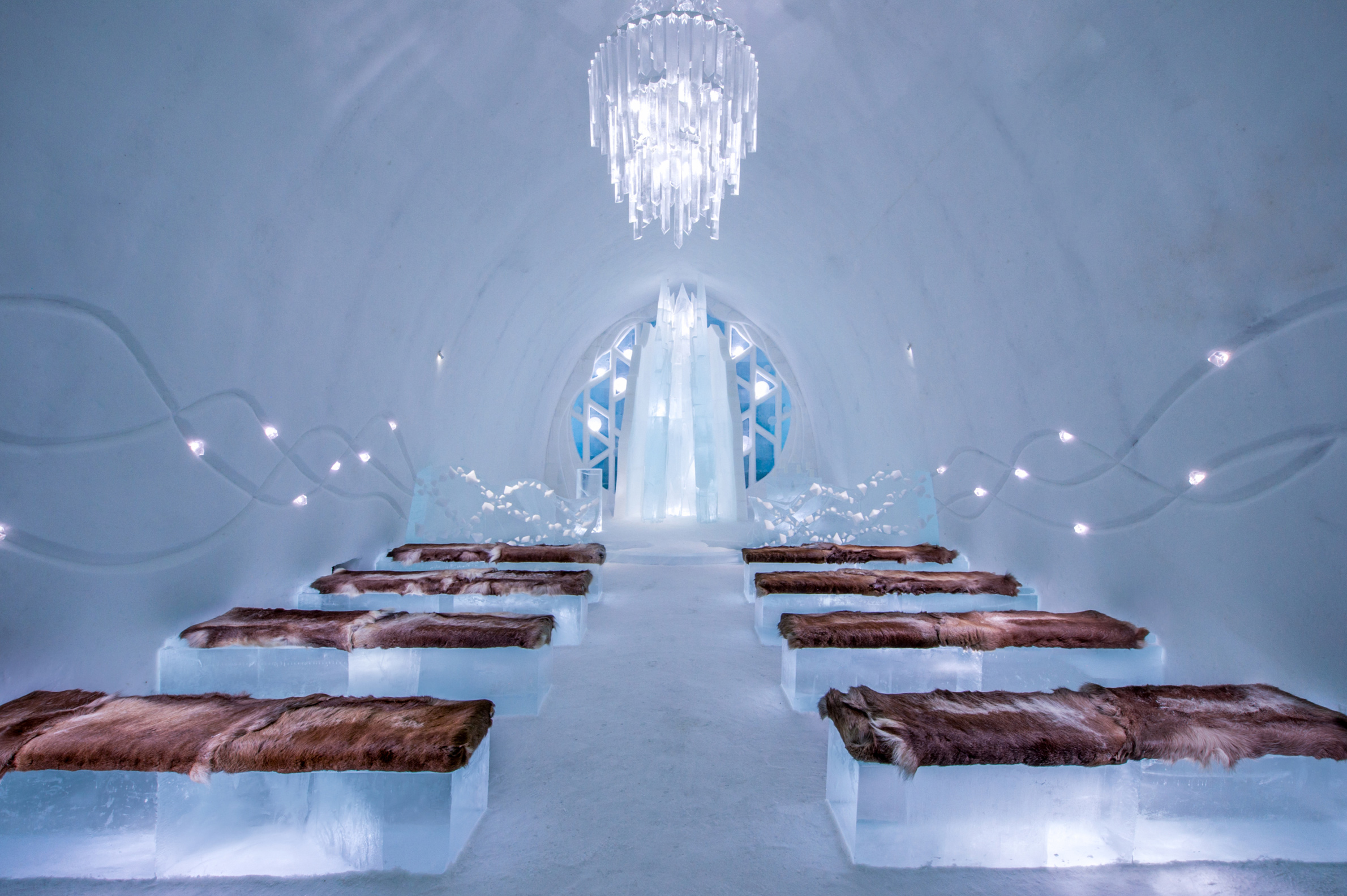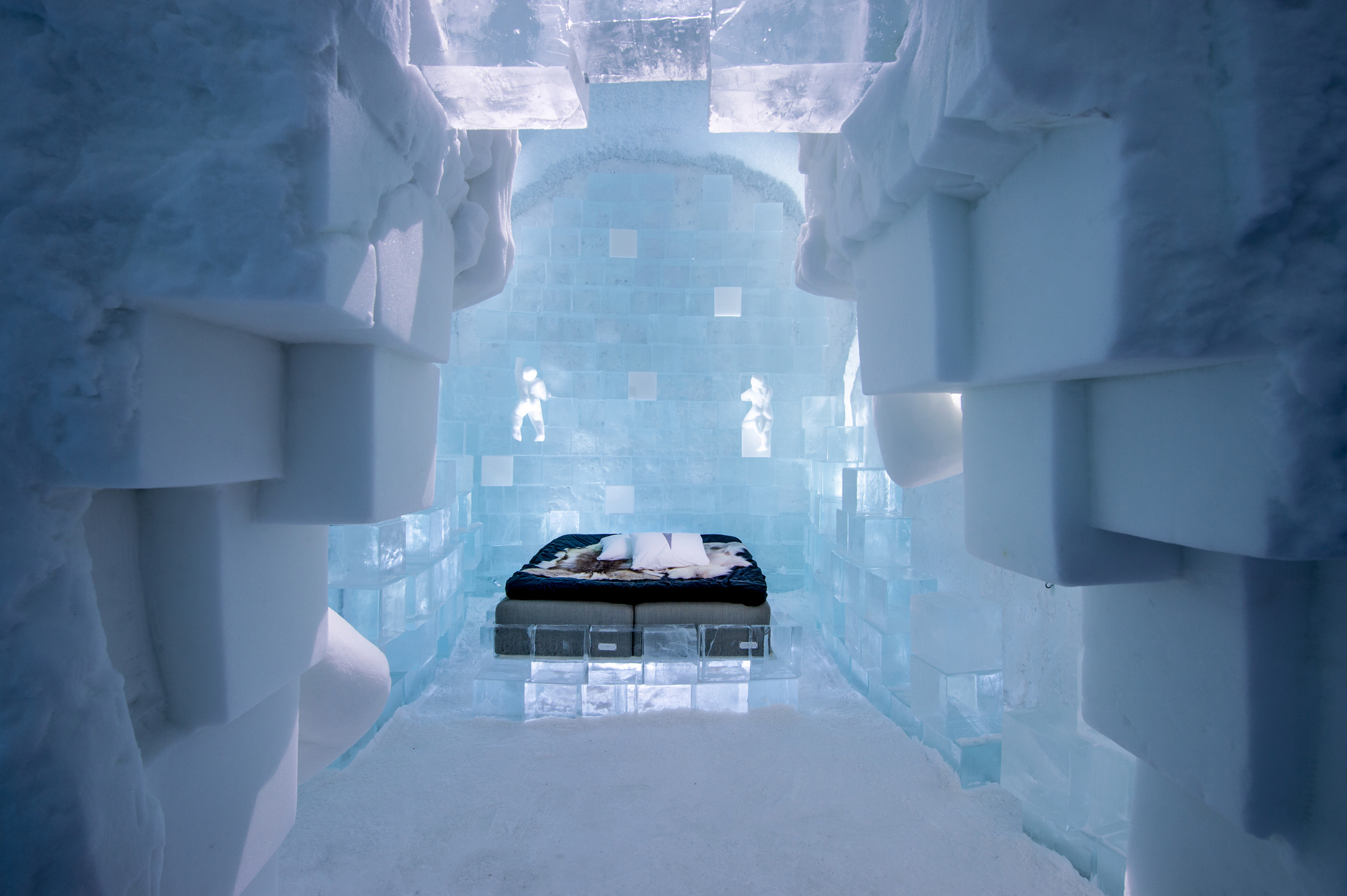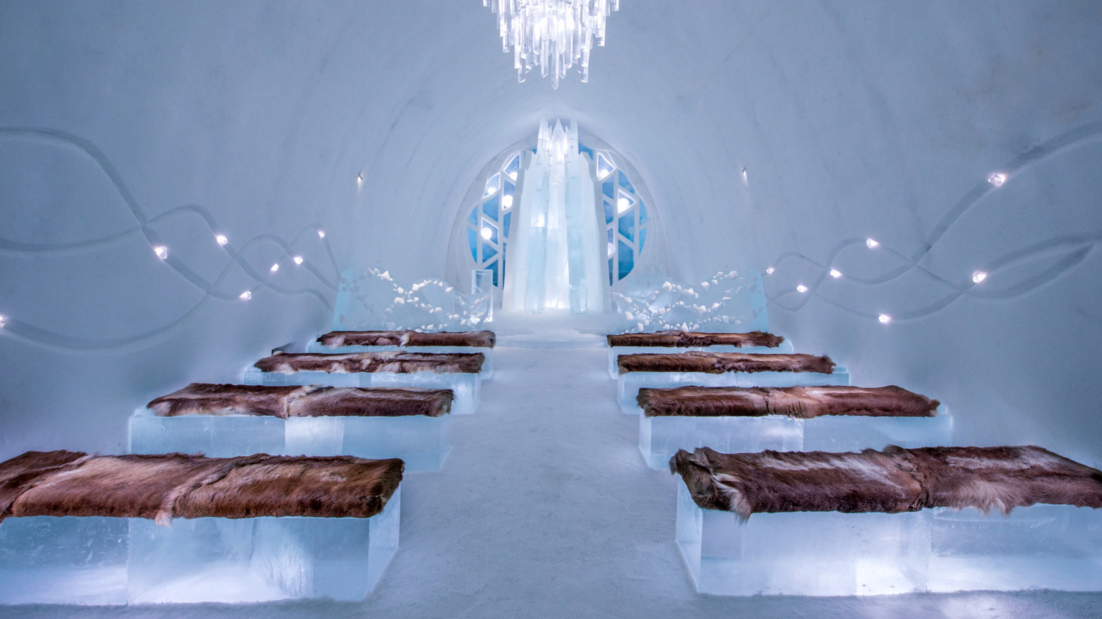 En av världens mest oförglömliga och spektakulära hotellupplevelser väntar i den norrbottniska byn Jukkasjärvi, 20 mil norr om polcirkeln. Här möts konstnärlig kreativitet och gnistrande is, när ett nytt hotell återföds i december varje vinter. Du känner säkert till historien vid det här laget: Varje vår skördas stora block av is ur Torne älv som lagras och bevaras för att fram på senvintern användas som byggmaterial när årets nya Icehotel återuppstår i en ny skepnad. Noggrant utformat och handgjort av omkring 40 konstnärer från hela världen. Under den arktiska vintern kan temperaturen sjunka så långt ner som till -40 grader. I själva issviterna ligger dock temperaturen på mer behagliga -5 grader och här sover du gott i en varm sovsäck på en renfäll, omgiven av handskulpterad iskonst. Värt att notera – ta med underställ i ylle. Förutom sviterna av is, vars antal varierar från år till år, finns det möjlighet att övernatta i ett varmt hotellrum eller i en stuga av mer konventionell standard. Utanför hotellet väntar en lång rad unika upplevelser, från norrskensturer till häst och middagar i vildmarken till längdskidåkning och hundspannsturer över de vita vidderna. När Icehotel Vinter smälter, står det nya systerhotellet Icehotell 365 kvar med 18 sviter, en isbar som serverar champagne och drinkar samt ett isgalleri. Byggnaden, vars golv, väggar och tak är täckta av snö och kristallklar is, nedkyls med energi från solpaneler som skördar massor av ljus i midnattssolen.