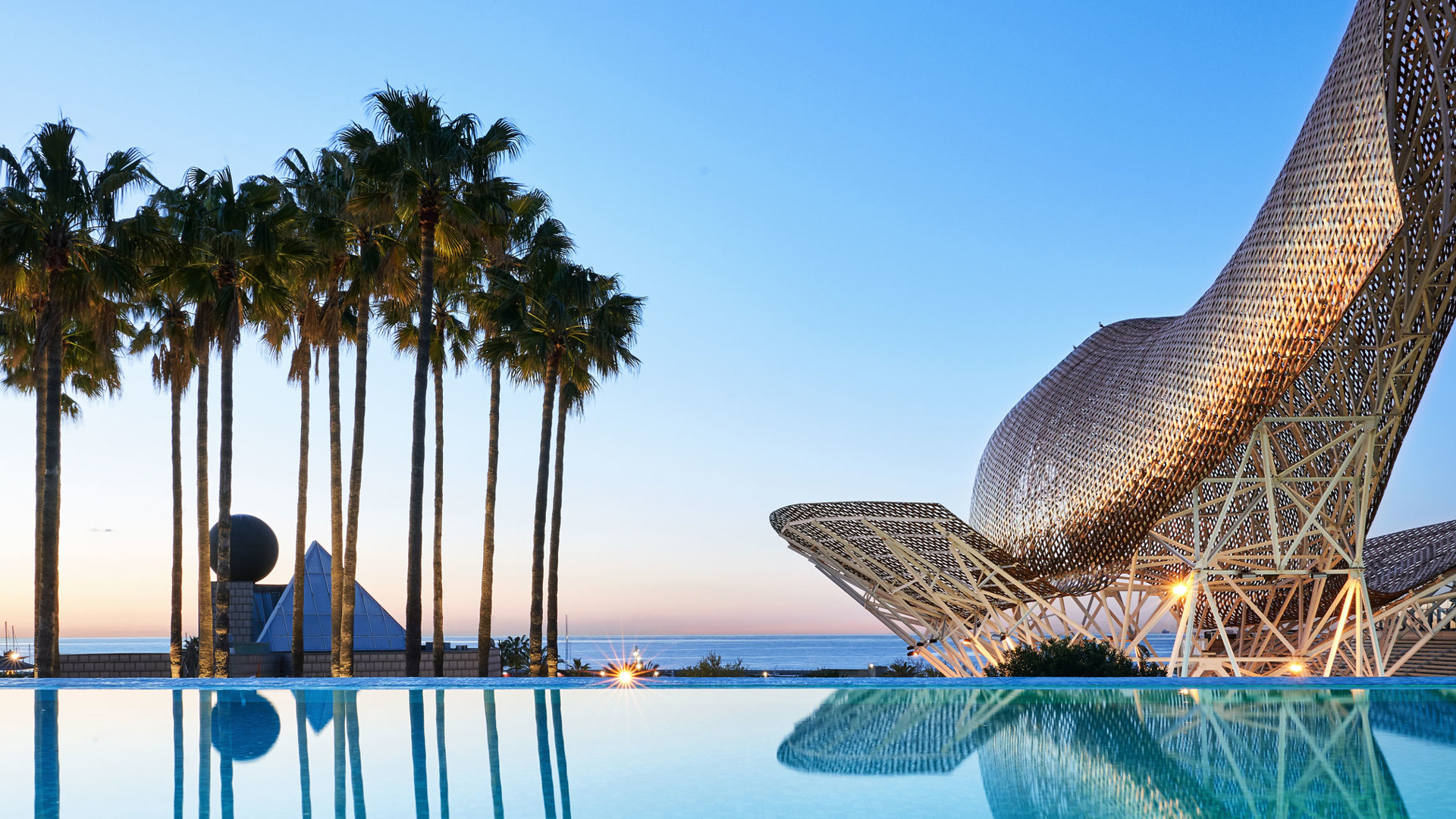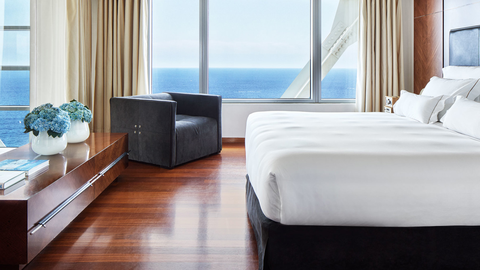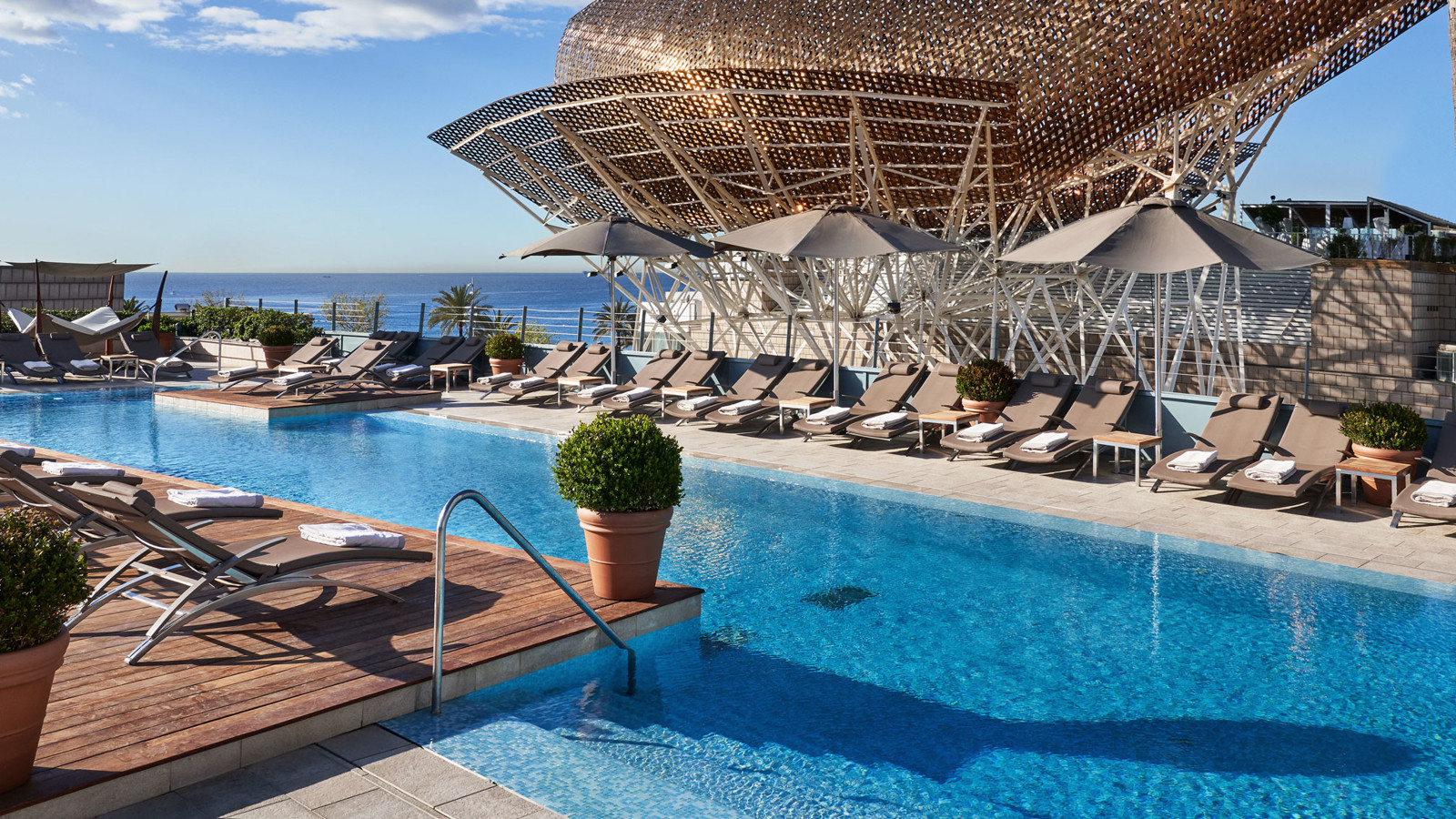 Ansiktslyfta Hotel Arts var ett av Barcelonas första lyxhotell, känt för sin utmärkta service och exceptionella gastronomi. Hotellet är beläget precis vid strandpromenaden med utsikt över det blå Medelhavet, en kort taxiresa eller lite längre promenad från Diagonal, Passeig di Gràcia och Placa de Catalunya. Hotellet är vackert och medvetet med konstverk i original och stora blomsteruppsättningar. Här blandas gammeldags lux med minimalistisk modern estetik, från en exklusiv Pompidou-stil till ljusa, smarta och stilrena rum. Hotel Arts tornar över alla andra byggnader längs vattnet och har därför helt fria ljusinsläpp. Utsikten är magnifik, speciellt från hörnrummen som har utsikt över både hav och stad. Sängarna är stora och trivseln blir inte sämre med otroligt fluffiga morgonrockar och toalettartiklar från Asprey. Här finns också en swimmingpool och på vedertaget Hotel Arts maner står ”Fish”, en stor, skimrande staty av Frank Gehry precis intill. Det finns också en trädgård med barnpool och ett spa med alla bekvämligheter du kan förvänta dig av ett hotell av denna kaliber. Hotel Arts har fem restauranger, från en barnvänlig bistro till den bortskämde finsmakarens Enoteca med två stjärnor i Guide Michelin. Det finns även en mysig utomhus cocktail lounge med öppen spis.