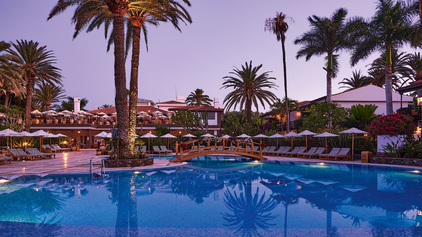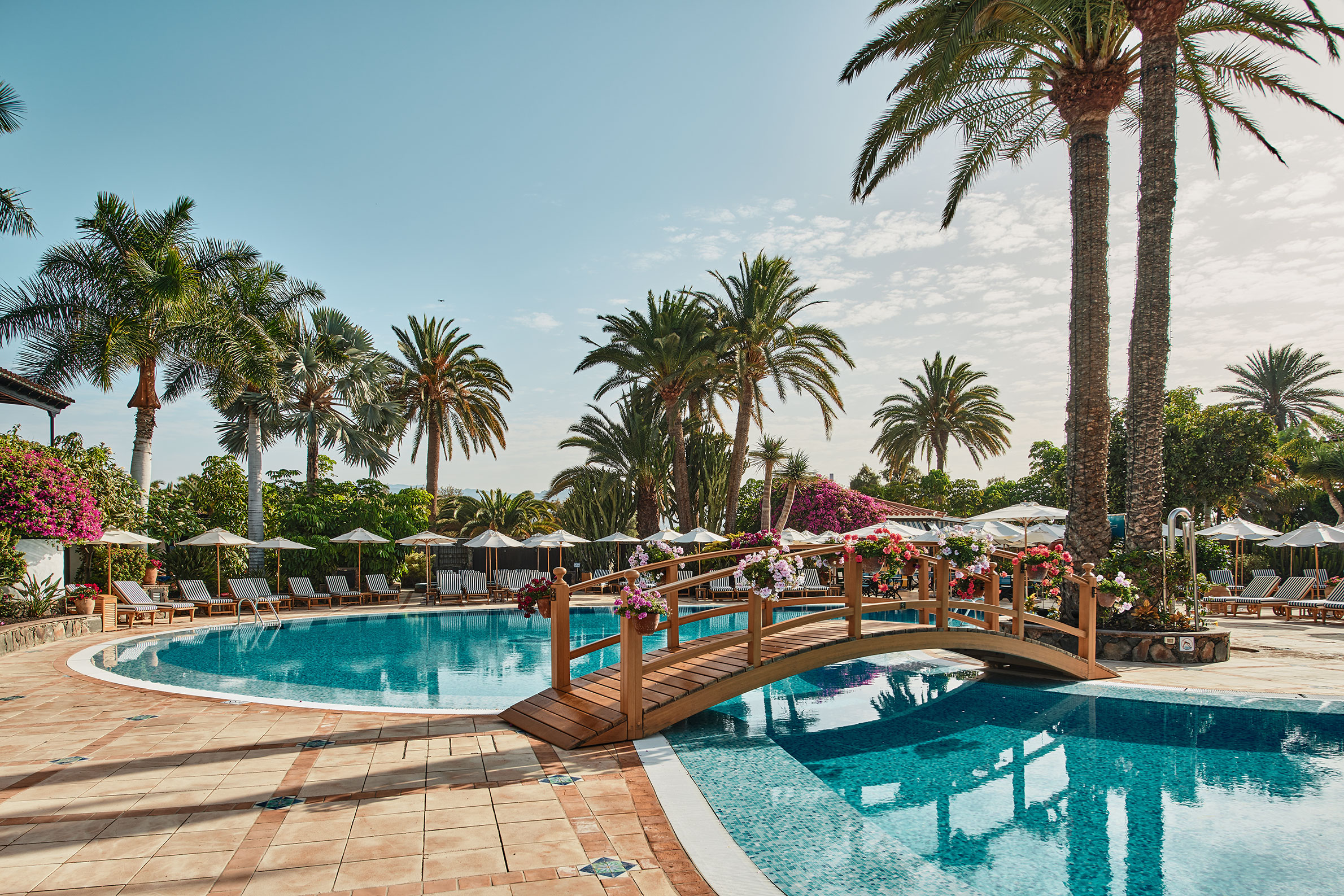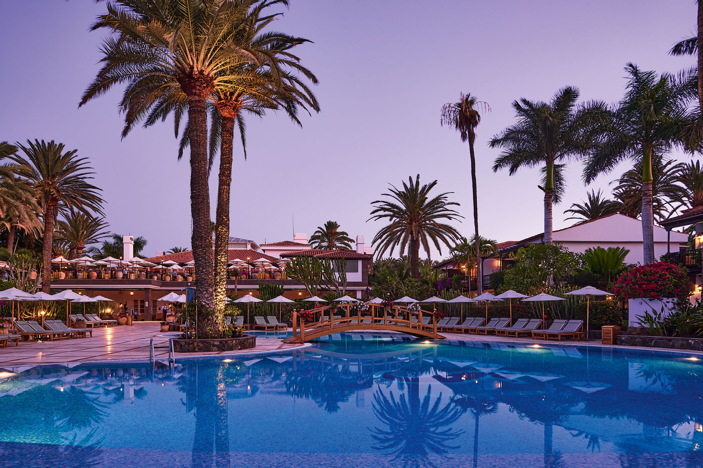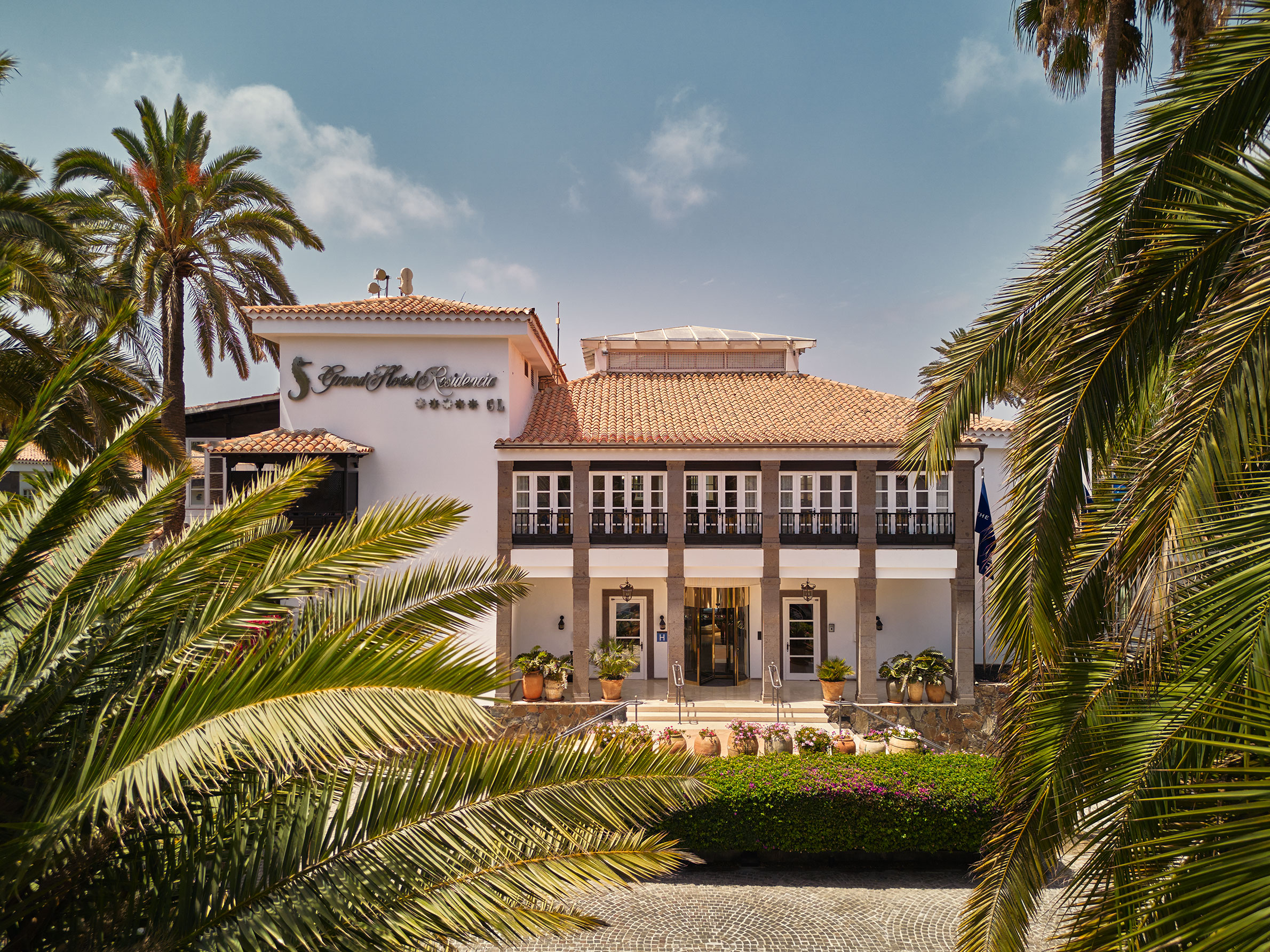Byggt på en gammal palmlund, precis vid kanten av Maspalomas böljande sanddyner, ligger Grand Hotel Residencia – ett förstklassigt boutiquehotell och Gran Canarias enda medlem i exklusiva Leading Hotels of the World. Hotellet är byggt som en Medelhavsby i spanskmorisk stil med låga vitputsade hus med terrakottatak bland höga palmer, blomsterkantade stigar och balkonger inramade med Bougainville. Alla rum och sviter är inredda av franske designern Alberto Pinto som har lyckats med den svåra konsten att skapa hemtrevnad från första stund. Mjuka textilier i blått och vitt kontrasterar vackert mot kolonialinspirerade möbler i mörka träslag. Franska fönster öppnas upp mot en privat uteplats eller balkong med utsikt mot poolen, Maspalomas sanddyner eller den grönskande trädgården. Strax intill hotellområdet ligger en lagun som lockar flyttfåglar som reser från Europa till Afrika – ett mönster som upprepar sig när frusna nordbor flyr vinterslasket i sina hemländer för en vecka eller två i denna semesteroas. Det vilar ett lugn och en känsla av avskildhet här, ändå är stranden och systerhotellet Seaside Palm Beach, bara ett par minuters promenad bort. Personalen på det förstklassiga spaet som har saltvattenpool och hammam är specialister på att mjuka upp swing-trötta axlar och kökets inspirerande kockar ser till att kroppen fylls på med energi och goda efterrätter inför morgondagens nya rundor. Faktum är att du förmodligen inte kan äta bättre på hela ön än just här – på restaurangen som belönades med en stjärna i Guide Michelin 2016 och drivs av prisbelönta Wolfgang Grobauer.