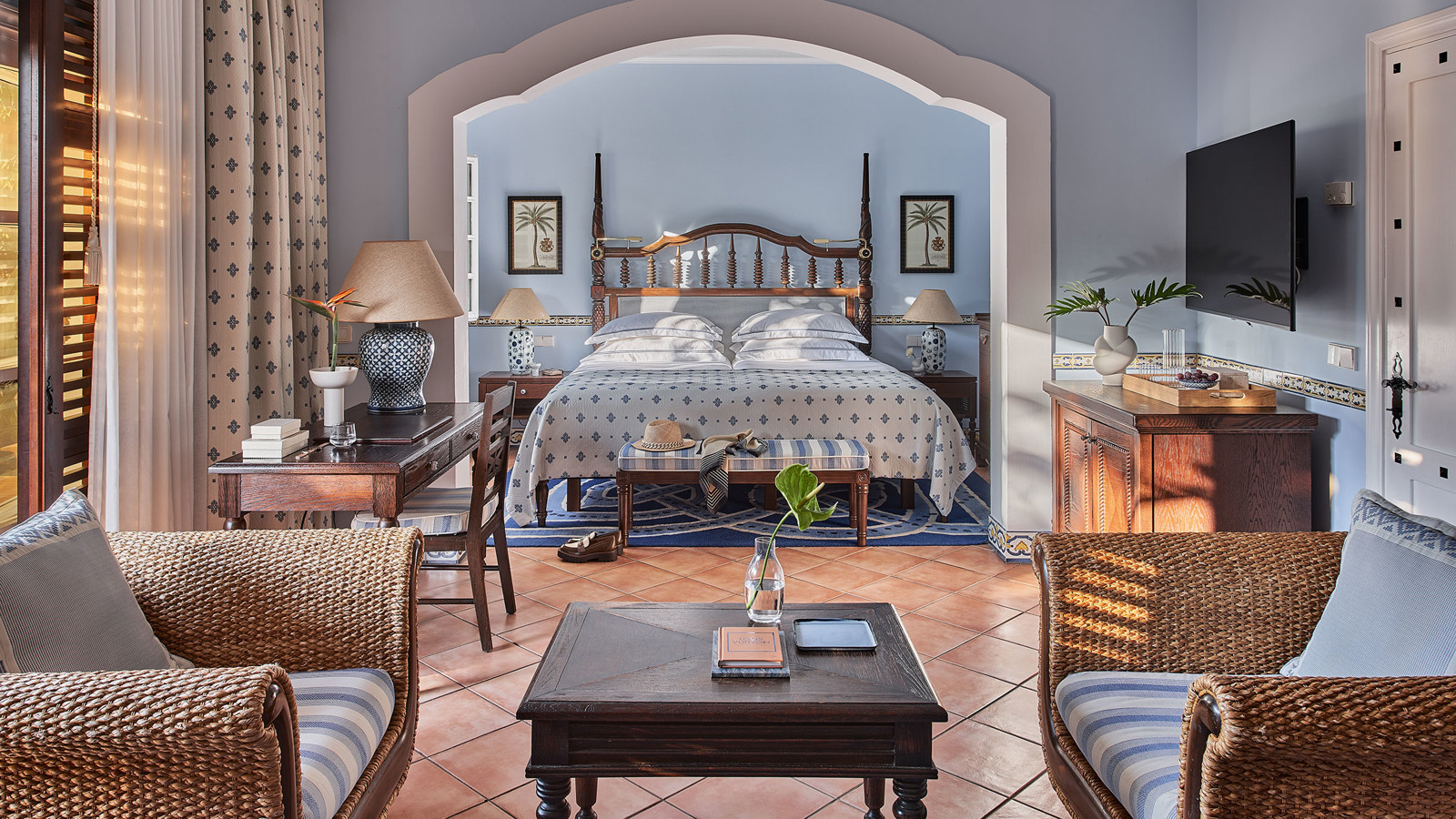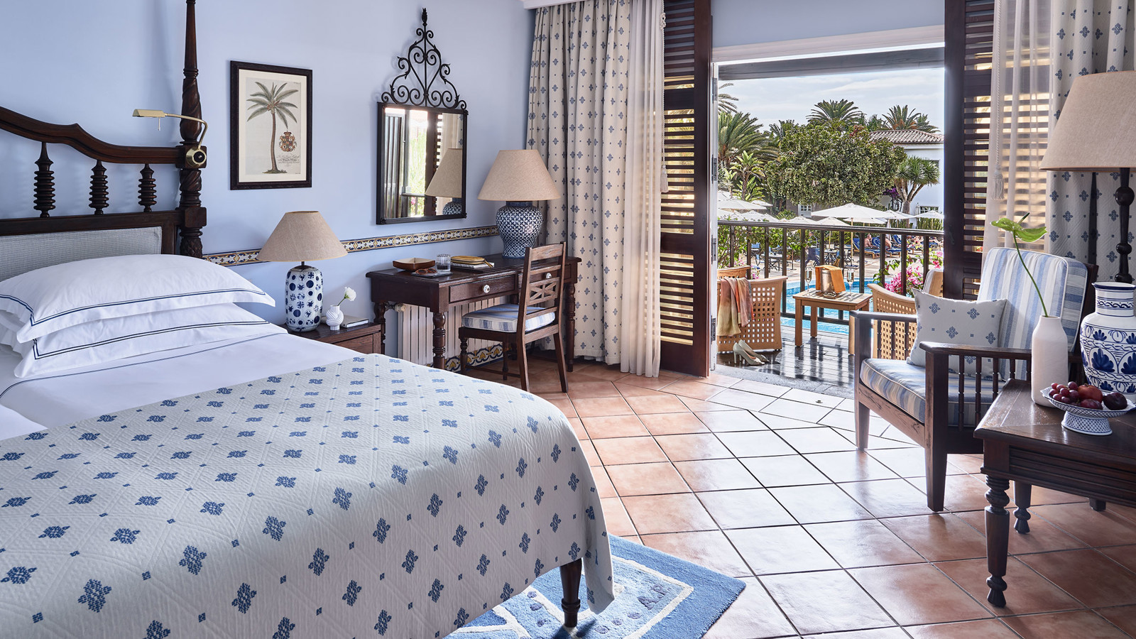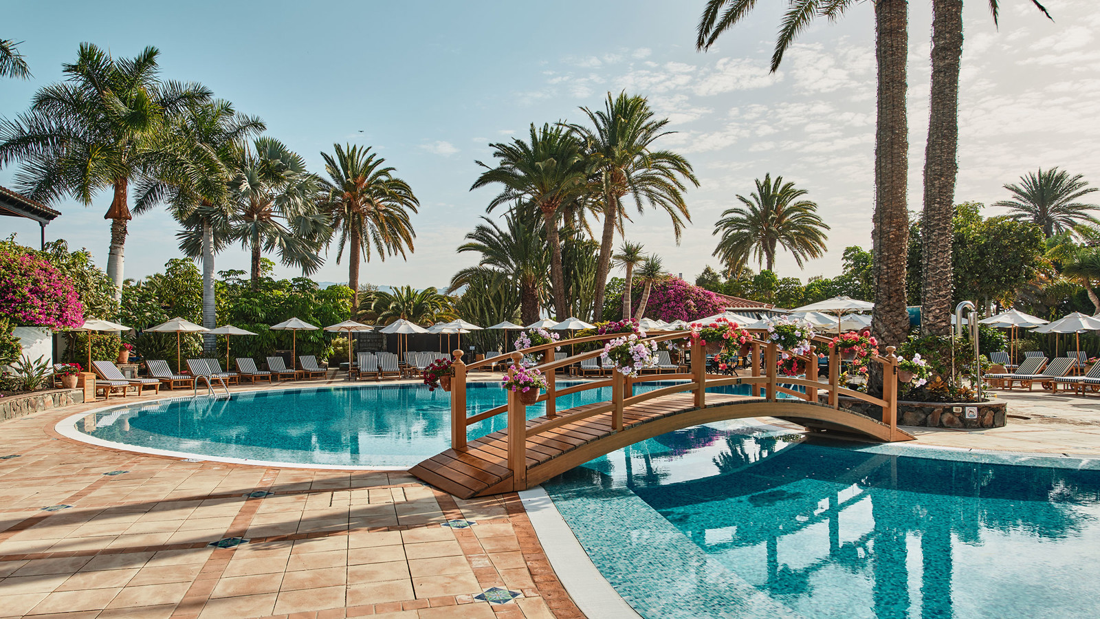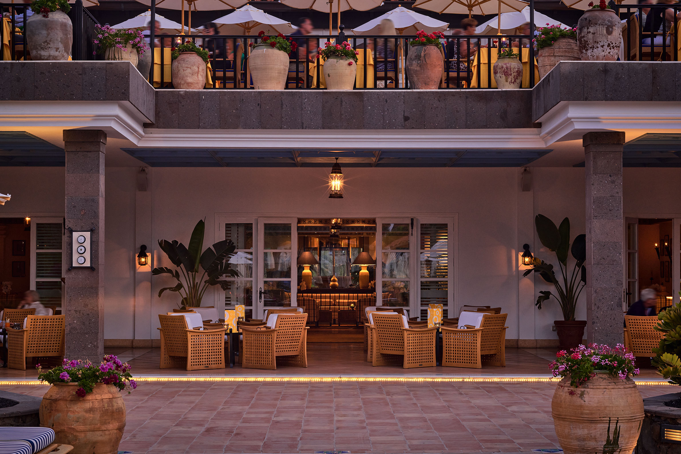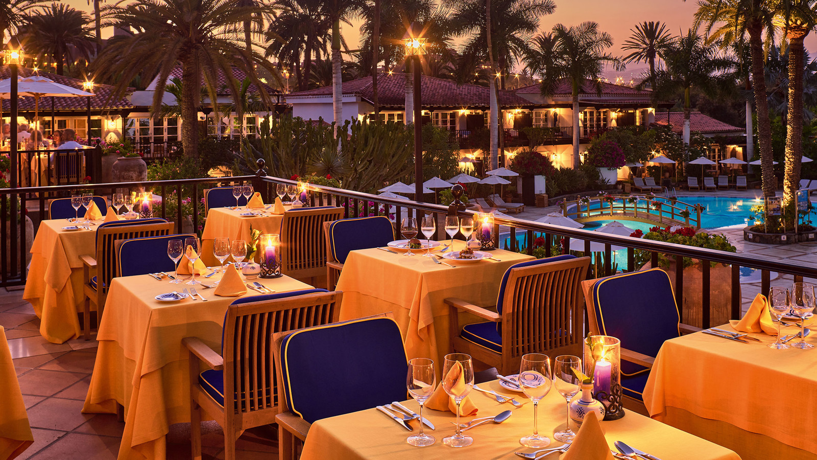 Byggt på en gammal palmlund, precis vid kanten av Maspalomas böljande sanddyner, ligger Grand Hotel Residencia – ett förstklassigt boutiquehotell och Gran Canarias enda medlem i exklusiva Leading Hotels of the World. Hotellet är byggt som en Medelhavsby i spanskmorisk stil med låga vitputsade hus med terrakottatak bland höga palmer, blomsterkantade stigar och balkonger inramade med Bougainville. Alla rum och sviter är inredda av franske designern Alberto Pinto som har lyckats med den svåra konsten att skapa hemtrevnad från första stund. Mjuka textilier i blått och vitt kontrasterar vackert mot kolonialinspirerade möbler i mörka träslag. Franska fönster öppnas upp mot en privat uteplats eller balkong med utsikt mot poolen, Maspalomas sanddyner eller den grönskande trädgården. Strax intill hotellområdet ligger en lagun som lockar flyttfåglar som reser från Europa till Afrika – ett mönster som upprepar sig när frusna nordbor flyr vinterslasket i sina hemländer för en vecka eller två i denna semesteroas. Det vilar ett lugn och en känsla av avskildhet här, ändå är stranden och systerhotellet Seaside Palm Beach, bara ett par minuters promenad bort. Personalen på det förstklassiga spaet som har saltvattenpool och hammam är specialister på att mjuka upp swing-trötta axlar och kökets inspirerande kockar ser till att kroppen fylls på med energi och goda efterrätter inför morgondagens nya rundor. Faktum är att du förmodligen inte kan äta bättre på hela ön än just här – på restaurangen som belönades med en stjärna i Guide Michelin 2016 och drivs av prisbelönta Wolfgang Grobauer.