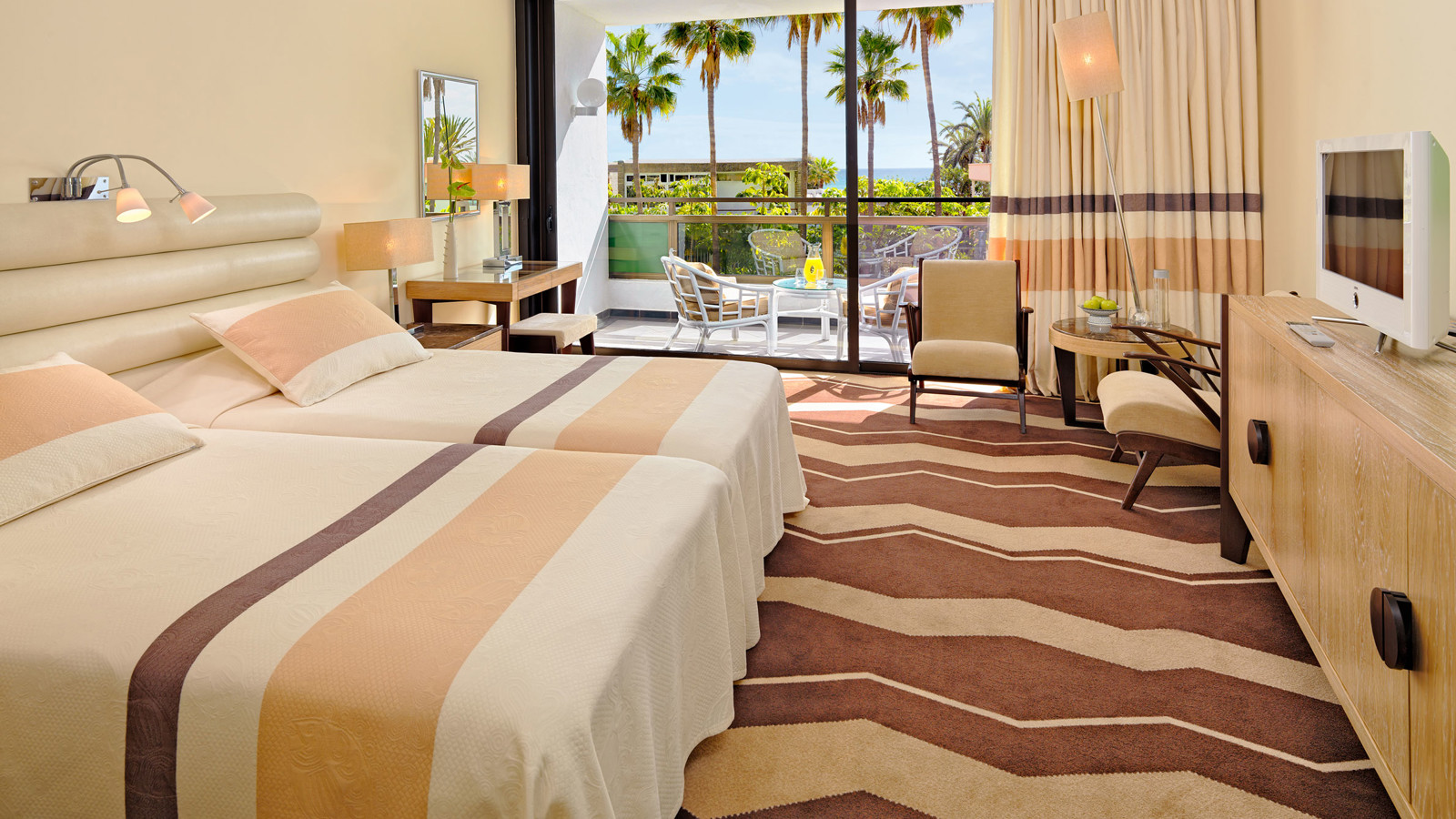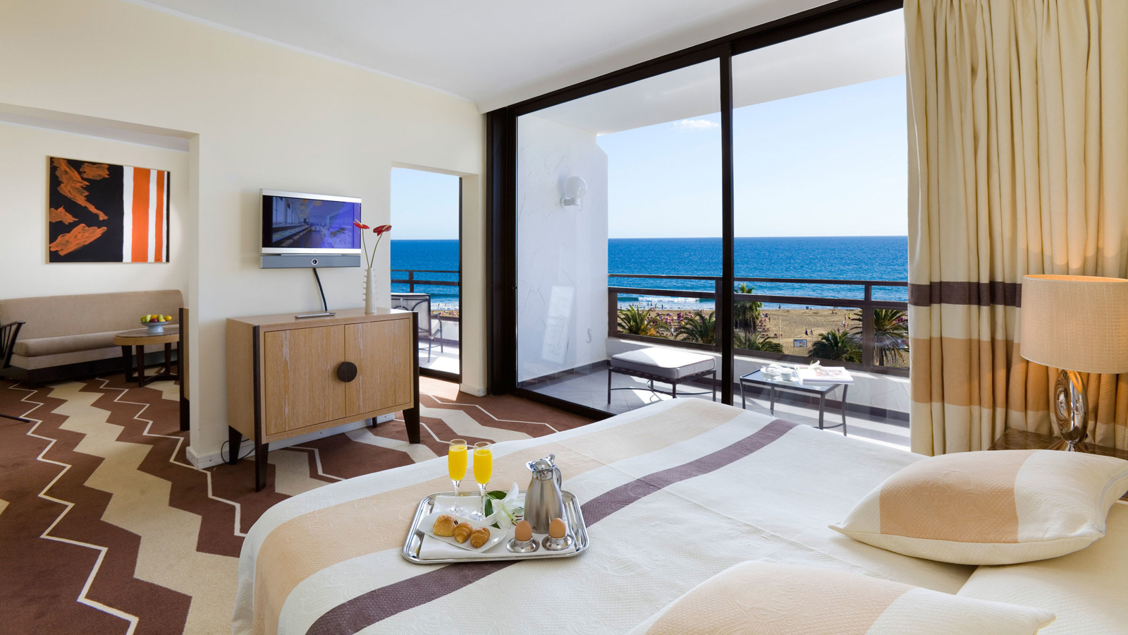 I ett lugnt och exklusivt område mellan havet och en 1000 år gammal palmträdgård, ligger Seaside Palm Beach. En strandresort med förstklassig service som för tankarna till 70-talets Miami. De 328 rummen med vågade färger och mönster är inredda i sann retrostil av den berömda arkitekten och designern Alberto Pinto. Han måste ha tänkt att det är fullkomligt omöjligt att vakna på annat än strålande humör i ett rum som har sicksack-mönstrade mattor, möbler i lekfulla former och citrongula väggar som pryds av tavlor i Marimekko-stil. Välj en svit några våningar upp för bästa utsikten och en privat balkong. En semester på Seaside Palm Beach innehåller allt du kan tänkas önska dig, från riktigt god mat på tre restauranger – La Bodega som drivs av prisbelönta Steffen Schenk serverar utsökta tapas – till uppvärmda pooler och ljuvliga spabehandlingar. Barnen har sitt eget område med internationell miniklubb, lekplats och barnpool. Vill ni ha sand mellan tårna ligger Maspalomasstranden bara 250 meter bort. Varje dag erbjuds fria lektioner i yoga och thai chi och på hotellet finns även en tennisbana som går att boka med tränare om du vill slipa på din backhand. Som golfare får du rabatt på flera lokala golfbanor och All Inclusive finns som tillval för dig som vill lämna plånboken hemma.