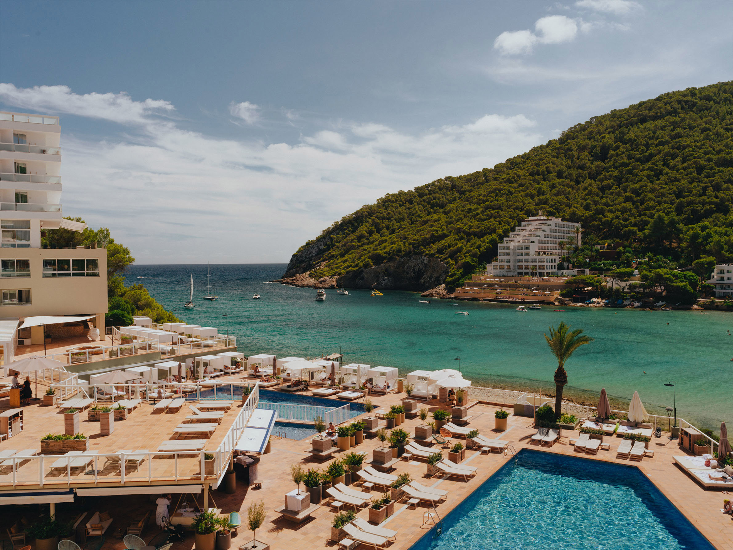 Partyön Ibiza är känd för sitt nattliv, men bjuder på mycket även för dem som inte vill festa in på morgontimmarna. På senare år har ön framgångsrikt etablerat sig som ett resmål för dig som söker barfotalyx, yoga och lantliga retreats på semestern. På östra sidan av Ibiza ligger exklusiva Mondrian Ibiza. Här bor du avskilt vid stranden med utsikt över Cala Llonga. Ändå bara ett par minuter med bil från superklubbar som Pacha and Ushuaïa. Bland de allmänna utrymmena hittar du tre pooler med vyer mot havet, en soldränkt terrass, mysiga eldstäder, spännande konstutställningar och en lobby vars väggar pryds av konstverk signerade lokala artister. De 154 rummen och sviterna är inredda i sandblästrade färger med inslag av korallrosa, valnötsbrunt och stänk av blått från havet. Många har privata terrasser. I mat- och dryckesväg finns bland annat kaffebaren Perq, fisk- och skaldjursrestaurangen Cuyo och japanska restaurangen Niko. En stor bonus för gäster som vill se sig om är förstås Mondrian Ibizas egen hamn från vilken färjan tar dig direkt till Ibiza stad, Santa Eulalia och Formentera.