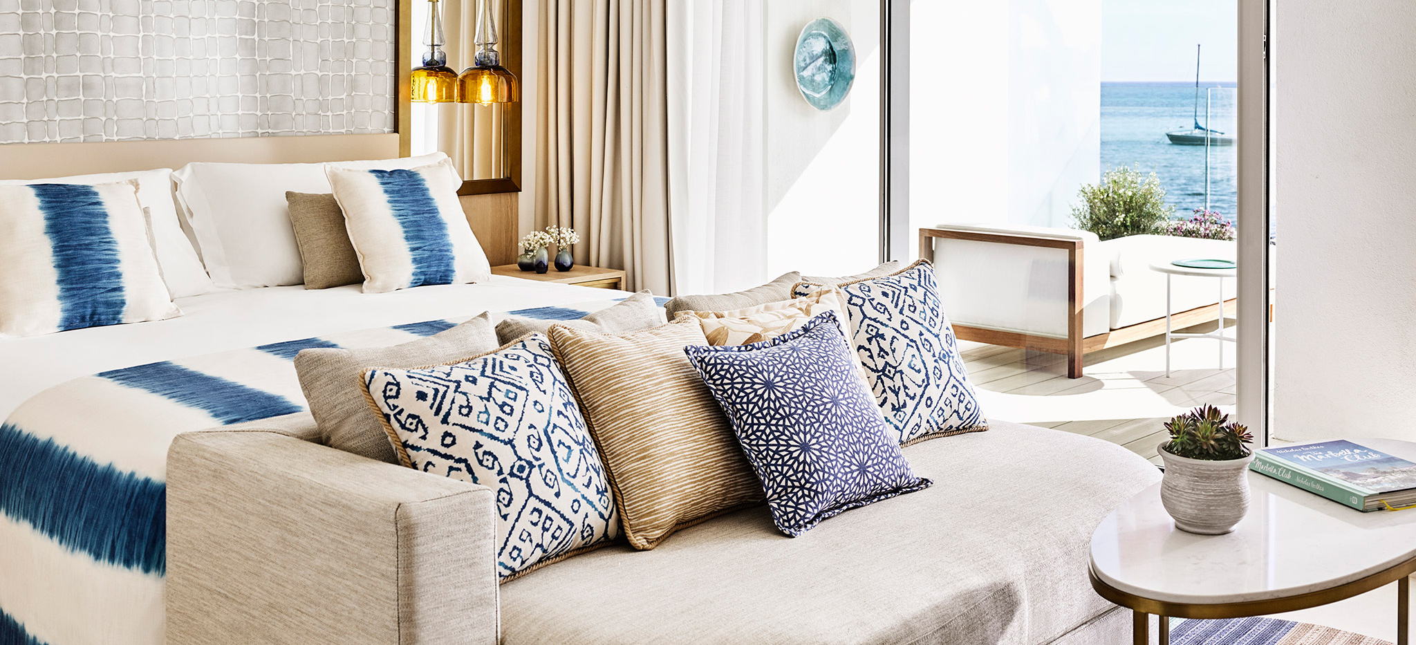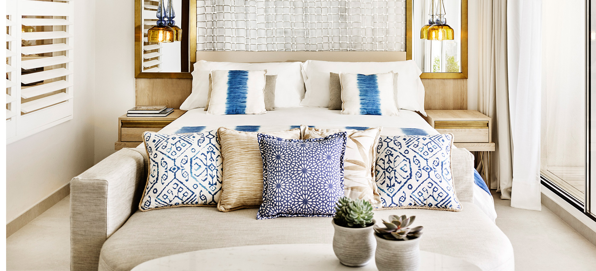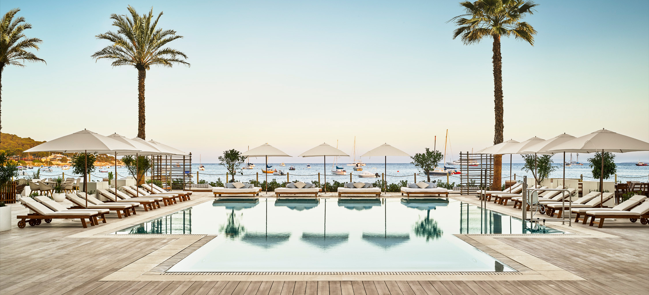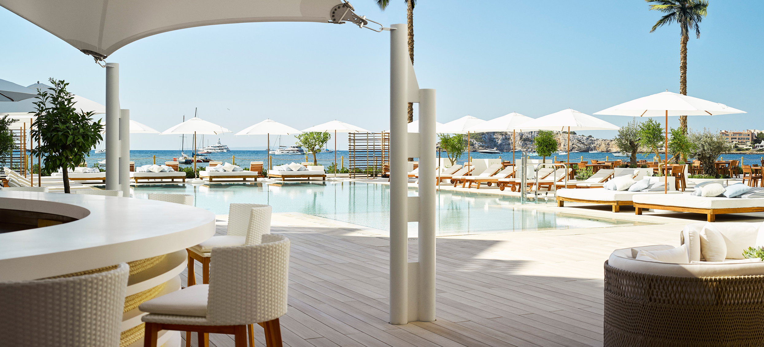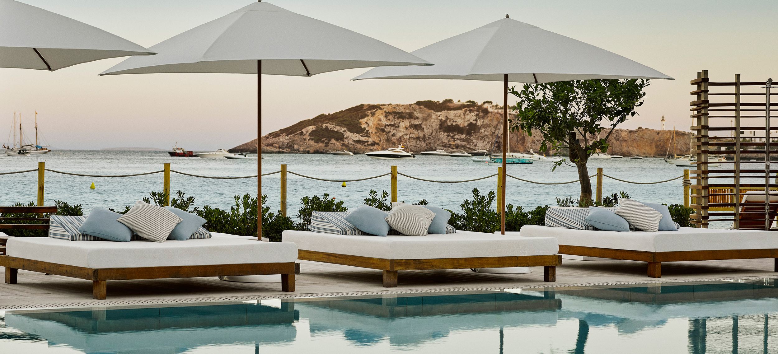 Nobu Hotel Ibiza Bay ligger vid stranden Cala Talamanca, strax norr om Ibiza stad. Det exklusiva hotellet bjuder på en poolkantad och takterrass-toppad upplevelse i vitt, turkost och lätta guldstänk. Inredningen i sviter och rum är klassiskt Island White där kanvasens grundfärg är målad i elfenben med gyllene toner och blått i olika lätta nyanser. Från den turkosa havsutsikten till en himmelsfärgad soffkudde och mattrand i djupaste korn. Alla rum och sviter har stora fönster från golv till tak och stora terrasser. Vissa rum har en egen cocktailbar för sundowners, andra är endast en balkongdörr från stranden så det är bara att ta med sig glaset ut i sanden. Efter en frukost på terrassen är det bara att fortsätta dagen vid poolen, smyga in en sangria på Nobu Hotel Ibiza Bays egen Beach Club eller provsmaka delikata tapas i nya Lounge Bar. Njut sedan dagen och avrunda med en massage eller manikyr på Six Senses Spa. En kvällstur bland boutiquerna i Marina Botafoch för några utsökta tapas och en svalkande cava med kondens på glaset. Därefter en lätt middag på Nobu, eller grillade skaldjur och fisk på den härliga strandrestaurangen i härligt avslappnad ”beach schack-”, så kallad chiringuito-stil. Somna till ljudet av vågor och vind.