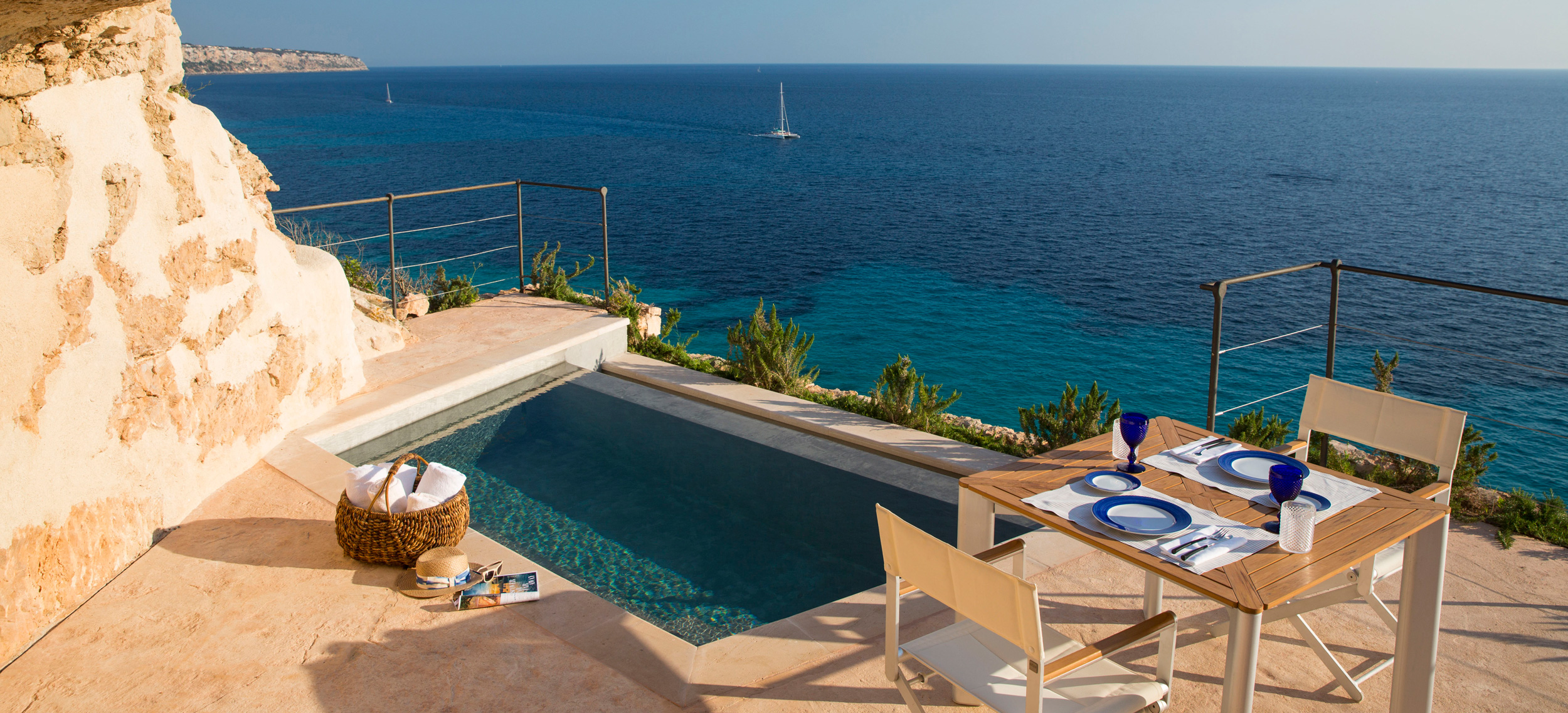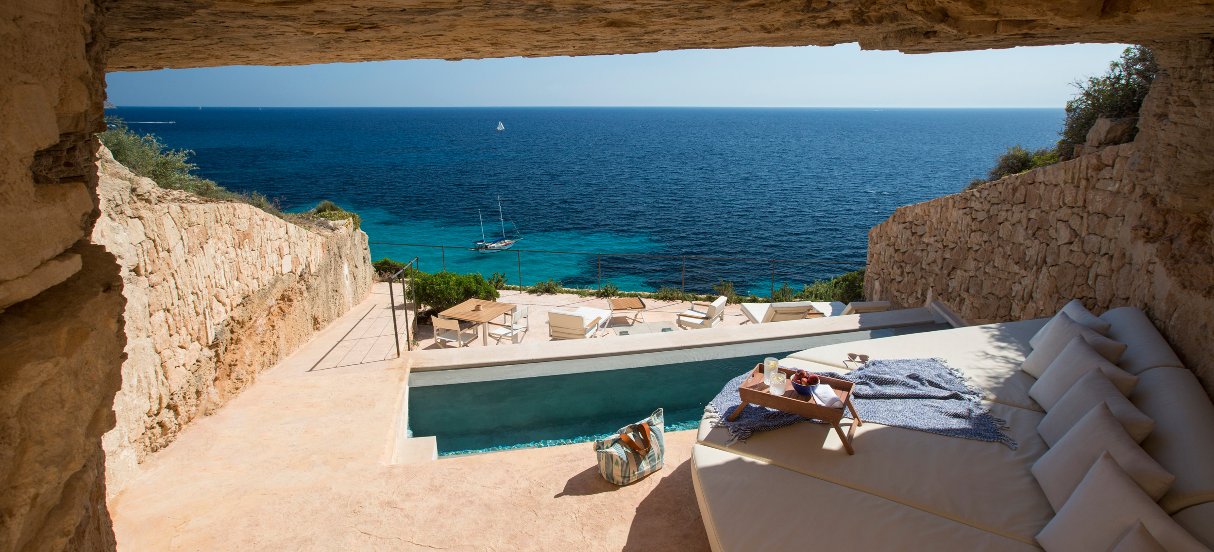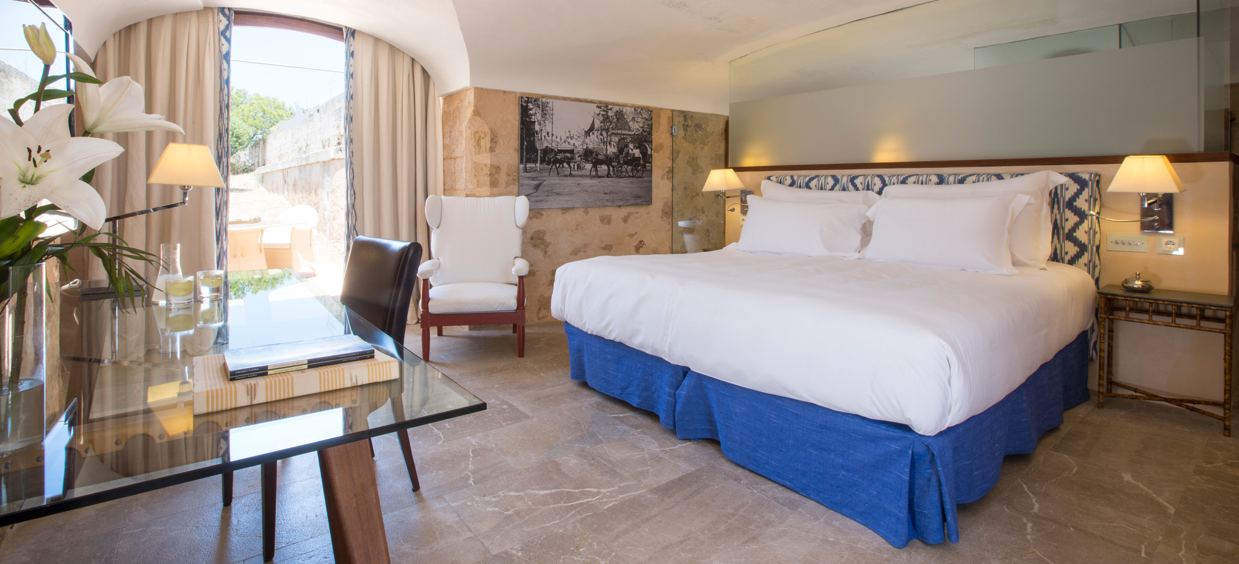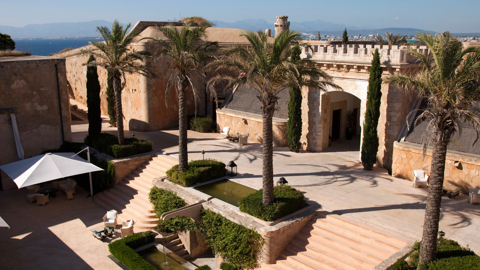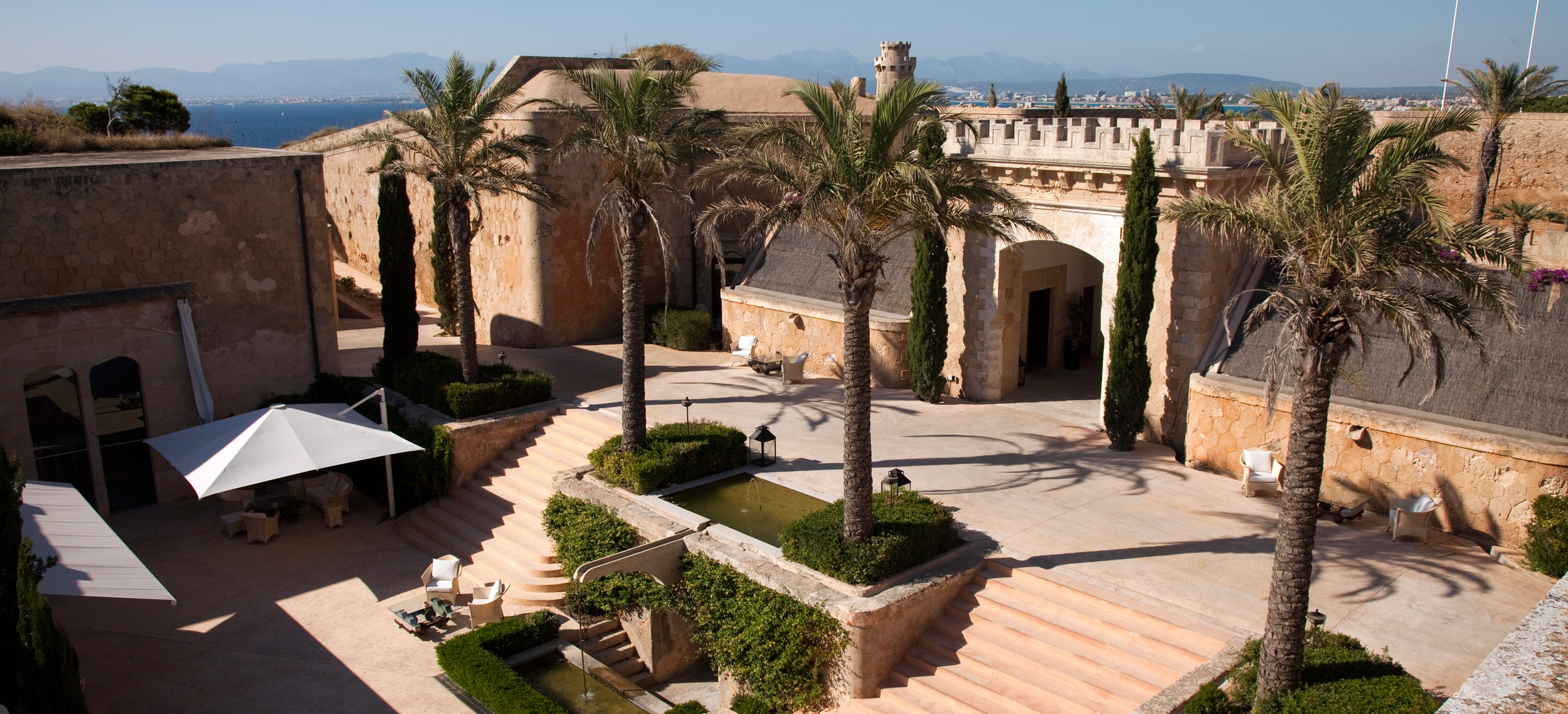 Ett av Mallorcas häftigaste boutiquehotell, Hotel Cap Rocat, ligger inrymt i ett gammalt fort, 15 minuter söder om Palma stad. Fortet i sandsten byggdes i slutet av 1800-talet och utrustades med kanoner, vallgravar, tinnar och torn. Idag ligger lyxsviterna i gamla skyddsrum, dolda i klippan, där kanonerna bytts ut mot privata pooler. Hotel Cap Rocat breder ut sig två kilometer utmed kusten. Atmosfären är fridfull och romantisk. Här finns en vacker infinitypool med saltvatten och utsikt över Palmabukten samt en privat klippstrand med direkt tillgång till havet. Som gäst kan du paddla kajak i det turkosfärgade Medelhavet, dyka, segla, rida, spela tennis eller skämma bort kropp och själ i spa:et vars arkitektur, är minst sagt spektakulär. På kvällarna kan du dinera på prisbelönta The Fortress Restaurant eller under bar himmel på Sea Club. Sviterna är inredda med en stilsäker blandning av moderna och klassiska möbler. Alla sviter har privat uteplats med vacker havsutsikt.