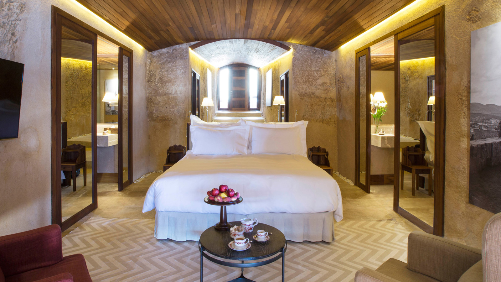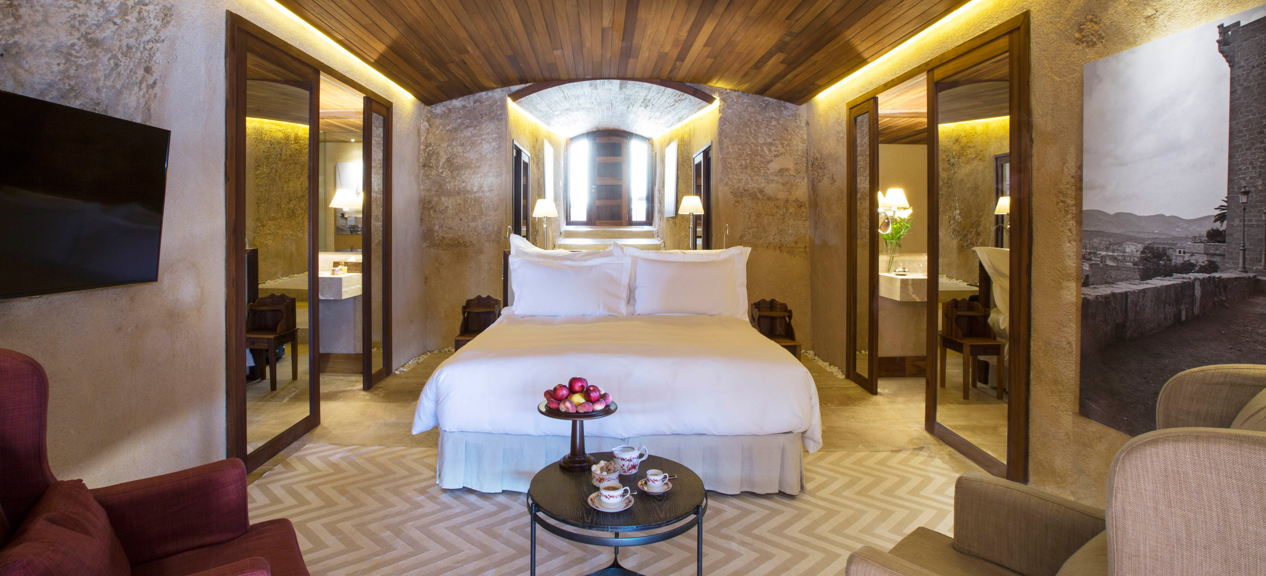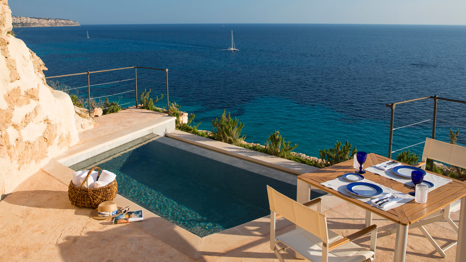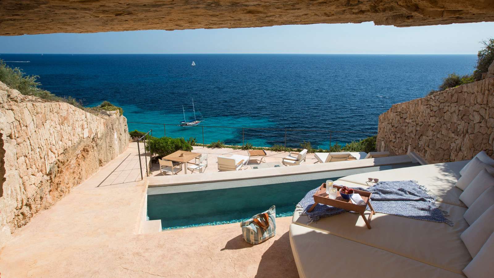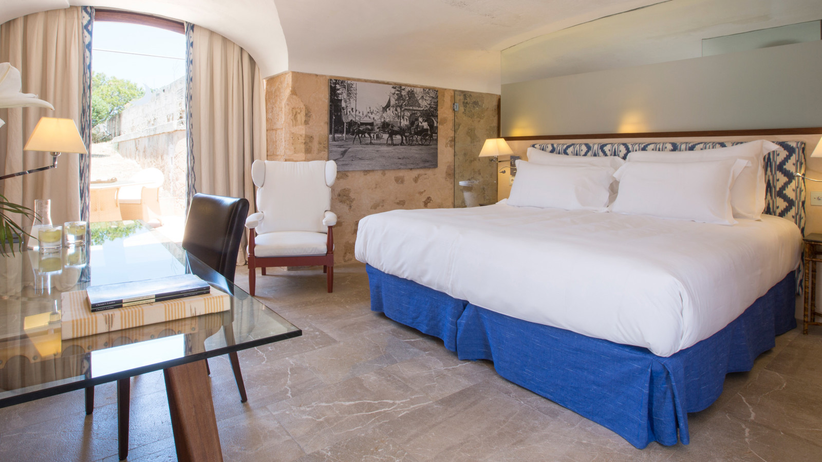 Ett av Mallorcas häftigaste boutiquehotell, Hotel Cap Rocat, ligger inrymt i ett gammalt fort, 15 minuter söder om Palma stad. Fortet i sandsten byggdes i slutet av 1800-talet och utrustades med kanoner, vallgravar, tinnar och torn. Idag ligger lyxsviterna i gamla skyddsrum, dolda i klippan, där kanonerna bytts ut mot privata pooler. Hotel Cap Rocat breder ut sig två kilometer utmed kusten. Atmosfären är fridfull och romantisk. Här finns en vacker infinitypool med saltvatten och utsikt över Palmabukten samt en privat klippstrand med direkt tillgång till havet. Som gäst kan du paddla kajak i det turkosfärgade Medelhavet, dyka, segla, rida, spela tennis eller skämma bort kropp och själ i spa:et vars arkitektur, är minst sagt spektakulär. På kvällarna kan du dinera på prisbelönta The Fortress Restaurant eller under bar himmel på Sea Club. Sviterna är inredda med en stilsäker blandning av moderna och klassiska möbler. Alla sviter har privat uteplats med vacker havsutsikt.
