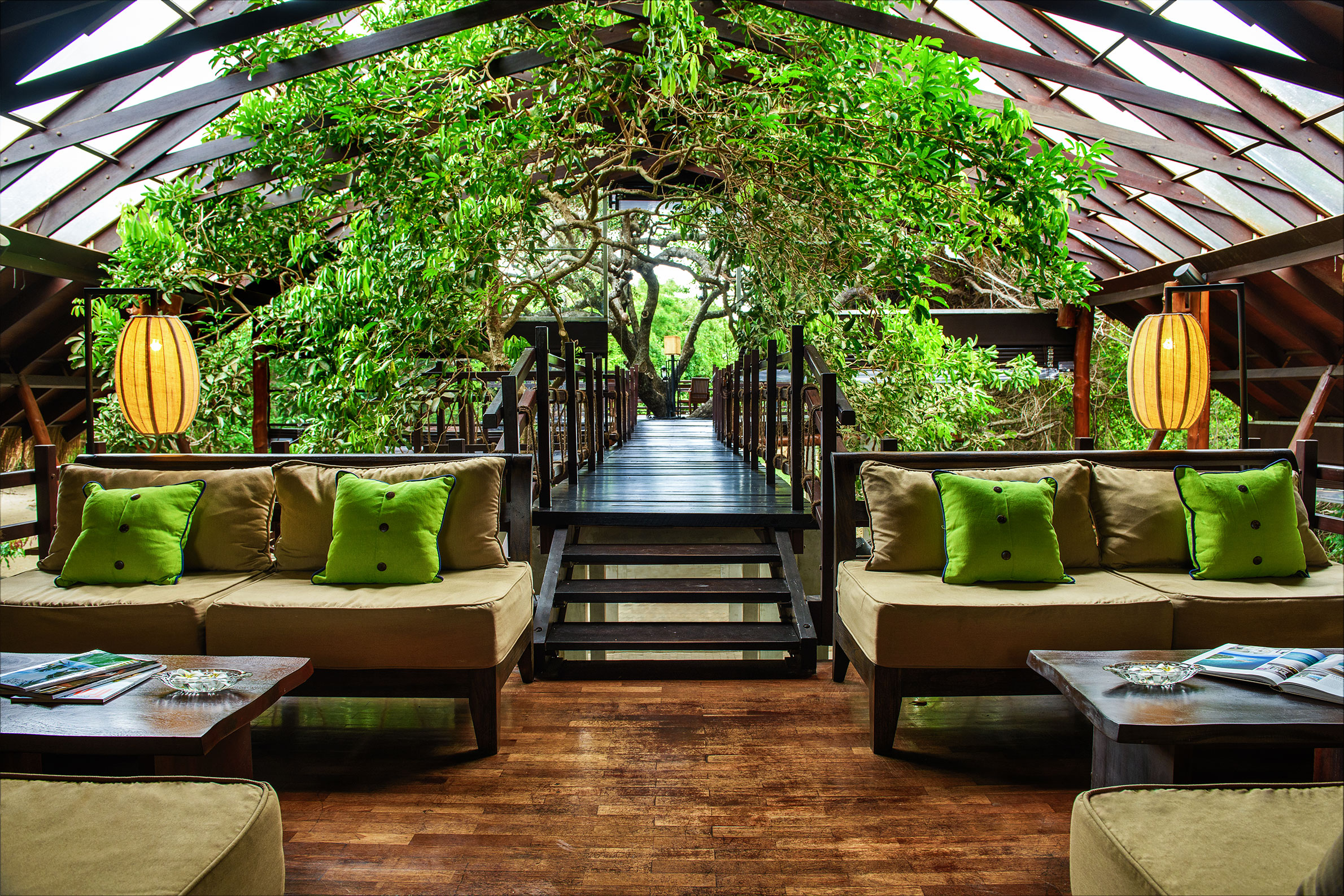 Spektakulärt placerat vid en orörd sandstrand mellan djupgrön djungel, tropiska mangroveskogar, en lagun som sjuder av fågelliv och den vidsträckta Indiska oceanen, ligger Uga Jungle Beach. En strandresort med både mat och service i toppklass och möjlighet att under maj till oktober se blåval, kaskelot och spinndelfin. I närheten hittar du även hamnstaden Tricomalee som är perfekt för en dos shopping och kultur. Boendet består av 49 rum och villor, vissa med utomhusduschar, privata terrasser och egna sandstigar ned till havet. Hotellets mittpunkt är en tvåvåningsbyggnad med öppna sidor som huserar en restaurang, lobby och bar och kantas av en slingrande damm. Bortom den leder en promenadväg genom den täta buskvegetationen till en nästintill övergiven paradisstrand där sköna solsängar väntar. Bland vattenaktiviteterna finns snorkling bland neofärgade fiskar, jetski, segling och båtutflykter. Naturälskare kan vandra och cykla genom djungeln i Pigeon Island National Park. När magen kurrar kan du välja mellan traditionell lankesisk, internationell eller asiatisk mat. Bara de absolut bästa råvarorna för säsongen används på restaurangen som bland annat serverar ljuvliga curryrätter och pinfärska skaldjur.