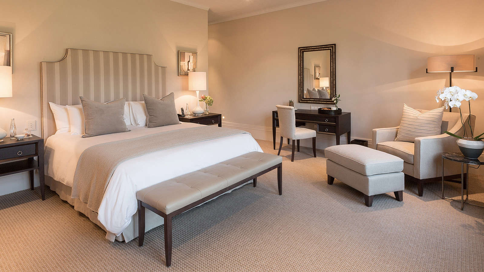 Leeu Estates är ett exklusivt boutiquehotell och vingård som ligger bland vingårdar, trädgårdar och buskig fynbos i natursköna Franschhoek - en av världens finaste mat- och vindestinationer. Rum och sviter är modernt inredda med klassisk touch i lugnande färgskalor. Noggrant utvalda konstverk förgyller rummen tillsammans med lyxiga badrum i marmor. Många rum och sviter har privata terrasser och eldstäder där det går att njuta utsikten över byn och bergen över ett glas perfekt tempererad glädje från något av de närliggande vinhusen. Eller vinkonst från det egna Mullineux&Leeu Family Wines. Stjärnkocken Oliver Cattermole ansvarar för ett cuisine som kan vara Franschhoeks allra bästa, något som kännetecknar alla Leeu hotellen i dalen. Givetvis erbjuds fri transfer för att nyttja någon av systerhotellen Leeu House och Le Quartier Francais prisbelönta restauranger och konstgallerier. Du kan givetvis även koppla av vid Leeu Estates sköna infinitypool, träna på gymmet eller bli ompysslad på Leeu Spa. Det finns även ett stämningsfullt bibliotek på den gamla herrgården.