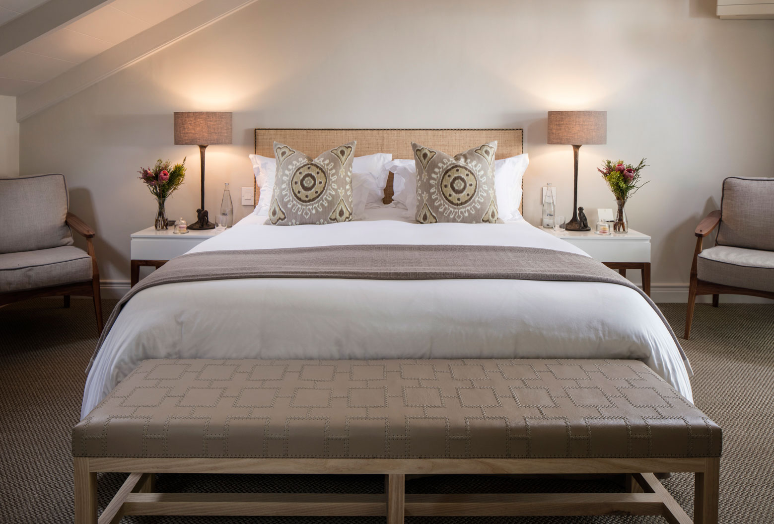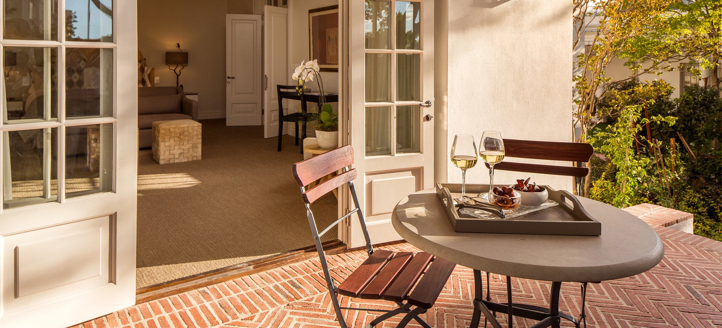 Leeu House är ett modernt och elegant litet hotell med endast tolv underbara rum beläget mitt i de sydafrikanska vinländernas hjärta, Franschhoek. Leeu House är inte storslagen lyx i Las Vegas-bemärkelse, utan lyxen ligger i superb service och magnifika matupplevelser. Med de spetsiga bergen som bakgrund ligger det kalkvita hotellet i en liten trädgård mitt bland små restauranger och vinhus, endast några steg från Hugenot Memorial Museum och Franschhoek Wine Tram. Alla de tolv rummen är individuellt inredda och inget är det andra likt, utöver en avslappnad och sofistikerad känsla med hög kvalitet i vackra material och lyxiga badrum med värme i marmorgolv. Några av rummen har terrasser, antingen med utsikt över bergen, eller med enkel tillgång till hotellets pool. Köket står under ledning av dekorerade Oliver Cattermole som med finaste organiska ingredienser skapar underbara måltider i restaurangen The Conservatory som även serverar al fresco. Vinet har en helig plats i Leeu House hjärta och man är mycket stolt över den egna produktionen Mullineux & Leeu Family Wines där man samarbetar med erfarna vinmakarparet Chris och Andrea Mullineux. I Wine Studio görs underbara vinprovningar i en unik miljö designat av den spanske stjärnarkitekten Tomeu Esteva. Dessutom finns här ett spa, gym och en pool att svalka sig i under varma dagar.