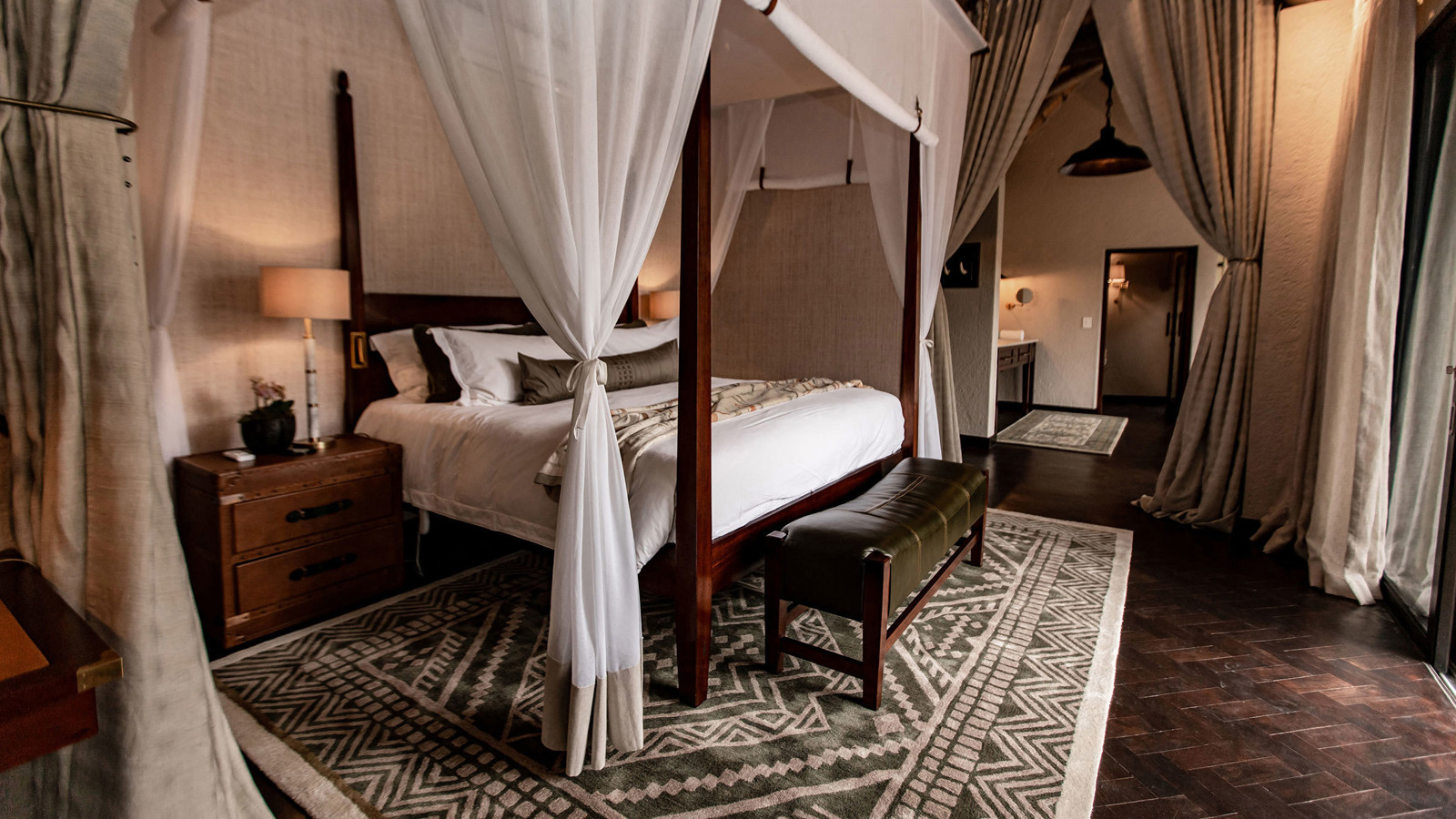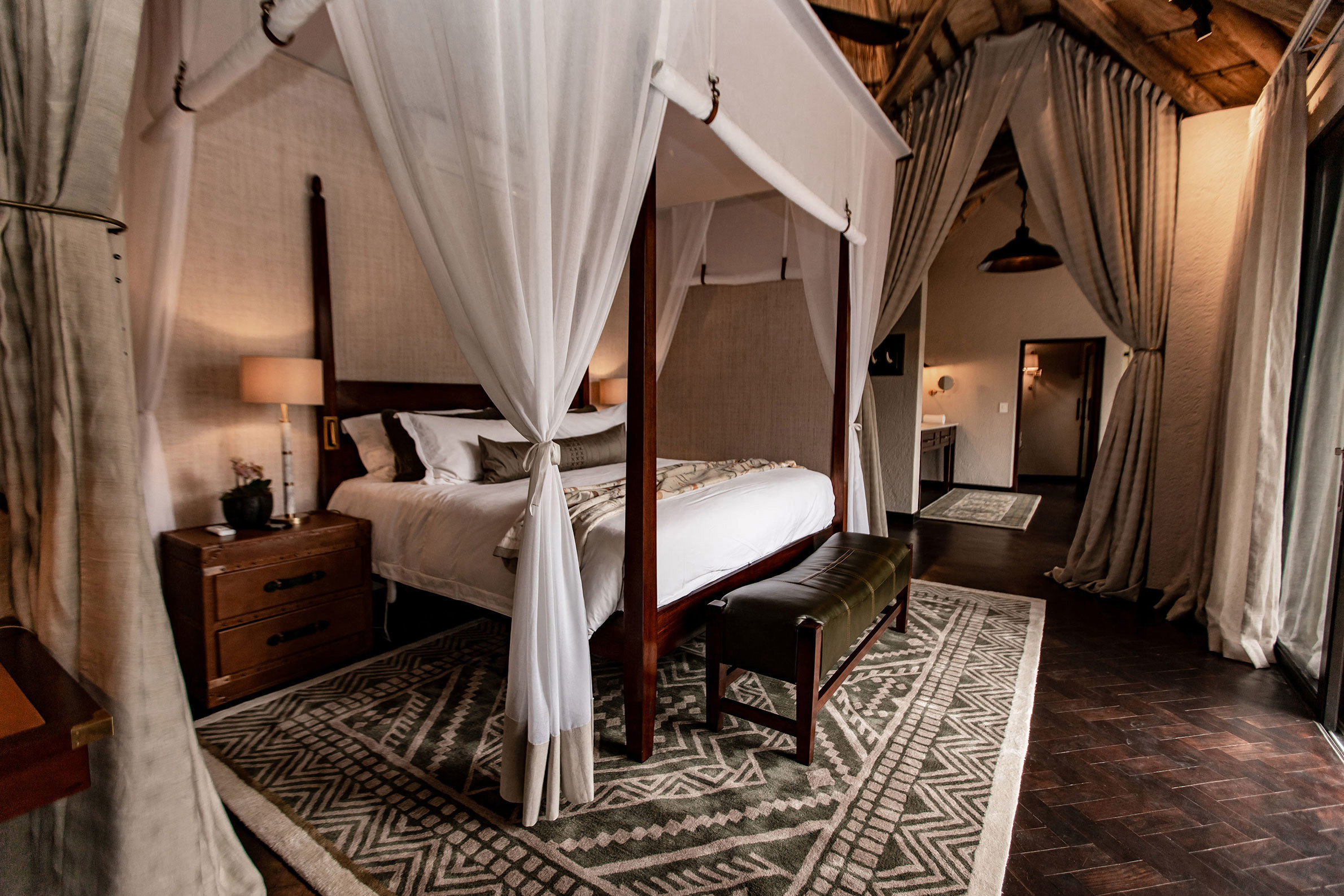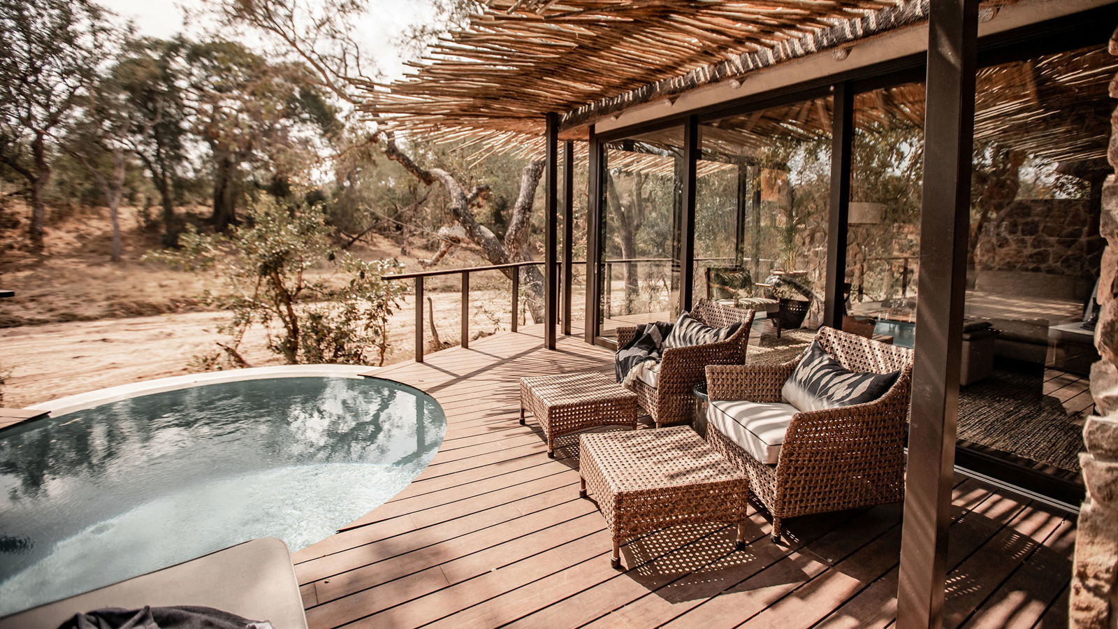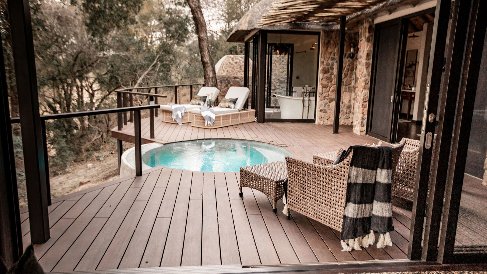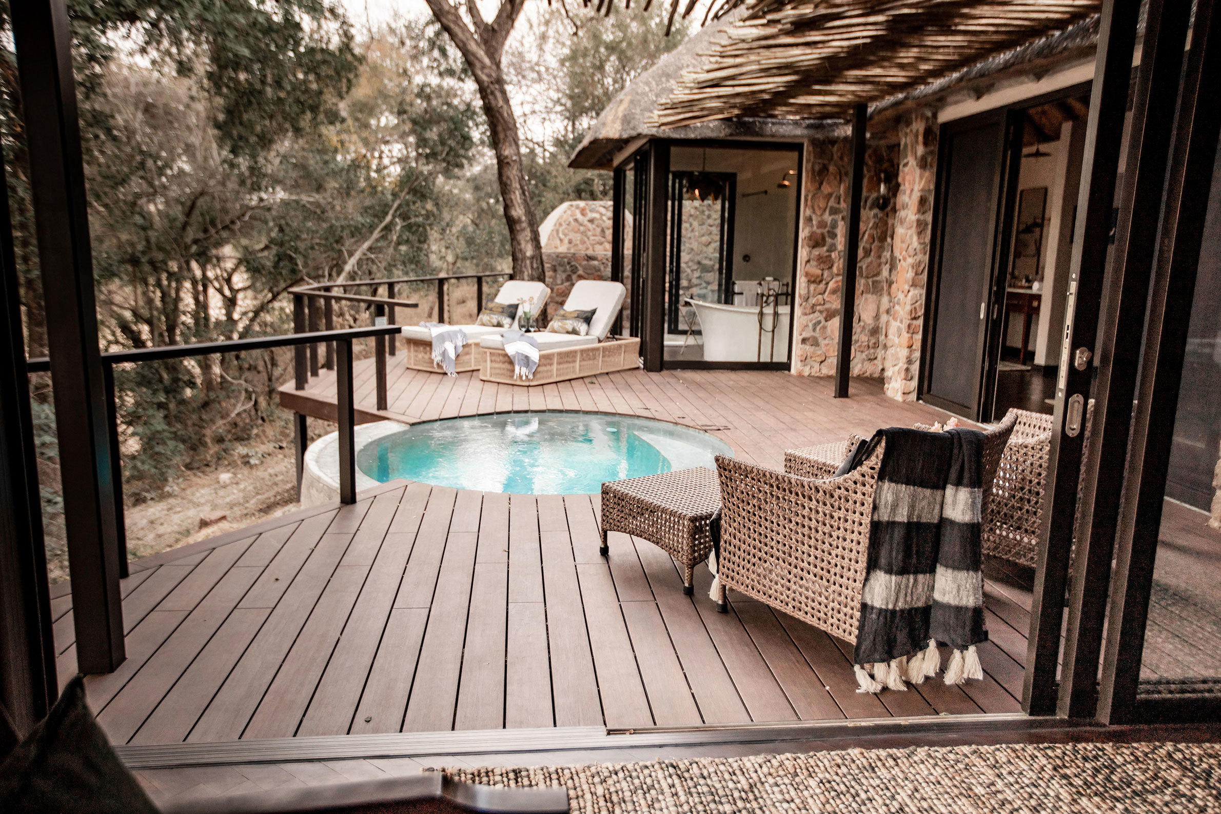 Dulini Moya ligger i en fridfull flodlund, omsluten av ett lummigt tak av gigantiska ebenholtsträd i Sabi Sand Game Reserve. Detta reservat, med sina oinhägnade gränser till Kruger National Park, är hem för en stor mångfald av vilda djur. Rangers och trackers på Dulini är några av de bästa i branschen, alla välutbildade med utmärkta kvalifikationer. De tar dig med på både game drives och vandringssafarier där ni spårar och fotograferar de stora fem – lejon, leopard, elefant, buffel och noshörning. Dulini Moya Lodge kombinerar lyx och modern elegans med en afrikansk twist. De sex utsökta sviterna har avsvalkningspooler, utomhusduschar och skuggiga däck. Inuti är inredningen romantisk med böljande myggnät och vackra badrum. Timmergångar tar dig genom magiska stigar längs betande antiloper. Kvällsmiddagen är en sagoupplevelse med lyktor och sprakande eldar som lyser upp en utomhusvik av träd och stenpelare. Varje rätt är sammansatt för att locka smaklökarna och sätta fart på fantasin. Som gäst bjuds du på fina viner från vinkällaren som fängslar även den mest utbildade vinkonnässören, samt en imponerande samling whisky och konjak.