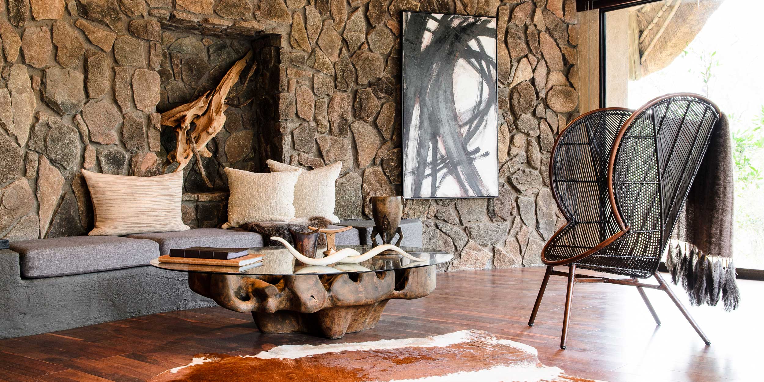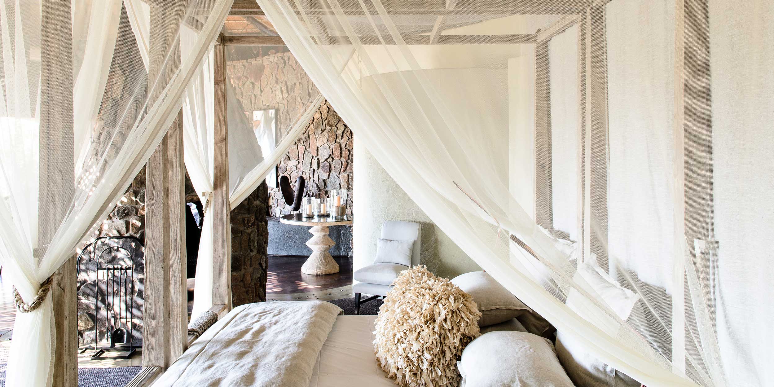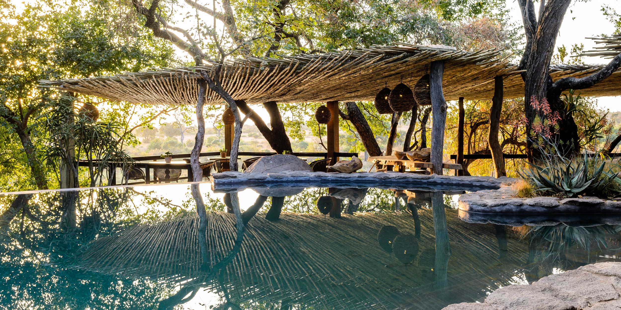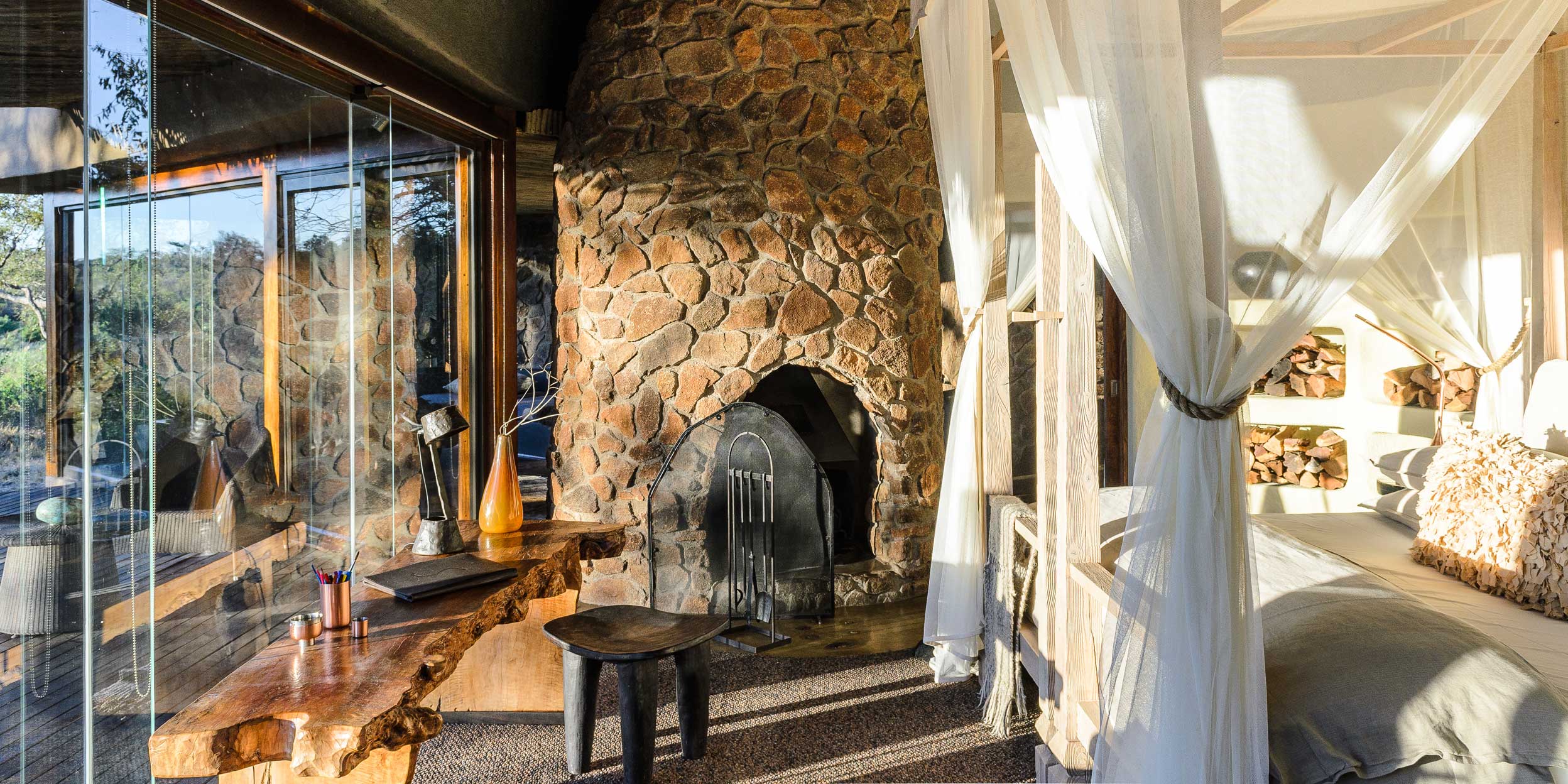Singita Private Game Reserve är en garanti för fantastisk safari inramad av gourmetmiddagar, vin, spa och boende i absolut världsklass. Singita Boulders Lodge andas ett lugn som både hedrar och hyllar Afrika och ligger i hjärtat av Sabi Sands, ett reservat som erbjuder goda möjligheter att uppleval The Big Five hela året. Området är särskilt känt för sina många leoparder. Lodgen är byggd runt ett enormt stenblock, Boulders Rock, och det har inte bara gett lodgen sitt namn utan även inspirerat till de läckra sviternas inredning i naturnära toner med mycket sten, brons, färgglada tyger och mjuka tränyanser med intressanta detaljer som antik konst och artefakter. Vardagsrummet har en öppen spis och sovrummet ett generöst tilltaget badrum med utedusch. Fönster och terrasser med stora trädäck har alla en fantastisk panoramautsikt och vetter ut över Sand River och de djur som kommer dit för att dricka. Den öppna planlösningen släpper in både landskap och ljus under de halmade taken och närheten till naturen är anslående. Vinkällaren innehåller över 12 000 flaskor av utsökta årgångar. Här har du tillgång till safari med ranger när helst du vill samt även andra aktiviteter som mountain bike och bågskytte.
