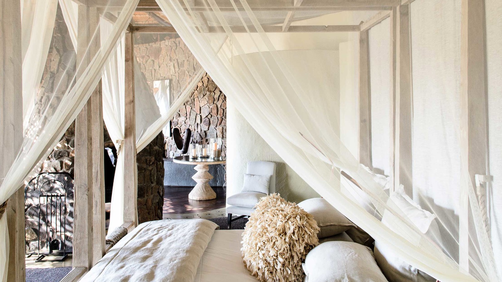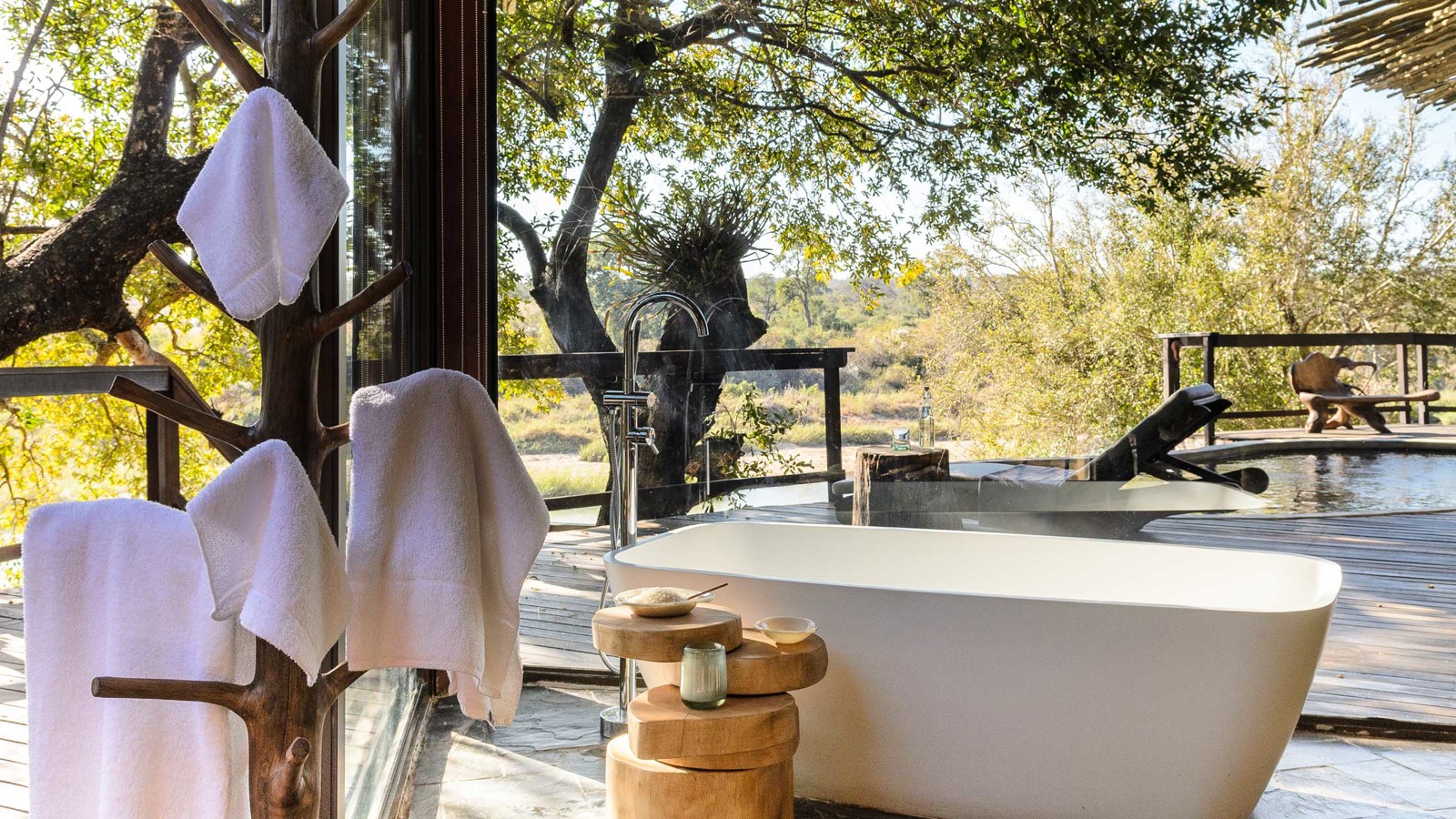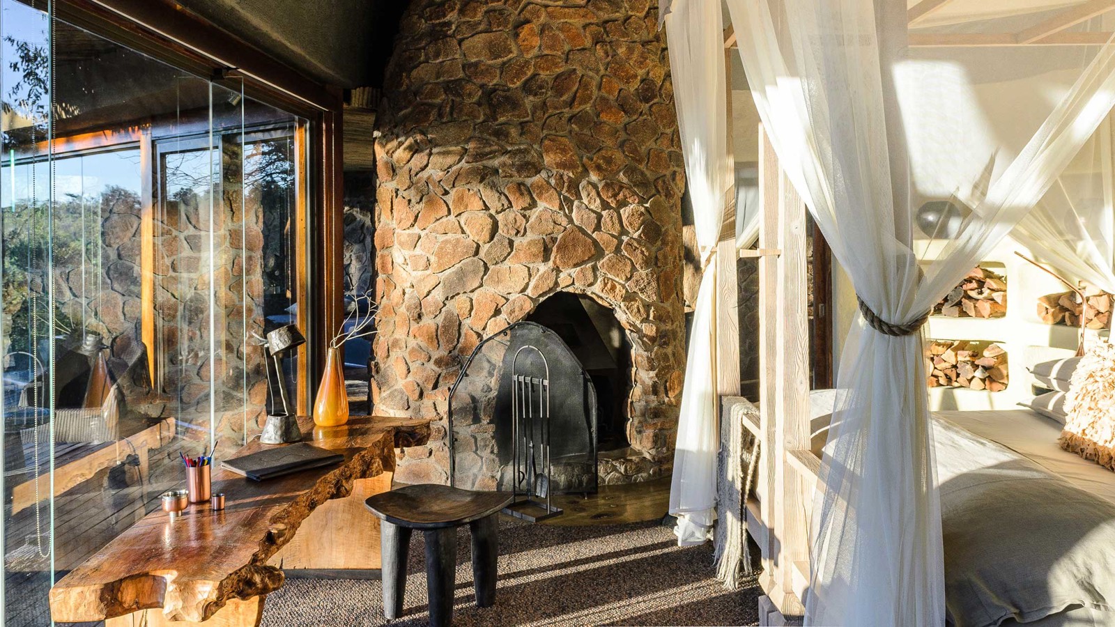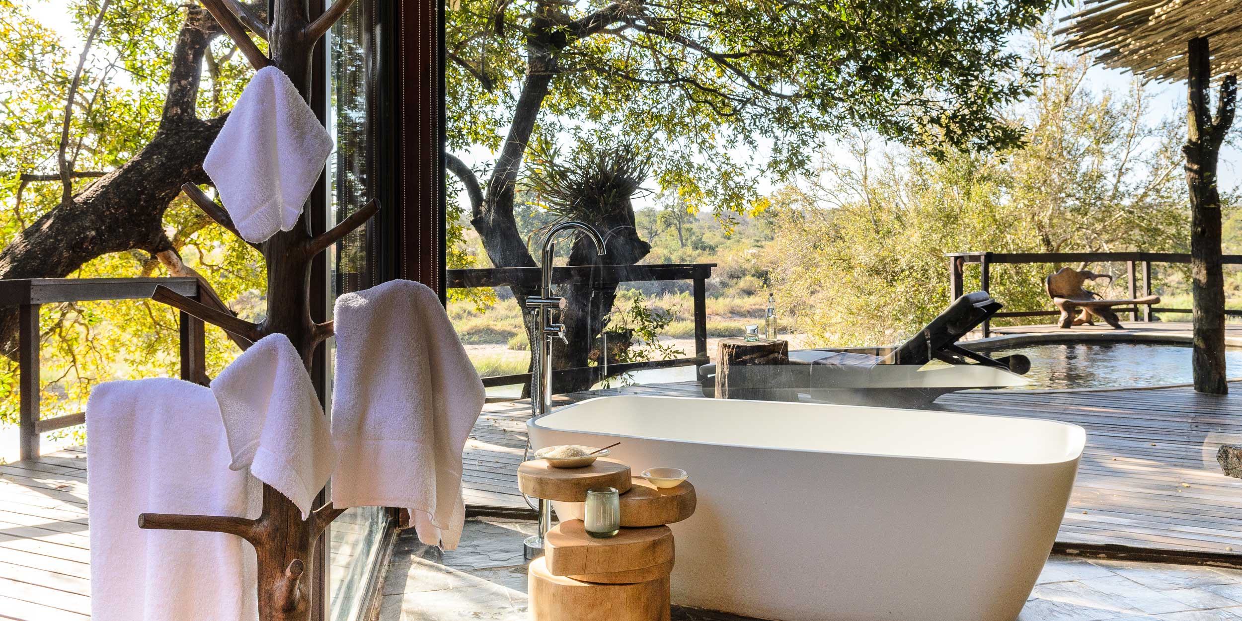 Singita Private Game Reserve är en garanti för fantastisk safari inramad av gourmetmiddagar, vin, spa och boende i absolut världsklass. Singita Boulders Lodge andas ett lugn som både hedrar och hyllar Afrika och ligger i hjärtat av Sabi Sands, ett reservat som erbjuder goda möjligheter att uppleval The Big Five hela året. Området är särskilt känt för sina många leoparder. Lodgen är byggd runt ett enormt stenblock, Boulders Rock, och det har inte bara gett lodgen sitt namn utan även inspirerat till de läckra sviternas inredning i naturnära toner med mycket sten, brons, färgglada tyger och mjuka tränyanser med intressanta detaljer som antik konst och artefakter. Vardagsrummet har en öppen spis och sovrummet ett generöst tilltaget badrum med utedusch. Fönster och terrasser med stora trädäck har alla en fantastisk panoramautsikt och vetter ut över Sand River och de djur som kommer dit för att dricka. Den öppna planlösningen släpper in både landskap och ljus under de halmade taken och närheten till naturen är anslående. Vinkällaren innehåller över 12 000 flaskor av utsökta årgångar. Här har du tillgång till safari med ranger när helst du vill samt även andra aktiviteter som mountain bike och bågskytte.