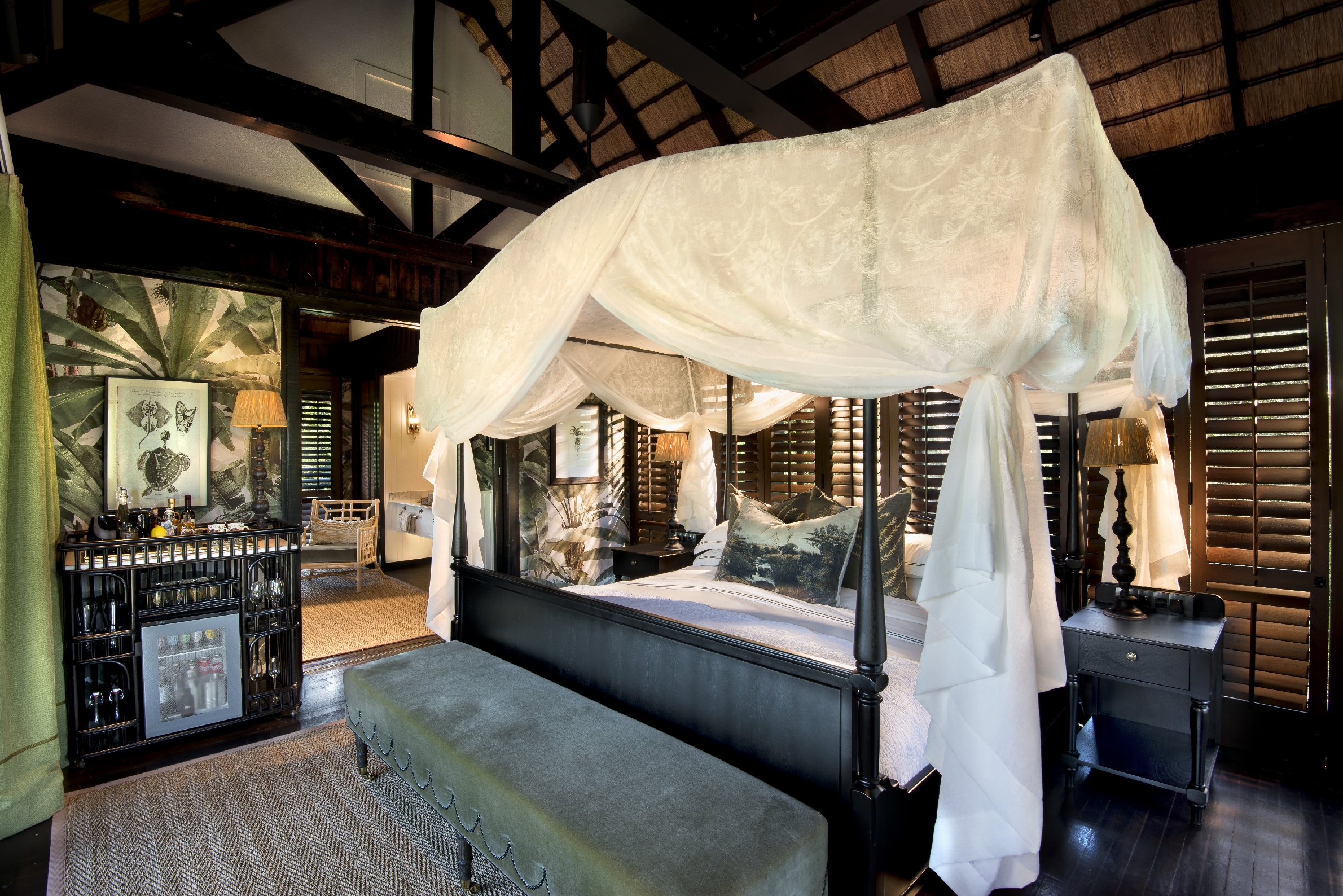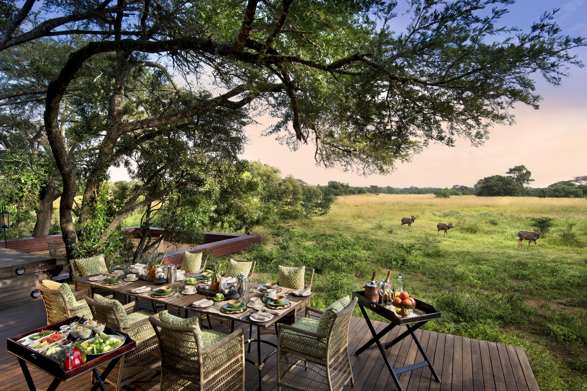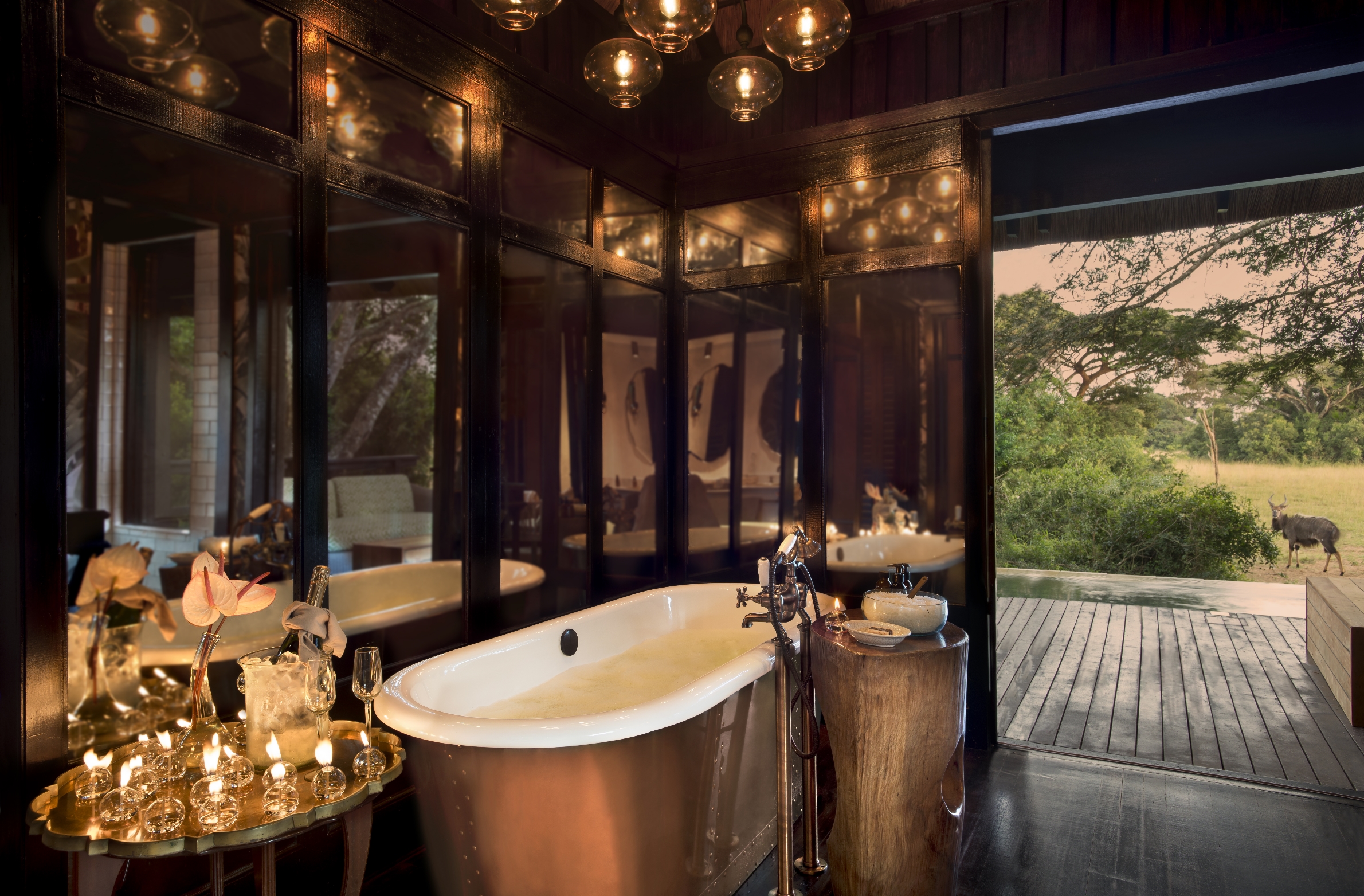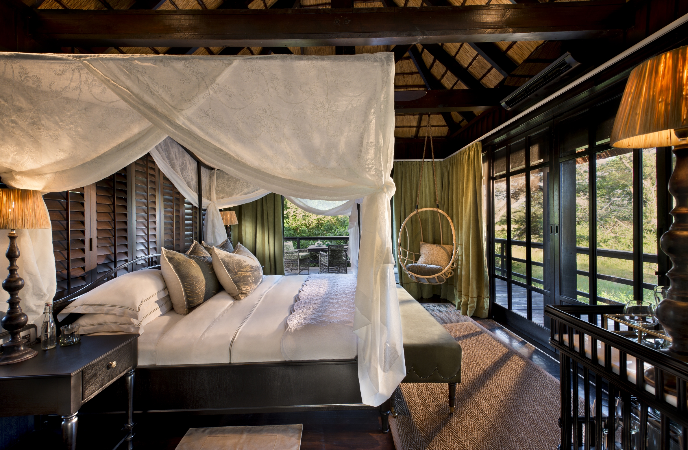 Att bara tillbringa en stund i den rymliga sviten är som att vara på safari. &Beyond Phinda Vlei Lodge är byggt och designat så att varje svit är noggrant positionerad för bästa möjliga vy över vattenhålet och djuren, som kommer dit för att dricka. Ett skådespel som aldrig slutar. Sviterna ståtar med ett stort privat trädäck där du från den sköna sittgruppen, matbordet eller till och med från den stora garderoben har full panoramautsikt över vildmarken. Varva ned i den svala natten vid den varma öppna elden i ditt vardagsrum. Tröttheten efter dagens malariafria safaritur tar snart överhanden och kombinationen med det lena rödvinet gör inte saken bättre. På &Beyond Phinda Vlei Lodge somnar du i en säng som aldrig känts skönare.