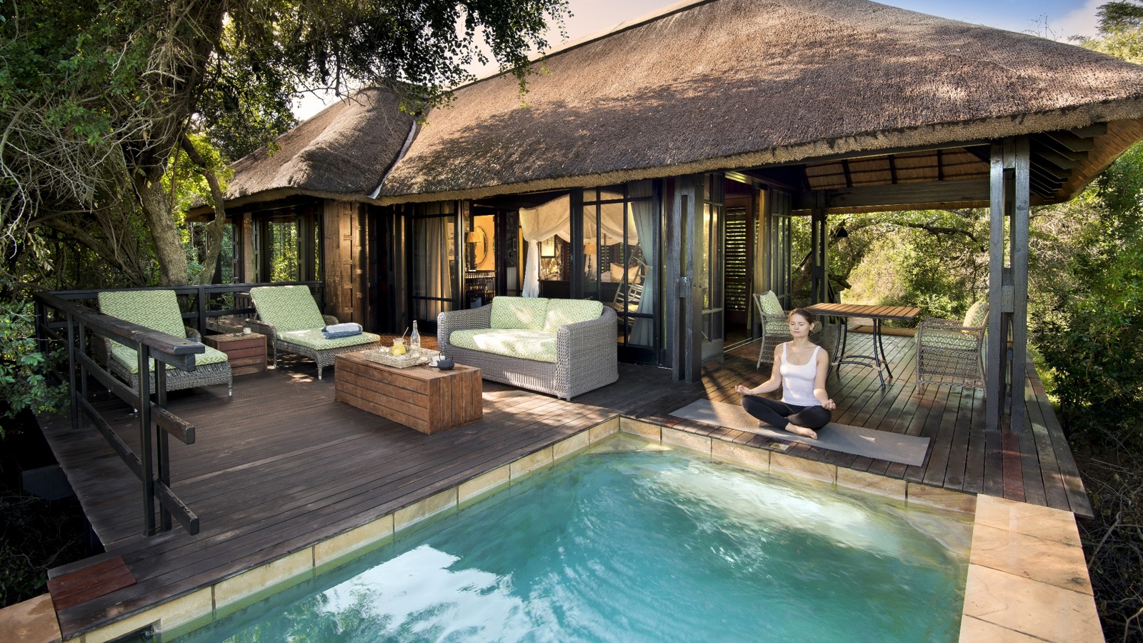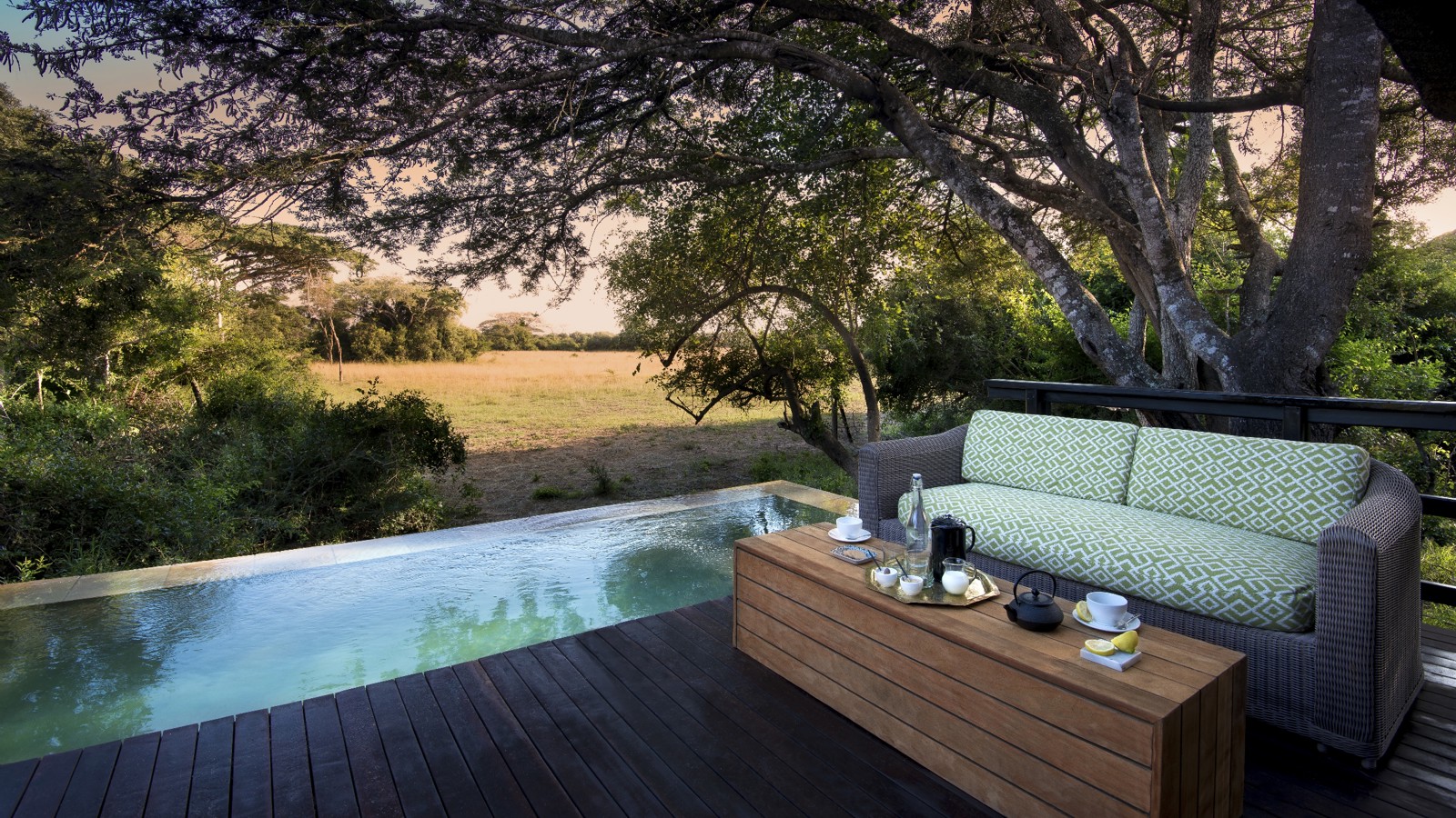 Att bara tillbringa en stund i den rymliga sviten är som att vara på safari. &Beyond Phinda Vlei Lodge är byggt och designat så att varje svit är noggrant positionerad för bästa möjliga vy över vattenhålet och djuren, som kommer dit för att dricka. Ett skådespel som aldrig slutar. Sviterna ståtar med ett stort privat trädäck där du från den sköna sittgruppen, matbordet eller till och med från den stora garderoben har full panoramautsikt över vildmarken. Varva ned i den svala natten vid den varma öppna elden i ditt vardagsrum. Tröttheten efter dagens malariafria safaritur tar snart överhanden och kombinationen med det lena rödvinet gör inte saken bättre. På &Beyond Phinda Vlei Lodge somnar du i en säng som aldrig känts skönare.