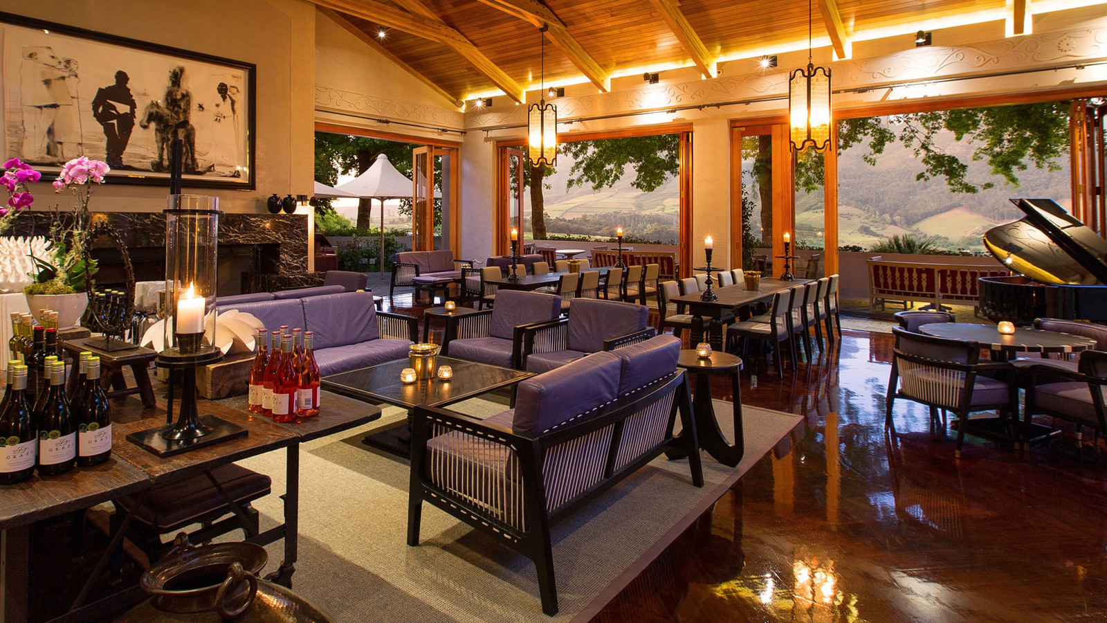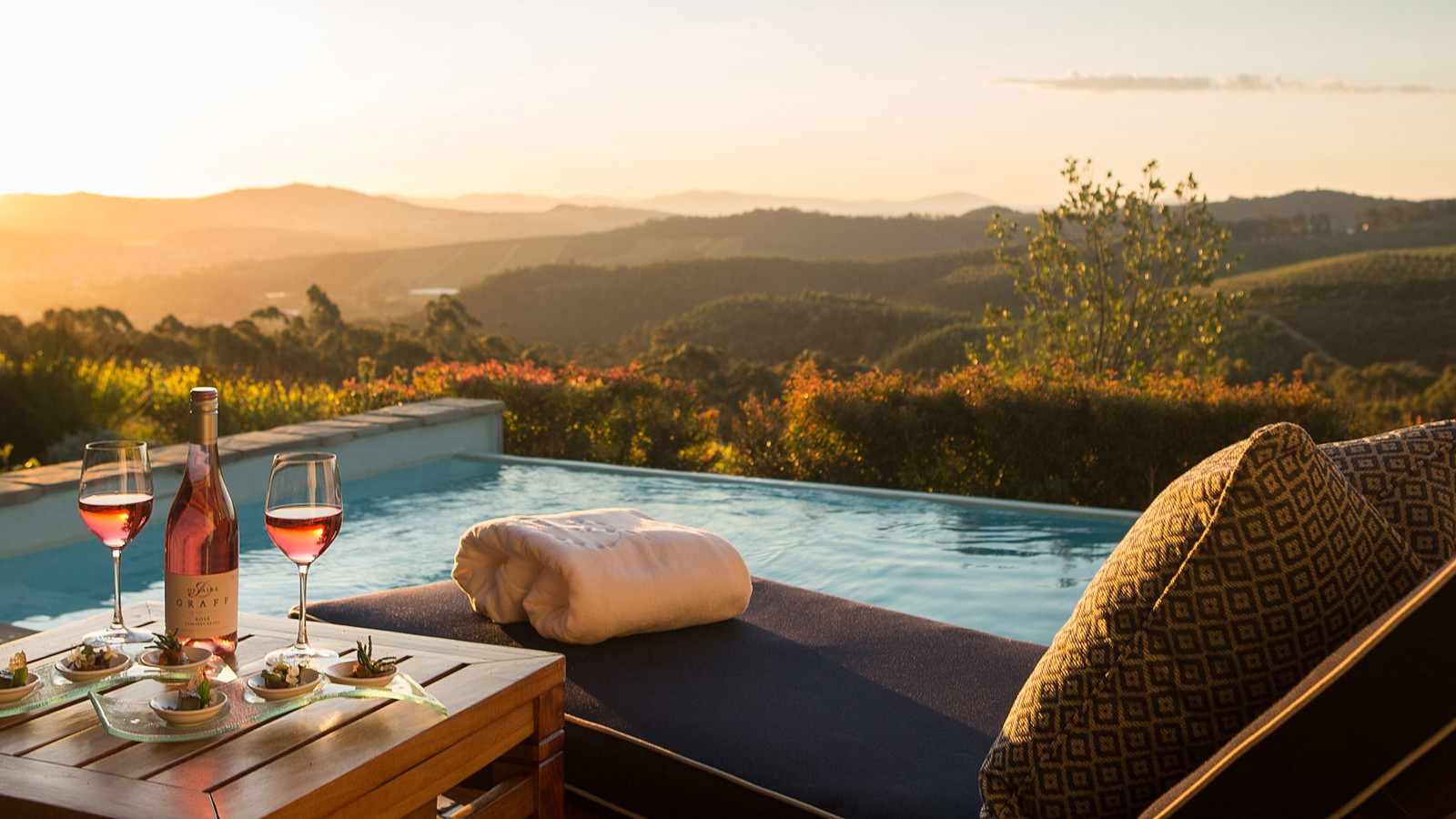 Delaire Graff Estate är diamantkungen Laurence Graffs skötebarn och vision. Stellenbosch är en av världens ledande vindestinationer och ingenstans i den berömda vindalen bor, äter eller dricker man bättre än på Delaire Graff Estate. Delaire är en mycke exklusiv lodge med 17 lyxigt inredda villor med privat pool och fantastisk utsikt över vinodlingarna. Det är helhetsupplevelsen av mat, vin och fantastisk service kryddad med vacker konst som gör Delaire Graff till en upplevelse utöver det vanliga. De två restaurangerna serverar favoriter som ceviche på kob-antilop, vintermelon, ingefära, apelsin och rostade valnötter eller en matigare sadel på springbock med shitake, rödbetor, spätzle, melass och stjärnanis. Vinkännare och sommelierer anordnar både vinprovning och promenader till andra närliggande vingårdar i både Stellenbosch och Franschhoek.