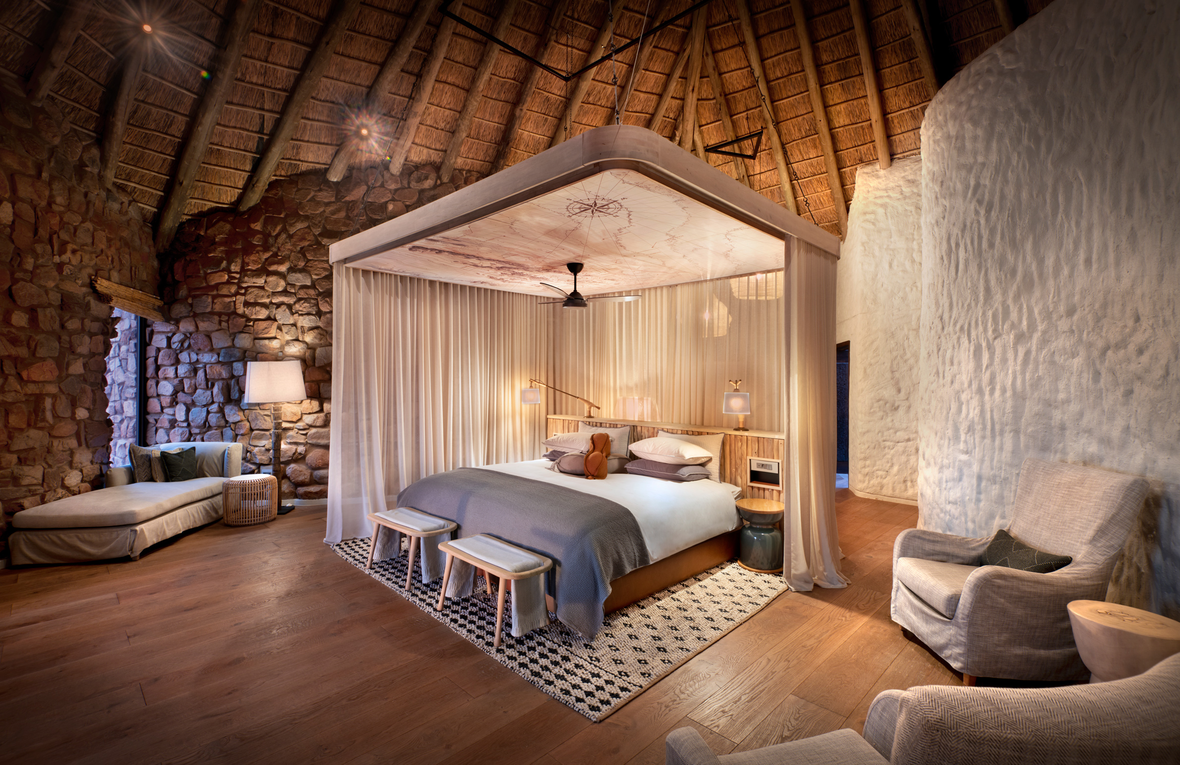 Det är detaljerna och den diskreta lyxen där inget lämnats åt slumpen som gör familjen Oppenheimers camp i det stora privatägda reservatet Tswalu Kalahari helt unikt. Campen består av tre delar; The Motse Camp, Loapi Tented Camp och Tarkuni Homestad. I Motse Camp står åtta stora, privata sviter av sten, röd lera byggt under traditionella halmtak. Här har den världsberömda inredaren Boyd Ferguson blandat afrikanska artefakter, konst och barfotalyx i en Safari Chic-blandning som fått internationella resemagasinet Condé Nast Traveller att sprida superlativ. Sviterna består av rymliga sovrum med öppen spis, privat terrass och fantastiskt badrum både inom- och utomhus. Motses vackra pool har en fantastisk utsikt över savannen och vattenhålet som kallats Afrikas eget Cipriani. Tarkuni Homestead är ägarfamiljens privata hem. Här finns en egen kock och privat safariguide för den totalt skräddarsydda upplevelsen. Fem makalösa sviter med magnifika badrum och pool gör upplevelsen privat, unik och perfekt för familj, goda vänner eller högtidsfirande. Dessutom har Tswalu ett eget sovdäck mitt ute i vildmarken för den ultimata upplevelsen av safari och av Afrika.