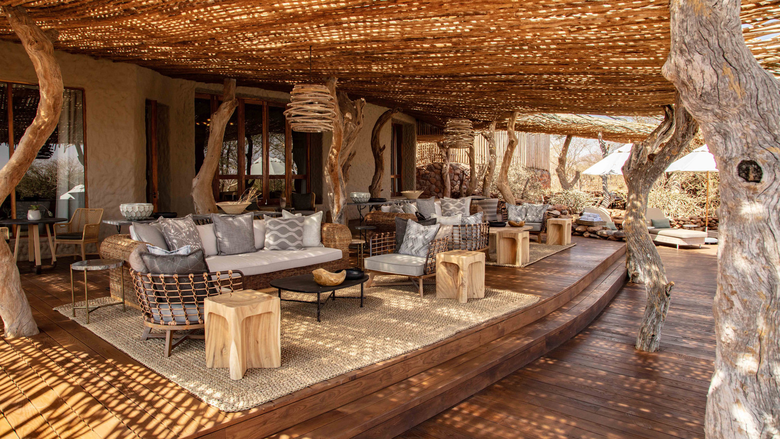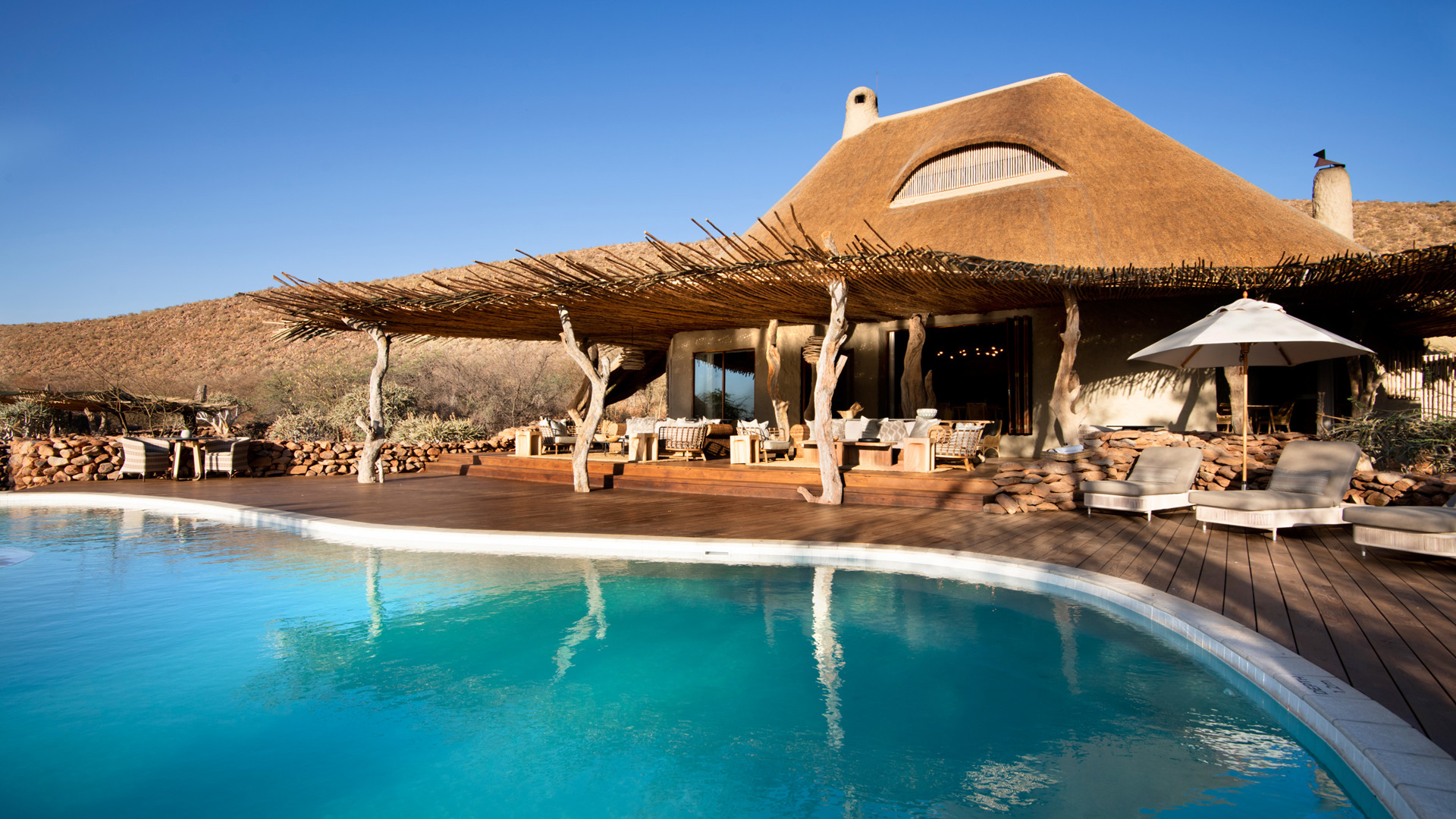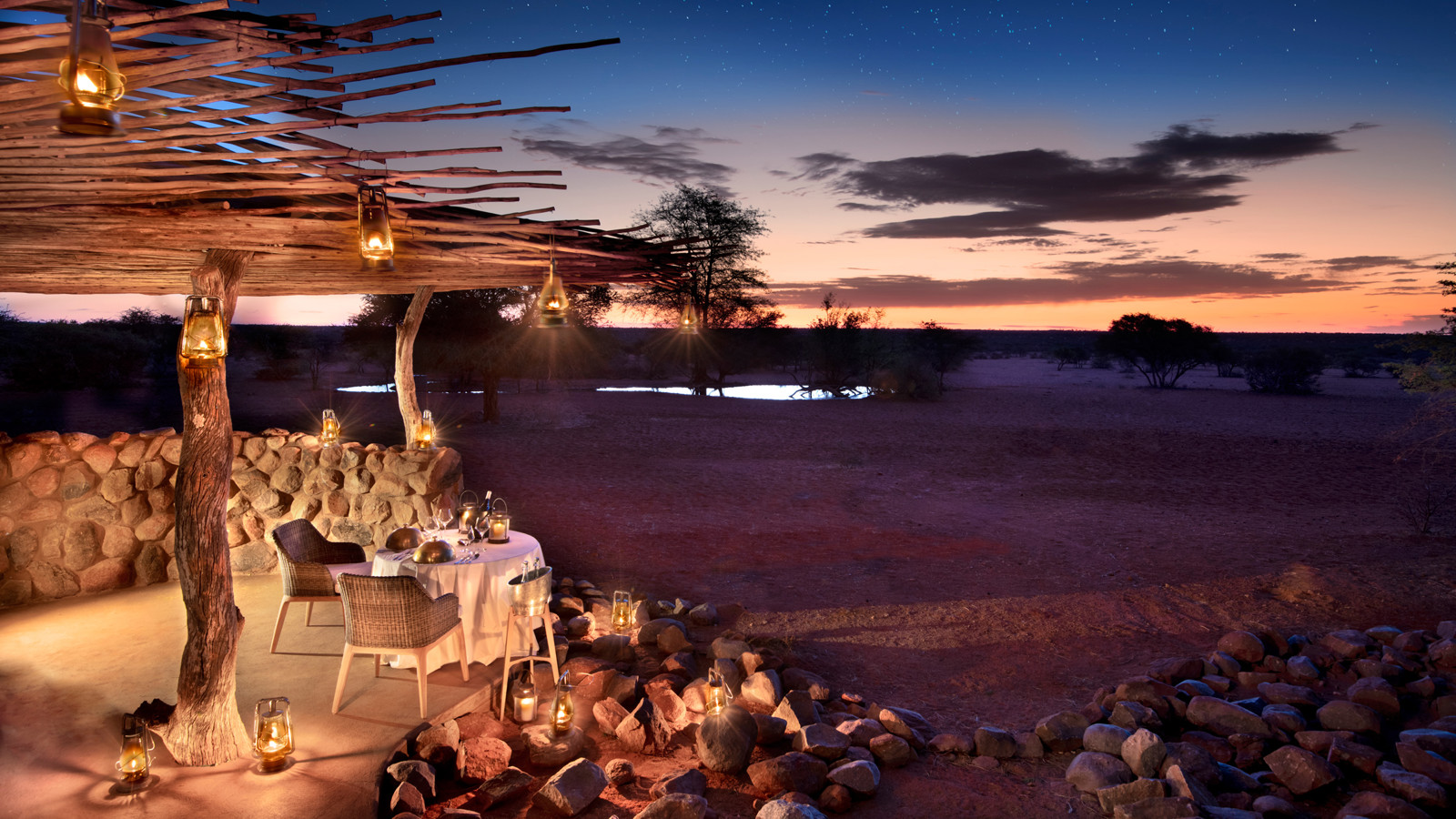 Det är detaljerna och den diskreta lyxen där inget lämnats åt slumpen som gör familjen Oppenheimers camp i det stora privatägda reservatet Tswalu Kalahari helt unikt. Campen består av tre delar; The Motse Camp, Loapi Tented Camp och Tarkuni Homestad. I Motse Camp står åtta stora, privata sviter av sten, röd lera byggt under traditionella halmtak. Här har den världsberömda inredaren Boyd Ferguson blandat afrikanska artefakter, konst och barfotalyx i en Safari Chic-blandning som fått internationella resemagasinet Condé Nast Traveller att sprida superlativ. Sviterna består av rymliga sovrum med öppen spis, privat terrass och fantastiskt badrum både inom- och utomhus. Motses vackra pool har en fantastisk utsikt över savannen och vattenhålet som kallats Afrikas eget Cipriani. Tarkuni Homestead är ägarfamiljens privata hem. Här finns en egen kock och privat safariguide för den totalt skräddarsydda upplevelsen. Fem makalösa sviter med magnifika badrum och pool gör upplevelsen privat, unik och perfekt för familj, goda vänner eller högtidsfirande. Dessutom har Tswalu ett eget sovdäck mitt ute i vildmarken för den ultimata upplevelsen av safari och av Afrika.