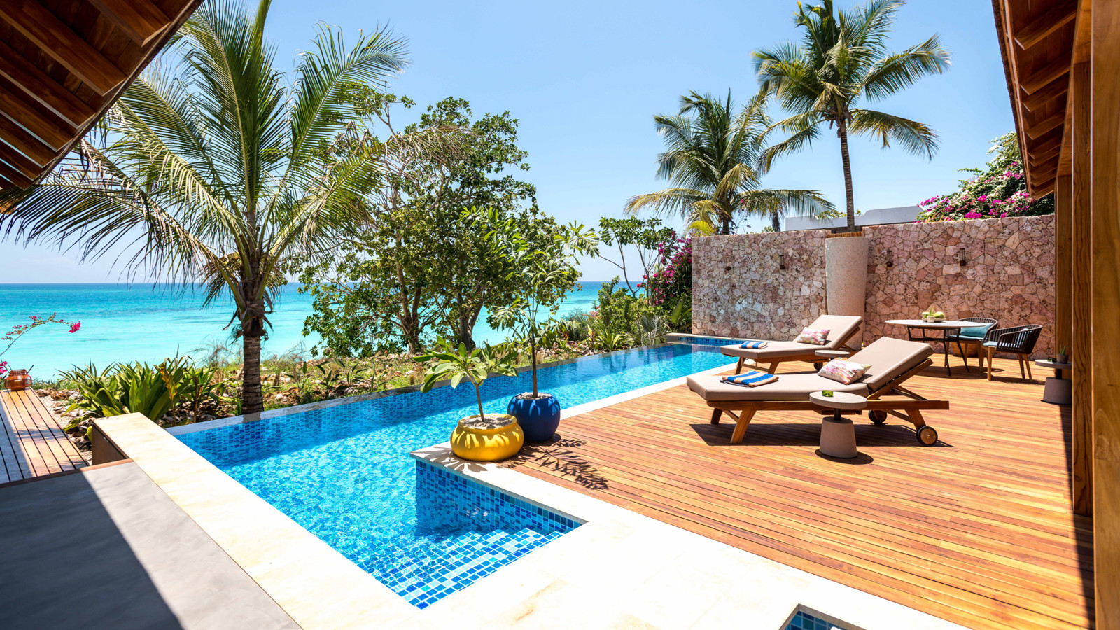 Bortom asfalterade vägar och härliga sandstränder finner du en ljummen vindpust från Indiska oceanen. Du möts av ljudet från gungande hammockar samt dofter från en närliggande kryddträdgård, skimrande ljuslyktor som kantar grusbelagda stigar gömda bland djungelgrönska och höga palmer. Du är framme på ekolyxresorten Zuri Zanzibar för att njuta av fantastisk semester bemärkelse. Här bor du antingen i bungalow, svit eller villa. Familjer eller större resesällskap huserar extra bekvämt i en strandvilla med tre sovrum, vardagsrum, kök, matsal samt därtill en uteplats med pool och jacuzzi. Det gör inte ont att sjunka ner i en loungestol med ett glas i handen varje kväll och se solen doppa sig god natt i havet. En turkos lagun skyddar den privata stranden från tidvattnet så inget kan störa dina bad. Lägg dig till rätta med en bra bok mellan doppen och utöva konsten att göra ingenting. När magen kurrar finns tre restauranger att välja mellan. Du kan välja på maträtter från det afrikanska, indiska, arabiska eller europeiska köket? Skulle du mot förmodan tröttna på strandlivet, kan du gymma utomhus med tropiska växter som publik, delta i en yogaklass, gå en matlagningskurs eller lyxa till dig bland behandlingarna i hotellets spa.