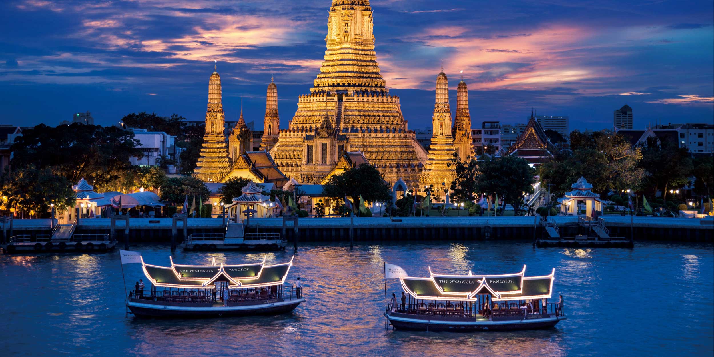 The Peninsula Bangkok är ett klassikt lyxhotell vid Chao Phraya floden. Med sina 39 våningar erbjuds en panoramautsikt över floden och Bangkoks fantastiska skyline. Rummen är lyxiga och poolen är en arkitektonisk sevärdhet i sig! Hotellet har flera restauranger, t.ex. Jester, som är utsedd till Bangkoks bästa restaurang samt en italiensk och kinesisk restaurang. Det finns även en egen flotta av Rolls Royce som sätter guldkant på din transfer till hotellet. Skäm bort dig med en behandling på hotellets Spa eller gör ett besök på gymmet med den fantastiska utsikten. Hotellet har egen båtservice över floden till Orientals brygga eller till skytrain stationen