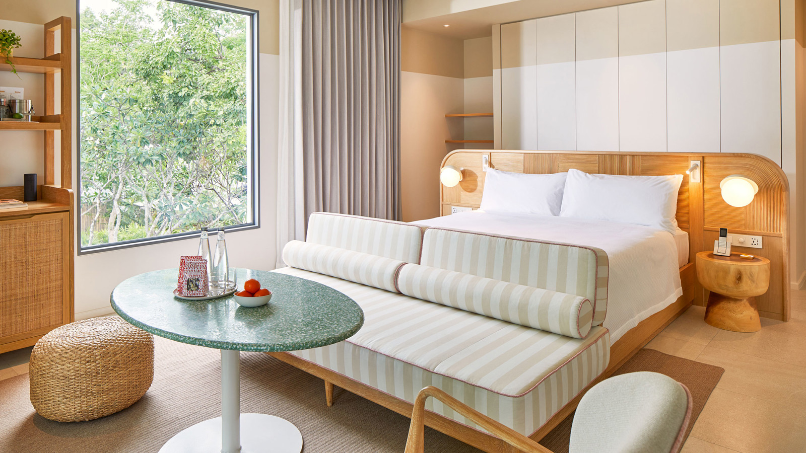 ”Hollywoodglammiga” The Standard Hua Hin har ett idealiskt läge vid semesterortens bästa strand och med gångavstånd till stadens restauranger, men ärligt talat är det här ett hotell du knappt vill lämna. Den stora poolen och angränsande Lido Bar är omgiven av godisrandiga parasoller och mysiga sittplatser. Det närliggande vattensportcentret lånar ut surfbrädor och paddleboards och det finns ett rymligt gym om du vill träna. Spaet erbjuder behandlingar som sträcker sig från lerscrub till lugnande ljudhealing. Varenda möbel inom hela resorten är fotogenisk, men till skillnad från hotell som är helt designade för Instagram, har The Standard Hua Hin, både atmosfär och personlighet. The Standard Hua Hin är också det enda hotellet i Thailand som tog sig in på Conde Nast Travellers Hot list 2022. Du väljer mellan två hippa, fräscha och bekväma boendealternativ. De flesta rummen och sviterna ligger i de två 60-tals motellsinpirerade flyglarna – en flört till den überhippa kedjans historia då första The Standard i Hollywood, tog över ett gammalt motell, år 1999. Inredningen är retroinspirerad med runda hörn, rottingmöbler och textilier i solskensgult. Varje rum kommer med en ombonad balkong eller terass, en kraftfull Bluetooth-högtalare, Matisseinspirerade konstverk och en Chemexkaffebryggare med bönor som rostats exklusivt för hotellet av ett kafferosteri i norra Thailand. I de rymliga villorna kan du lätt tillbringa hela semestern. Stranden ligger dock bara ett par barfotasteg bort. Här har du din din egna privata pool att svalka dig i och sköna loungemöbler att slå dig ner i efter besök på stranden. Uteplatsen vetter antingen mot havet eller skärmas helt av från insyn med bambustaket. Ett stort takfönster i badrummet bäddar för badkarsbad i månskenet. Vi ger fem plus för den glittriga diskokulan i badrummet.