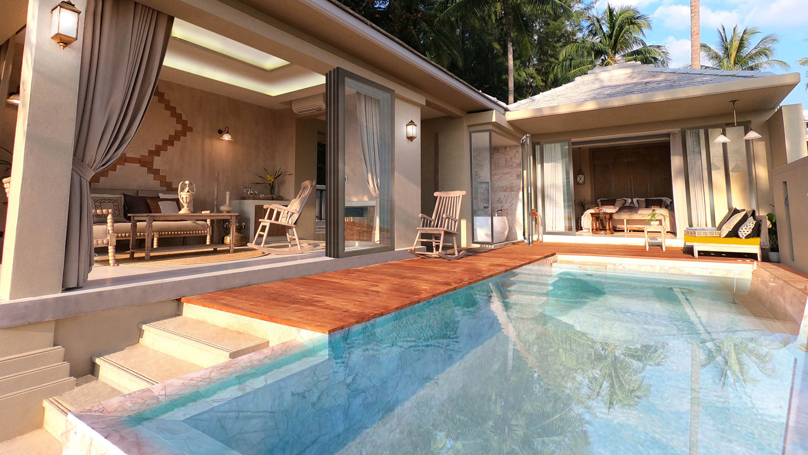 Med en naturlig lagun på ena sidan och Khuk Khaks andlöst vackra solnedgångsstrand på den andra, ligger Devasom Khao Lak Beach Resort and Villas. Det tre hektar stora hotellområdet huserar endast 69 rum, sviter och villor. Omgivningen är minutiöst välskötta, prunkande tropiska trädgårdar och kokospalmslundar. Här behöver du inte trängas med någon. Utöver den vidunderligt vackra omgivningen, finns en infinitypool med utsikt mot stranden, två restauranger (båda omnämnda i Guide Michelin), som serverar utsökt thai- och västerländsk mat, en strandrestaurang med bar, samt spa och gym. Du har med andra ord allt du behöver inom räckhåll, men vill du se dig om kan du till exempel utforska vattenvägarna och mangroveskogen i kajak. Hotellets pampiga inredning är inspirerad av den 1400 år gamla asiatiska kulturen längs Silkesvägen och man har verkligen lyckats förena det lokala, kulturella arvet med upplevelsen av att vara på en lyxresort. De sex rumskategorierna sträcker sig från klassiska Deluxerum med utsikt mot Andamanhavet till rymliga paradissviter med egen privat pool. För dig som firar något extra eller av någon annan anledning vill gå ”all in” finns två luxuösa 430 kvadratmeter stora takvåningar med utsikt över stranden och havet. Varje Penthouse stoltserar med två sovrum, ett separat vardagsrum, matsal, bar, en 17 meter lång privat pool, trädgård och butler. Det är bara att flytta in!