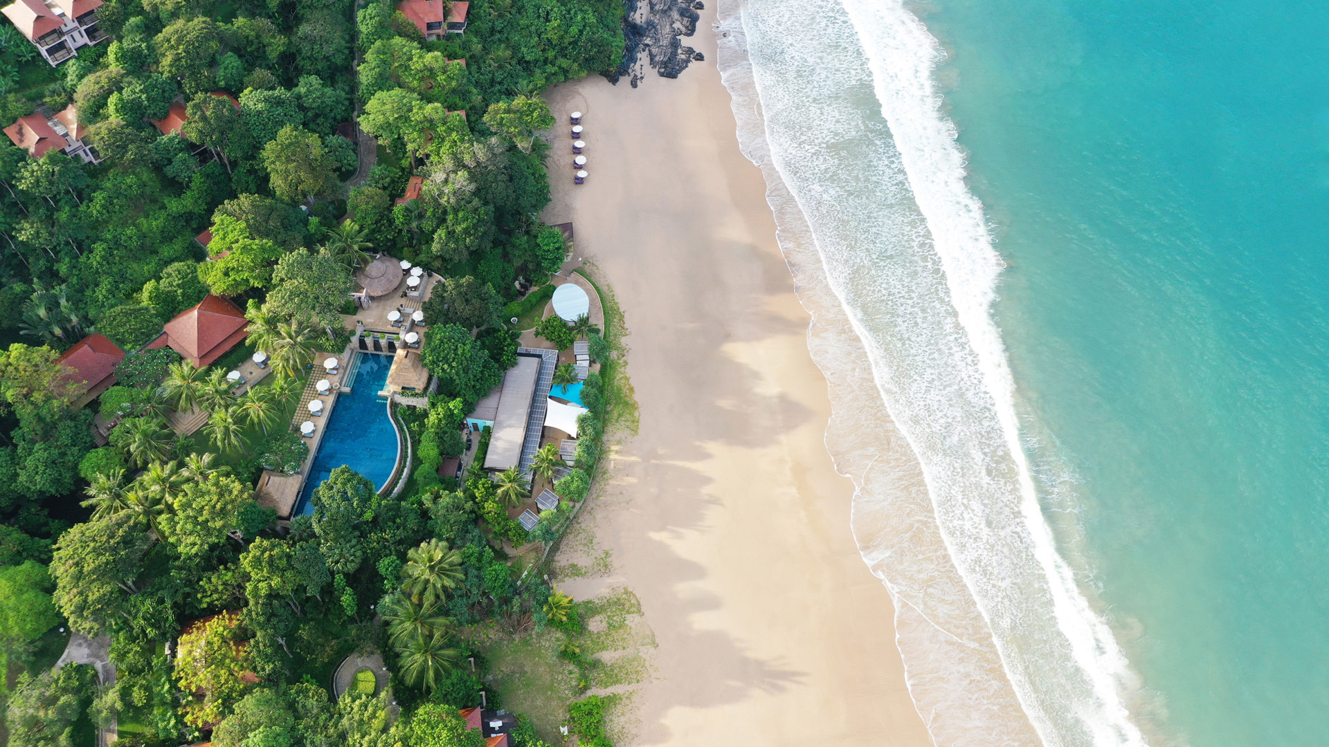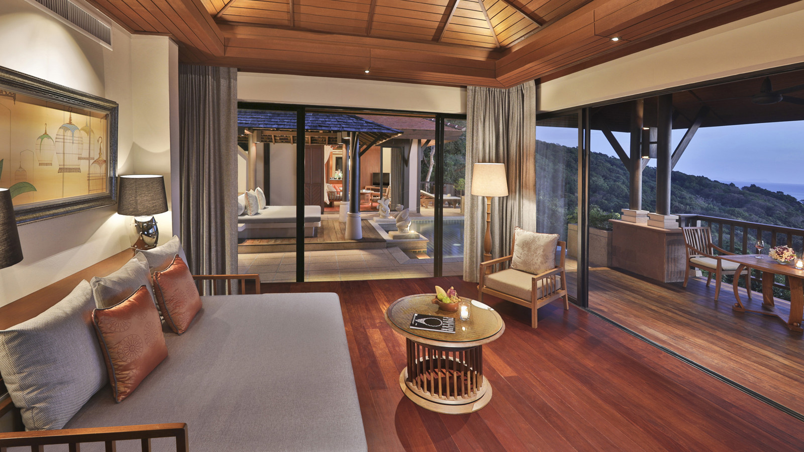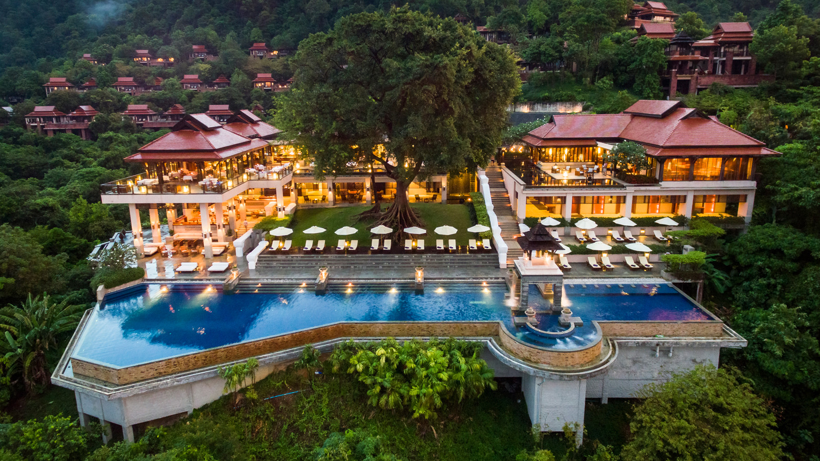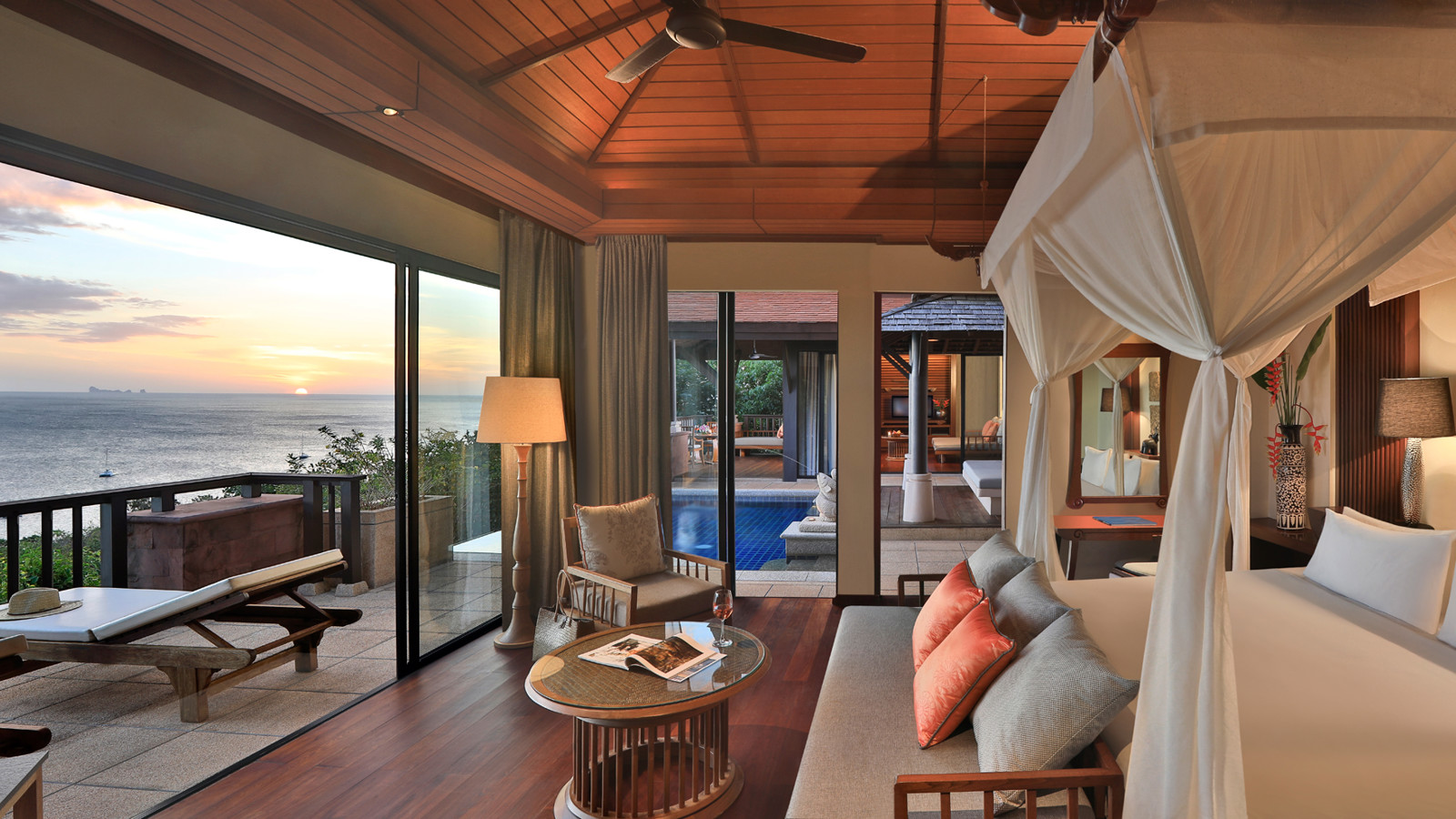 Lugn, harmoni och exklusiv avskildhet är Pimalai Resorts and Spas mantra. Här bor du på sluttningen med frodig regnskog i ryggen och Andamanhavet framför nosen invid en 900 meter lång paradisstrand på Koh Lantas sydspets. Du når resorten efter en timmes båtfärd från Krabi och känner axlarna sjunka en decimeter redan efter ett par minuter. Mest exklusivt bor du i en av de rymliga och elegant designade villorna inredda i modern thailändsk stil. 60 till 80 meter ovanför havet med magnifik utsikt, makaker som dina närmaste grannar och privat pool samt endast ett krabbskutt från havet. Den största villan, som enligt ryktet är god nog åt Bill Gates, är på imponerande 650 kvadratmeter och kommer med tre sovrum, en stor privat infinitypool, utomhusterrass samt en avskild stig som leder rakt ner till stranden nedanför. Bland aktiviteterna hittar du segling, paddling, cykling, djungeltrekking och tennis. Det stora här är annars snorklingen och dykningen eftersom du bor nära orörda korallrev med ett marint liv i världsklass. Räkna med att möta allt från sjöhästar till djävulsrockor. För dig som vill prioritera att ta det lugnt finns en myriad av ljuvliga behandlingar att välja mellan på hotellets prisbelönta spa. Från massage till facials. Samtliga avnjuts utomhus djupt inne i grönskan för att förstärka känslan av att vara ett med naturen. Till middag bjuds det givetvis på gourmetmat – grillat från havet och traditionell thai medan solen färgar himlen rosa.