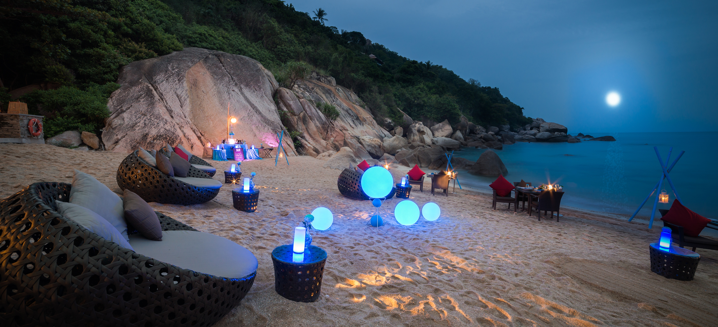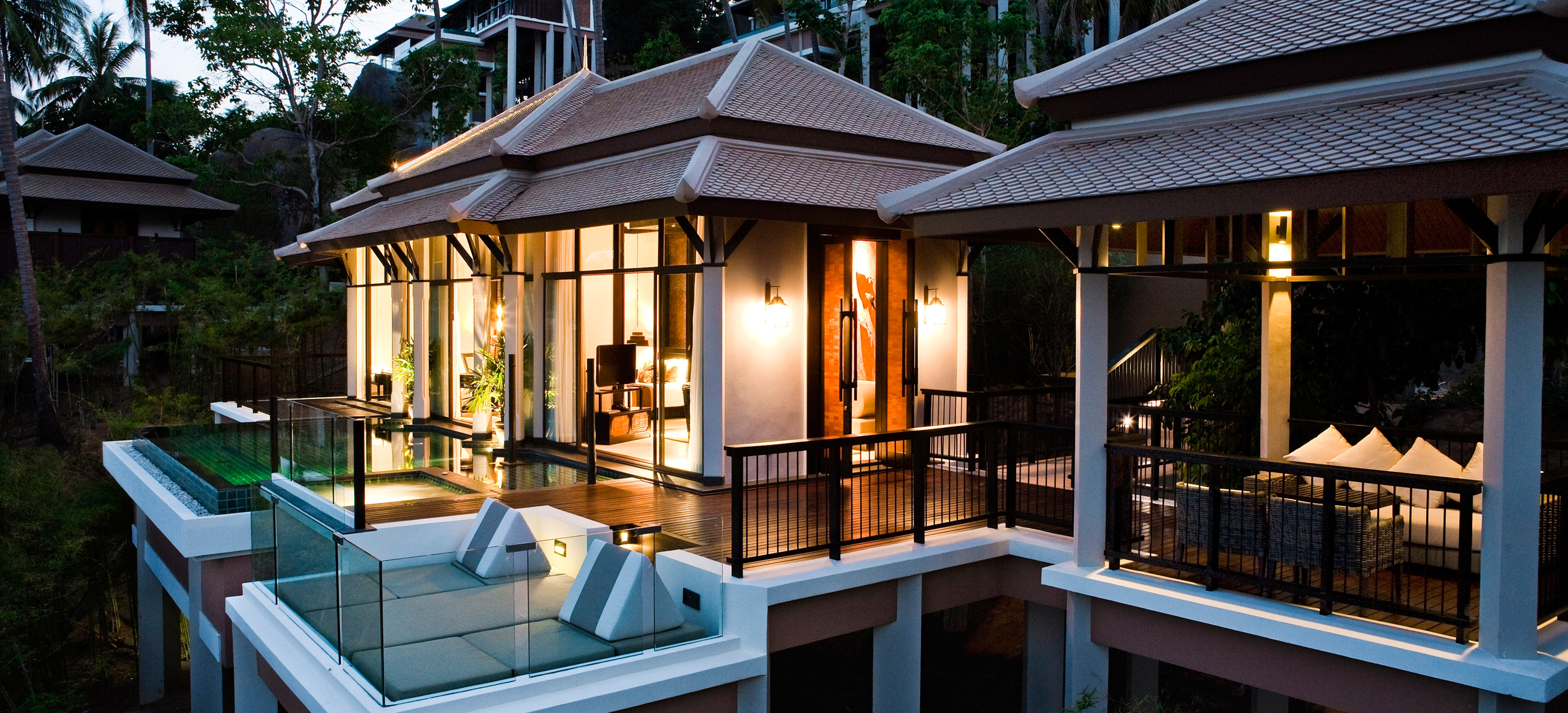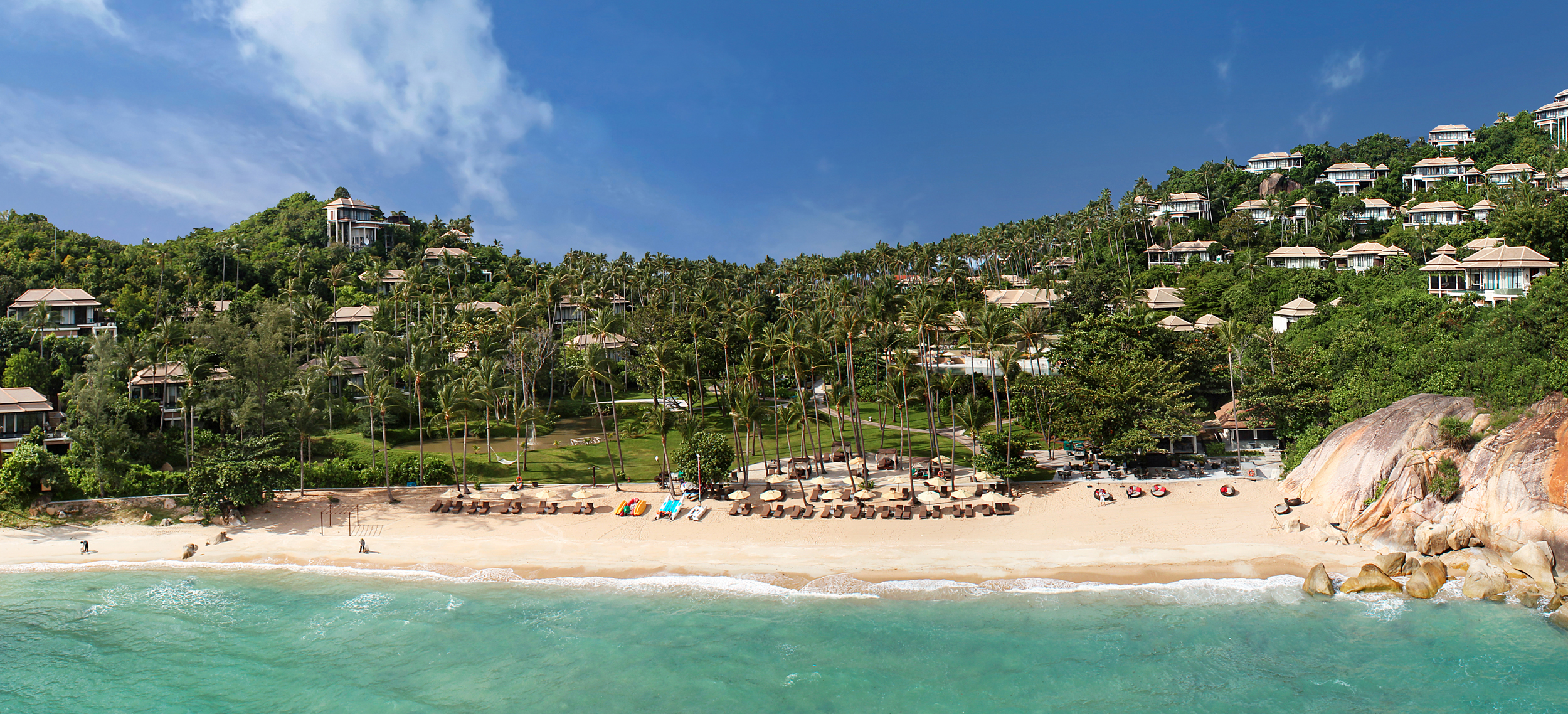 Banyan Tree Samui har ett perfekt läge. Resortens alla villor står på höga pålar längs en bergsluttning i sagolika Lamai Bay och ramar in den safirskimrande viken som en lyxig amfiteater designad för resenärer med krav. Villorna är privata himmelriken i den lummiga regnskogen, där ljus och rymd får flöda fritt genom stora rum som övergår i eleganta salas och privata pooler - bland de största på Koh Samui. Inredningen är smakfull och modern med traditionella detaljer som rotting, bambu och siden i ljusa färger. The Rainforest kombinerar det bästa av europiska spa-traditioner med essensen av asiatisk filosofi - bland annat med privata yoga klasser på en magisk plattform belägen högt ovan resorten. Banyan Tree Samuis restauranger återspeglar öns mångfald och middagarna serveras i romantiska restauranger på klippavsatser, längs stranden, eller helt privat i den egna villan.