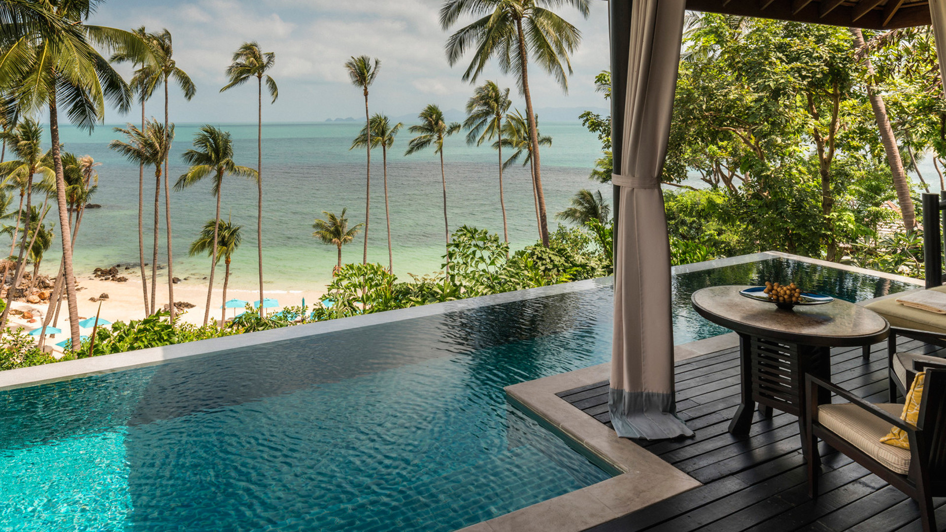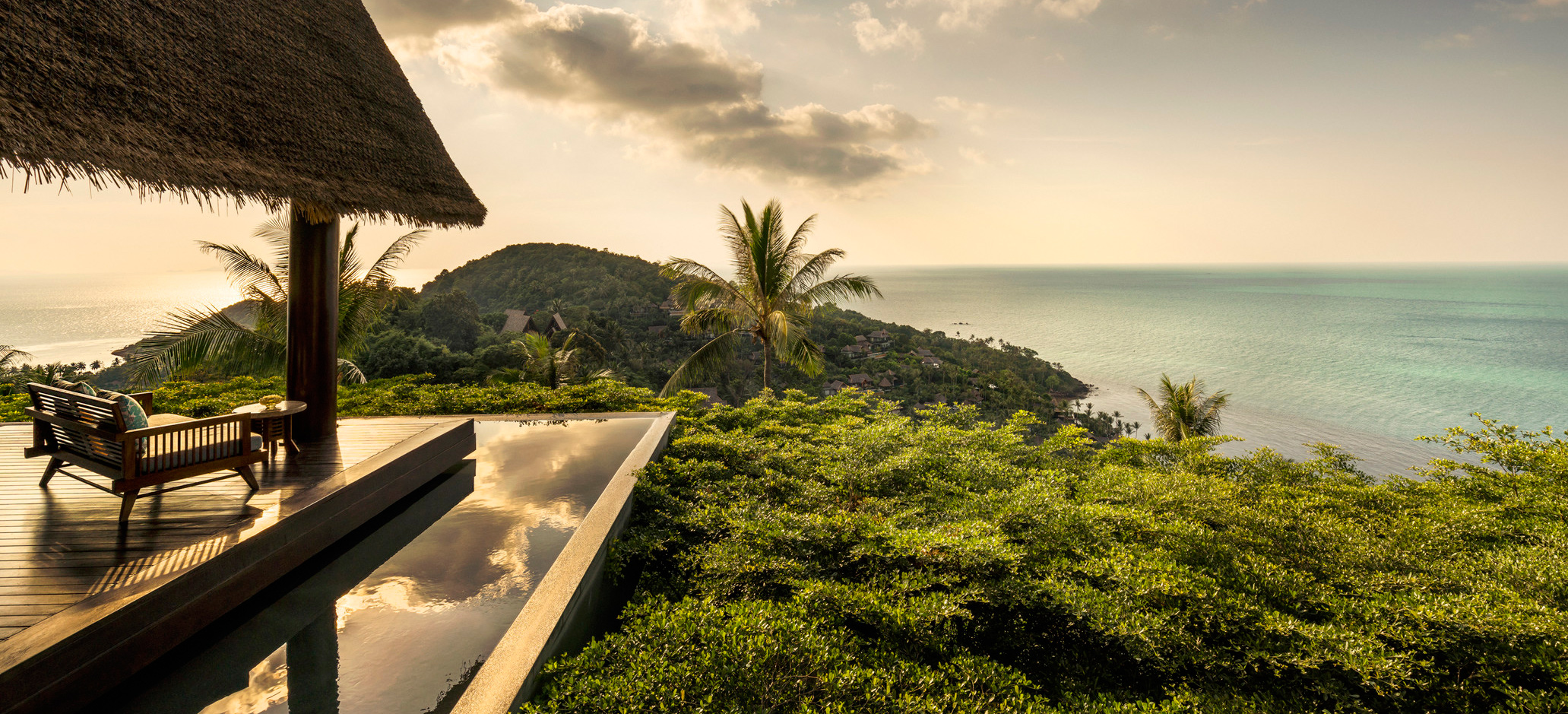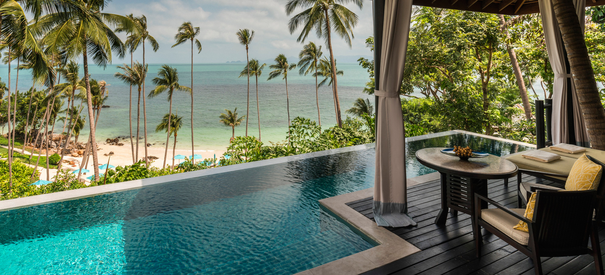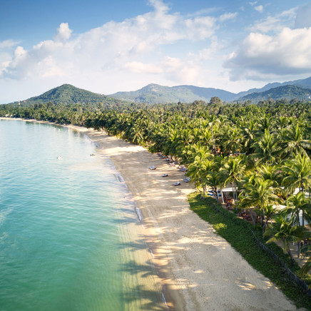 Fantastiska Four Seasons är drömmen om Thailand. På en privat och undangömd sluttning intill Laem Yai Bay ligger de sagolika villorna och residensen inbäddade i tropisk grönska, som om de vore en antik amfiteater runt den havsblå Siambukten. På klassiskt Four Seasons maner erbjuds endast det bästa när det gäller boende, service och elegans. Alla enrumsvillor eller större residens har en fantastisk havsutsikt och ligger antingen direkt vid den pudervita sandstranden eller bland vajande palmkronor och kokoslundar i sluttningen. Den öppna och luftiga inredningen går i tenn, beige och silver med varma detaljer i guld, gult och brons. Vare boende har en egen infinitypool där de större residensen erbjuder större pooldäck under skuggan från baldakiner av halm. Four Seasons spa erbjuder klassiska behandlingar och hundraårig healing, både i spats vackra salas, och direkt på stranden eller vid den stora poolen där den diskreta personalen hela tiden serverar isvatten och kylda handdukar. Restaurang fokuserar på lokala råvaror och färska fångster ur havet, och är en utsökt del av den dröm om Thailand som Four Seasons Koh Samui förverkligar.