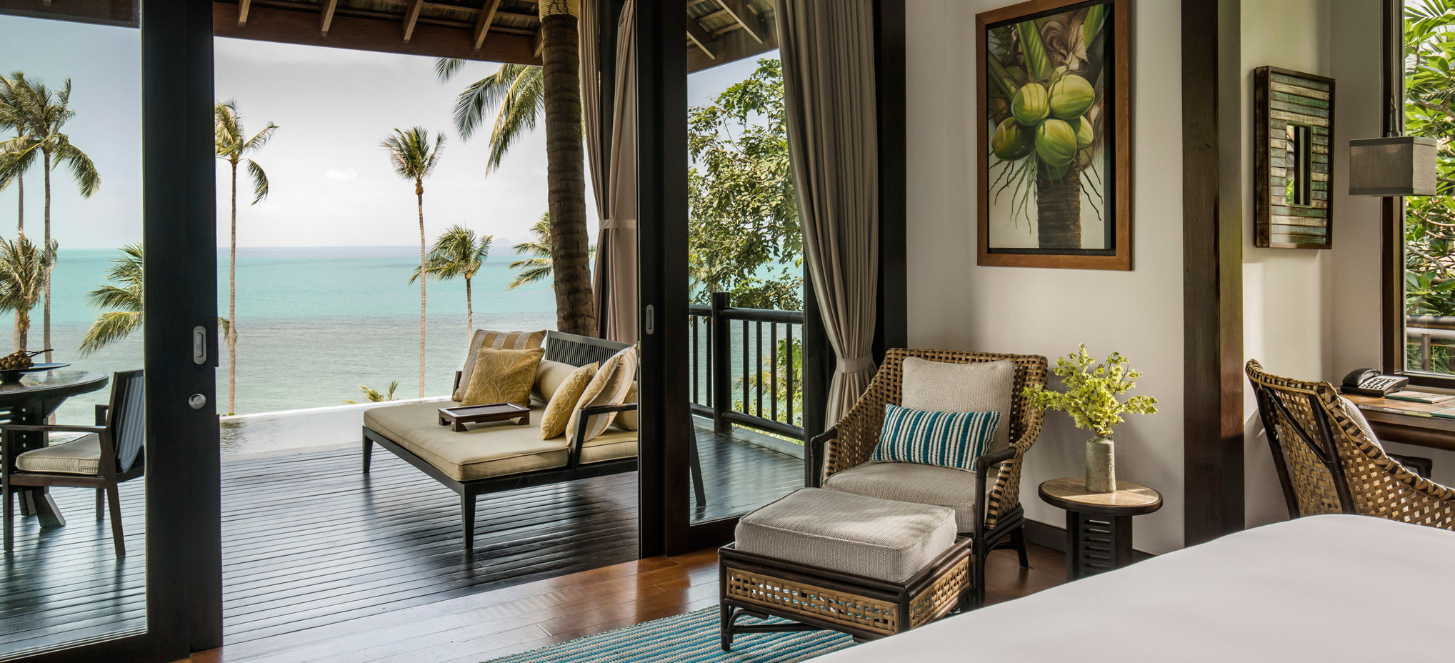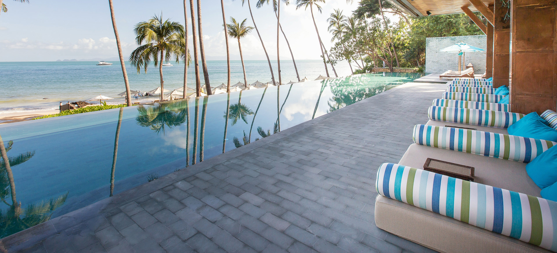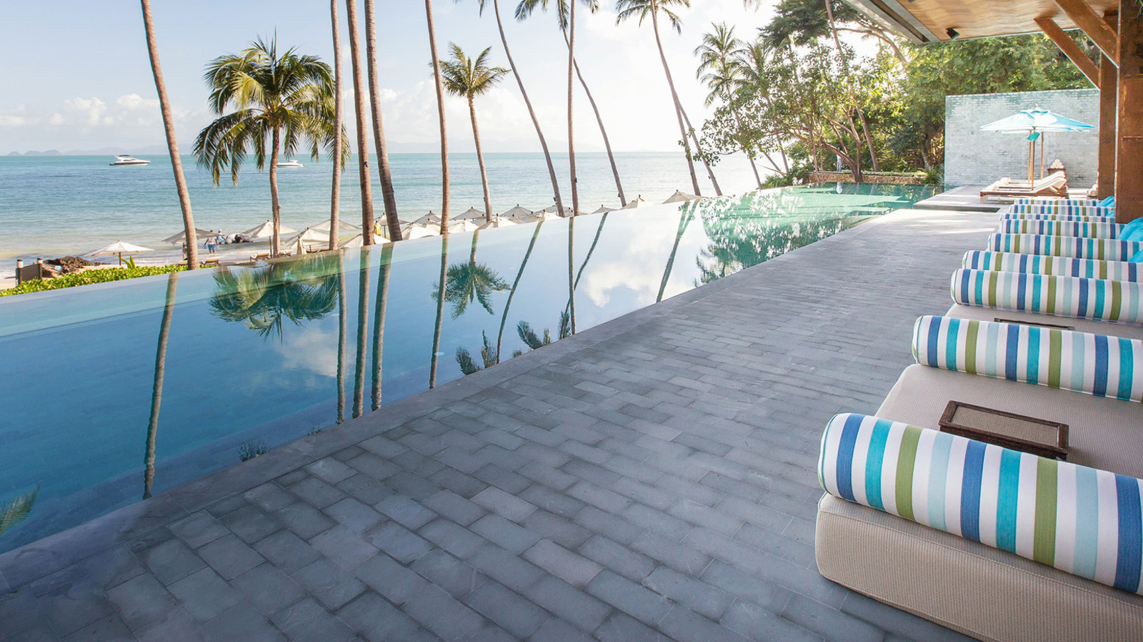 Fantastiska Four Seasons är drömmen om Thailand. På en privat och undangömd sluttning intill Laem Yai Bay ligger de sagolika villorna och residensen inbäddade i tropisk grönska, som om de vore en antik amfiteater runt den havsblå Siambukten. På klassiskt Four Seasons maner erbjuds endast det bästa när det gäller boende, service och elegans. Alla enrumsvillor eller större residens har en fantastisk havsutsikt och ligger antingen direkt vid den pudervita sandstranden eller bland vajande palmkronor och kokoslundar i sluttningen. Den öppna och luftiga inredningen går i tenn, beige och silver med varma detaljer i guld, gult och brons. Vare boende har en egen infinitypool där de större residensen erbjuder större pooldäck under skuggan från baldakiner av halm. Four Seasons spa erbjuder klassiska behandlingar och hundraårig healing, både i spats vackra salas, och direkt på stranden eller vid den stora poolen där den diskreta personalen hela tiden serverar isvatten och kylda handdukar. Restaurang fokuserar på lokala råvaror och färska fångster ur havet, och är en utsökt del av den dröm om Thailand som Four Seasons Koh Samui förverkligar.