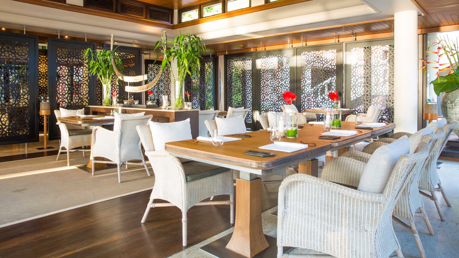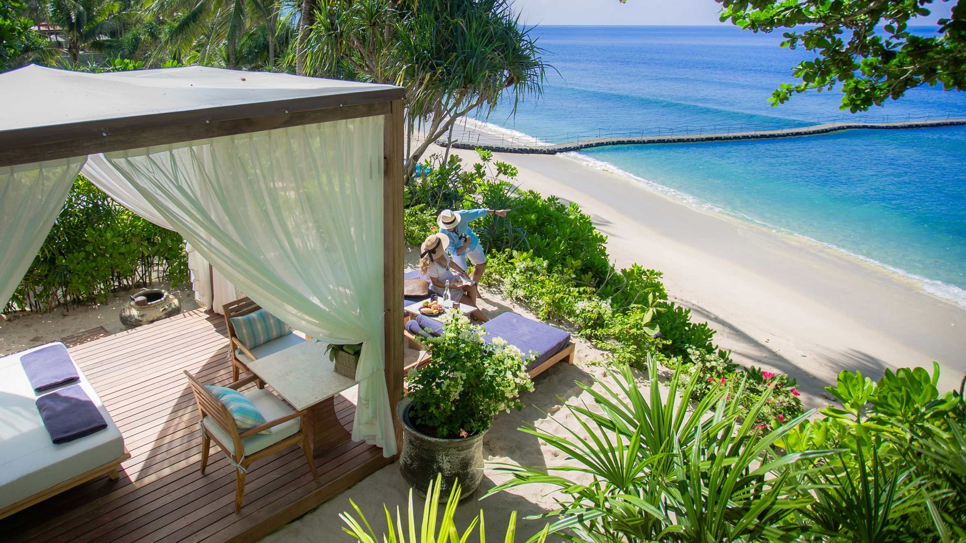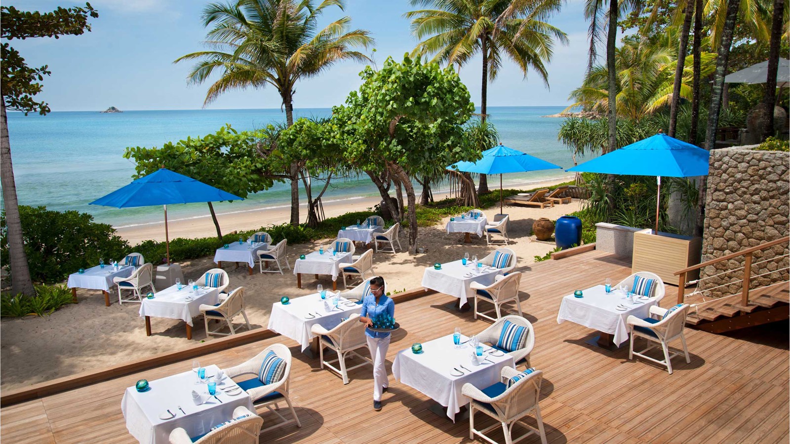 Belägen i en av de lugnare delarna av Phuket, vid öns eleganta nordvästkust, ligger Trisara. Hotellet ligger inbäddat i en tropisk regnskog intill en privat vik. Här garanteras privatliv till det yttersta och en jetset-nivå av lyx. På sanskrit betyder Trisara ”trädgården i tredje himlen”. Om det verkligen finns tre himlar skulle en vistelse här få dig att undra varför någon någonsin skulle välja de andra två. Här hittar du 39 poolvillor, sviter och rum – alla med fantastisk utsikt över Andamansjön. Poolvillorna är utrustade med egen infinitypool, soldäck i teak, utomhusduschar och enorma sovrum. Och om du mot förmodan skulle tröttna på din egen pool finns också en 45 meter lång pool längs stranden, där du också hittar ett vattensportcenter och aktiviteter som bootcamp, powerpromenader och yoga i soluppgången. Jara Spa är himmelskt, med sex lugna behandlingsrum och terapeuter utbildade vid Wat Po-templet i Bangkok. Förvänta dig ett frukostbord i överflöd med tropiska frukter, hemmagjord yoghurt, färska juicer, ostar, kallskuret och meny med mascarponepannkakor och kokosnötvåfflor. Trisara har två restauranger: Seafood, som serverar thairätter som långsamt kokta glasnudlar, tigerräkor och vegetariska currysoppor och Phukets första och enda Michelinkrog – Pru, med europeisk-asiatisk fusion på menyn, med råvaror hämtade från Trisaras organiska trädgård.