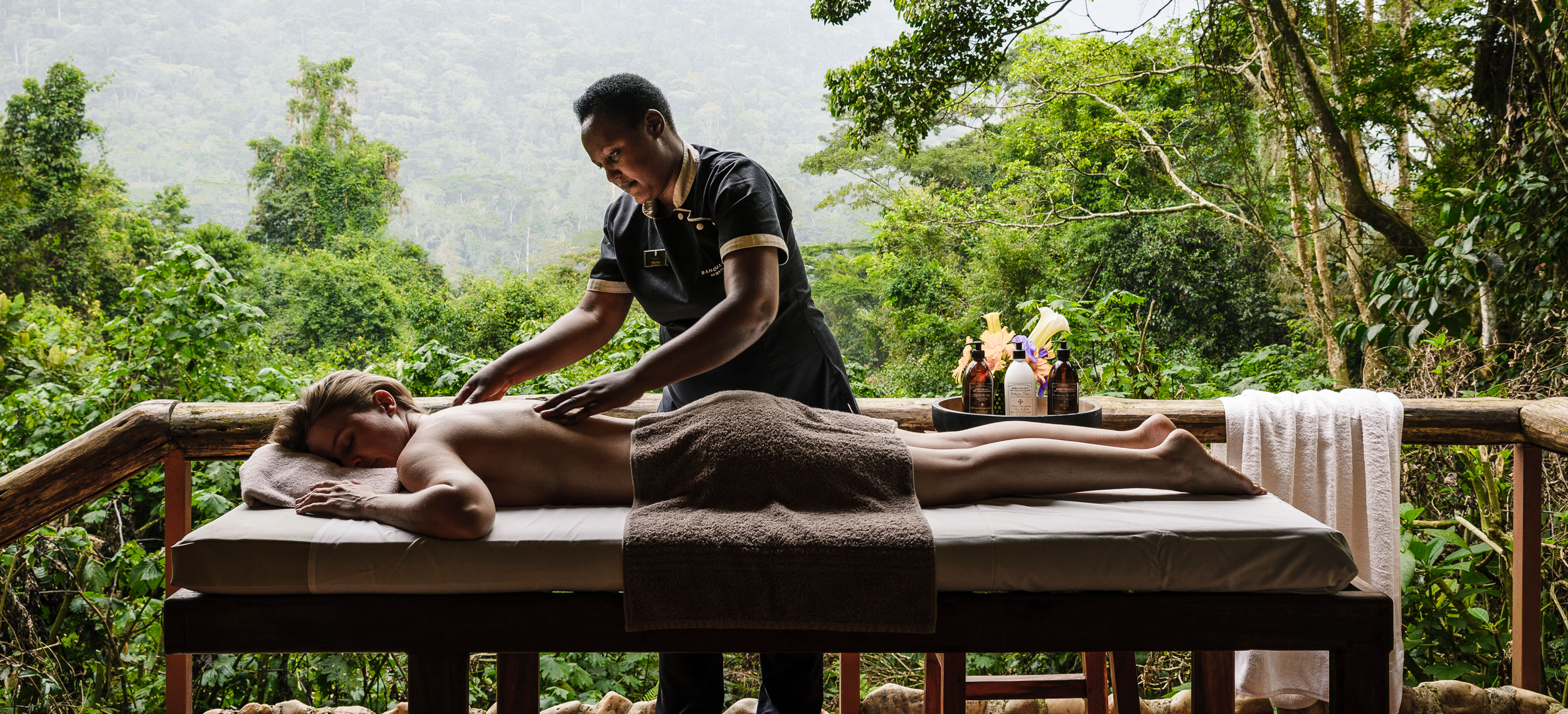 Sanctuary Gorilla Forest Camp ligger på en platå i en privat koncession i nationalparken Bwindi. Här kombineras naturens rena och orörda skönhet med diskret lyx, service och stil i åtta kanvasklädda tält dit till och med en gorillafamilj kommer förbi på besök flera gånger i månaden. Utflykterna med klassisk gorillaspårning ligger runt kanvasknuten och som besökare får du chansen att beundra Virungas vulkaner, avgrundsdjupa dalar, vattenfall och sjöar, samt ett eller annat kulturbesök i områdets lokala Batwabyar. Vart och ett av de åtta bekväma tälten är placerade för att erbjuda största integritet och intimitet. Väggens väv är robust, trägolven vackra och från tälten ser du rakt in under djungelns gröna baldakin. Sängarna med sina handsnidade sänggavlar är draperade i naturligt tonade linnen, och badrummen har såväl dusch som badkar – självklart med utsikt. Den centrala loungen är rymligt bekväm och dess bar välsorterad med en lägereld som värmer om kvällarna. Måltiderna serveras i matsalen med utsikt över djungeln, eller mer intimt direkt i djungeln och under stjärnorna på en upphöjd plattform.