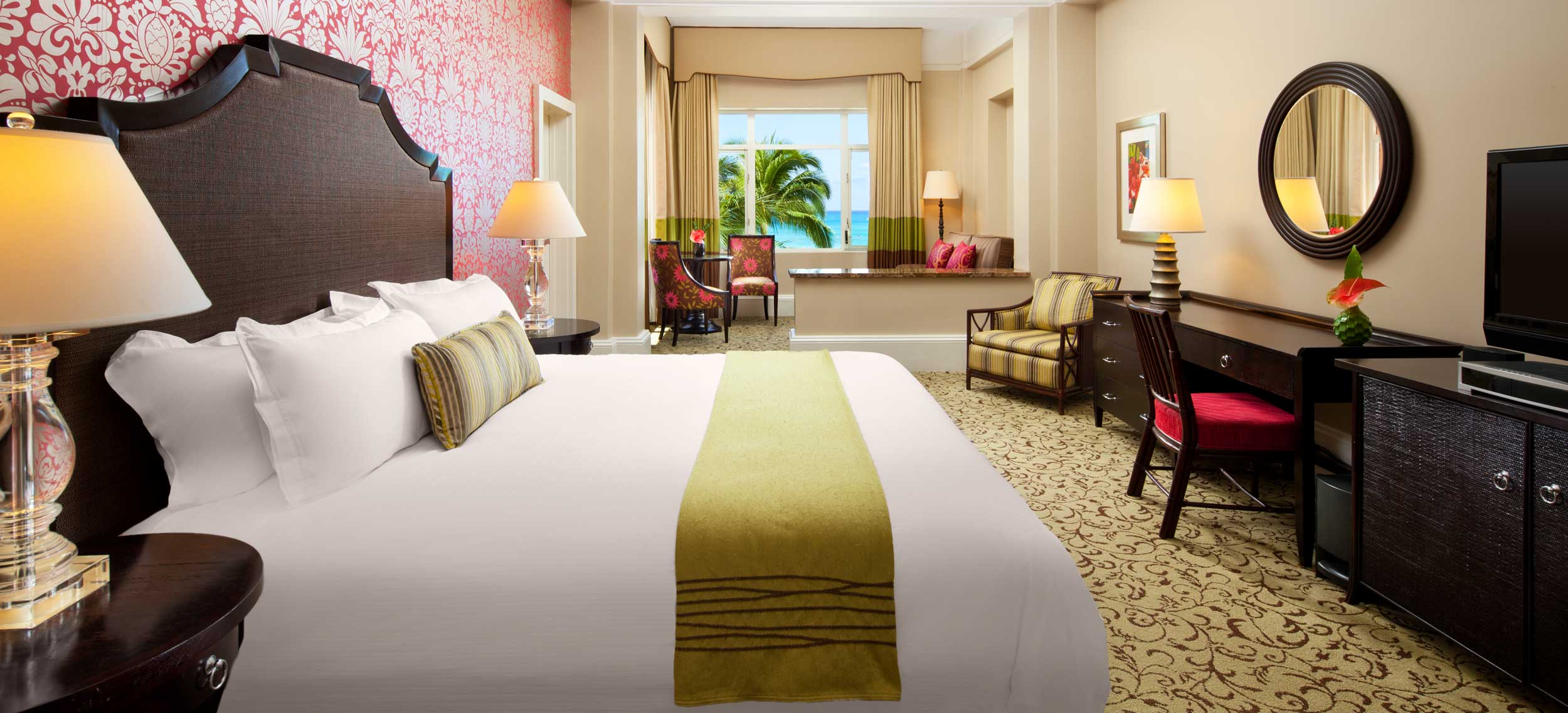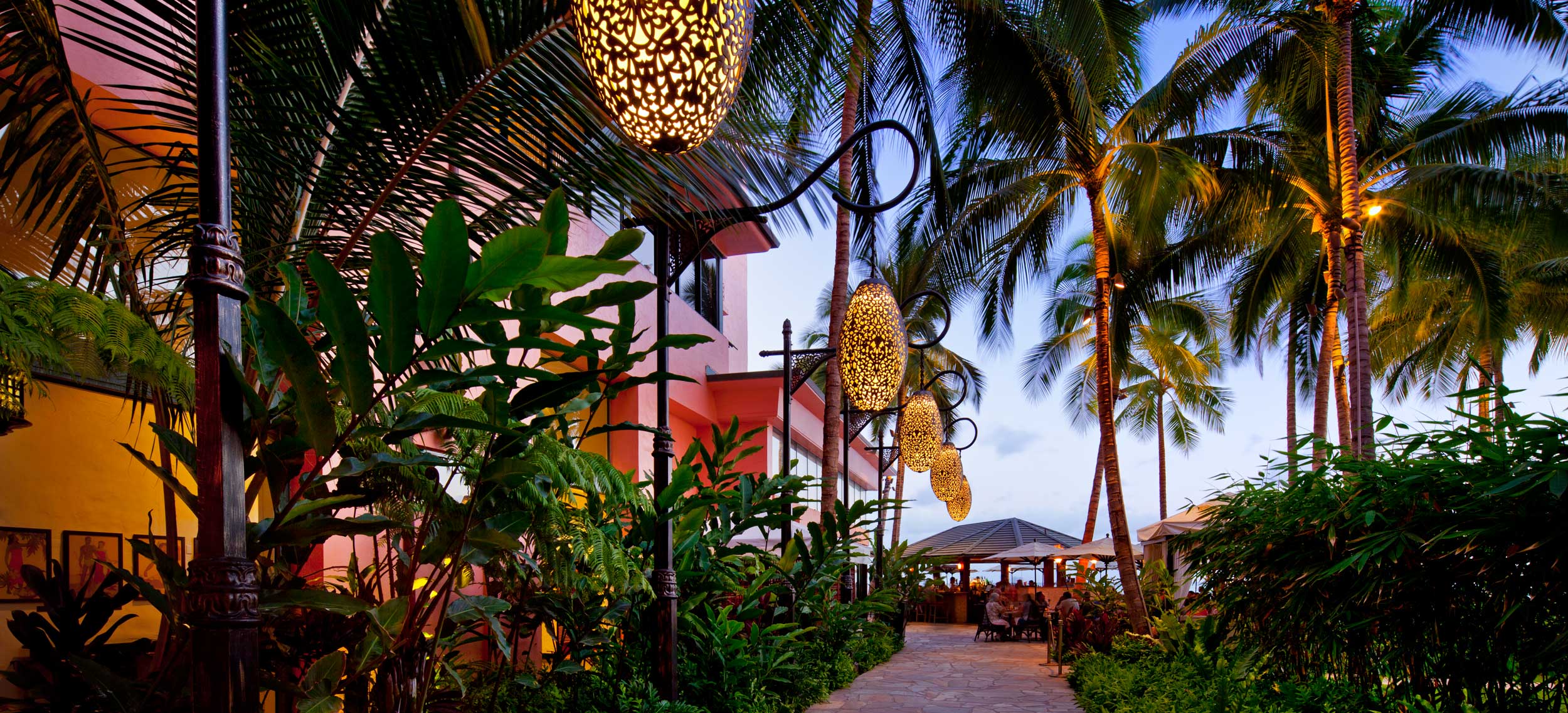 The Royal Hawaiian är en intuition och spelar den viktigaste rollen i Hawaiis hotellhistoria. ”The Pink Palace of the Pacific” invigdes redan 1927 och under snart 90 år har det varit Waikiki Beachs självklara medelpunkt och här blev drinken Mai Tai världsberömd sedan bland andra Elvis Presley läppjat frekvent på läckerheten i filmen ”Blue Hawaii”. Den moriska arkitekturen med både kupoler och klocktorn är inspirerad av stumfilmsstjärnan Rudolph Valentinos arabiska Hollywoodfilmer. Rum och sviter går i rosa eller ljusblå toner med vackra tapeter och tyger, gärna med palmbrokad. Boendet sker i den gamla hotellbyggnaden direkt på stranden eller i den nyare delen Mailani Tower med härligt vida vyer över stranden och Diamond Head. Hotellets restaurang Azure är ansedd som Hawaiis skaldjursparadis med nyskapande och innovativa rätter. Abhasa Spa ligger på topplistan över USAs mest exklusiva span och har en egen trädgård där du blir bortskämd. Läget på restaurang gör att The Royal Hawaiian varje måndag har Waikikis enda Dinner-Luau show direkt på stranden. Detta var en gång den hawaiianska kungafamiljens fest- och dansplats.