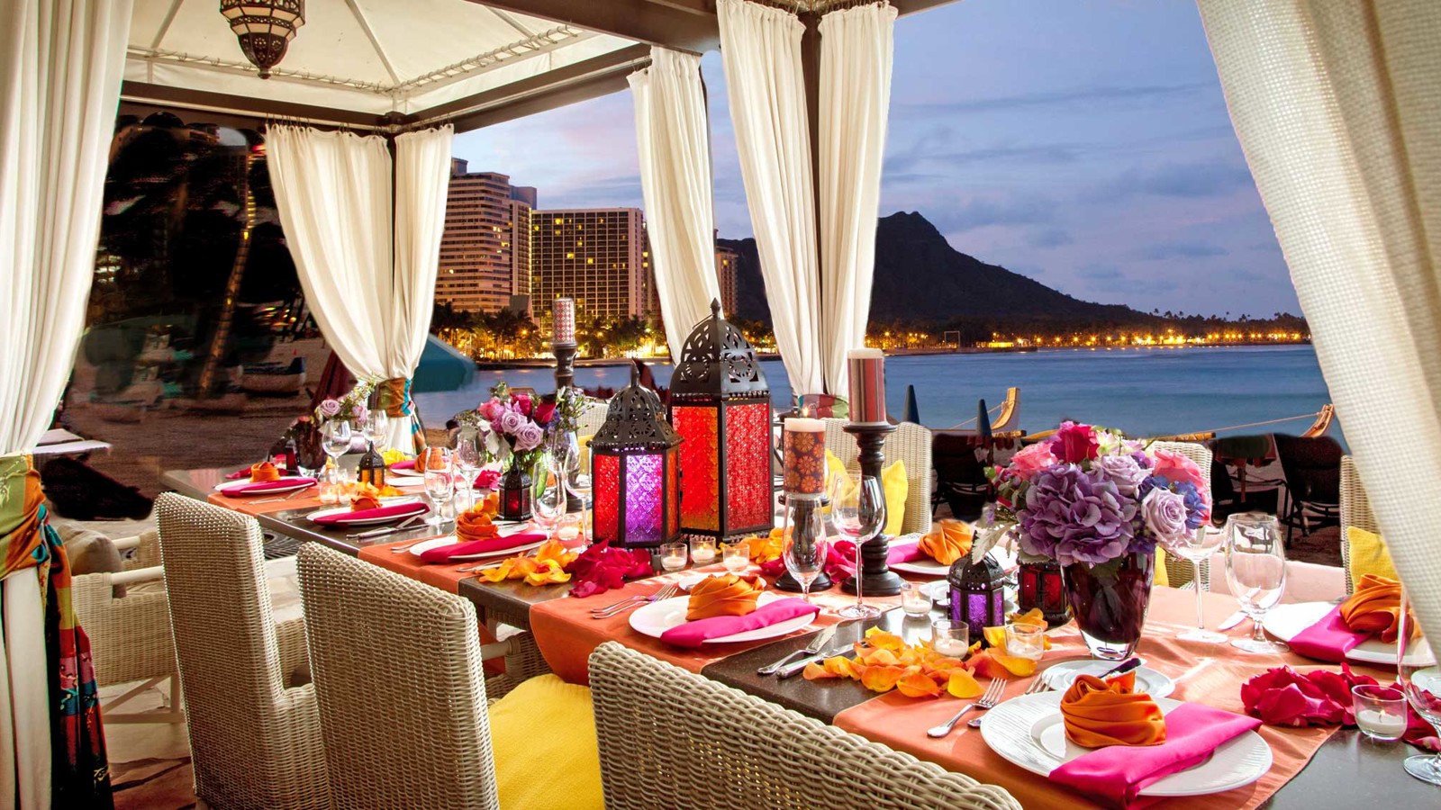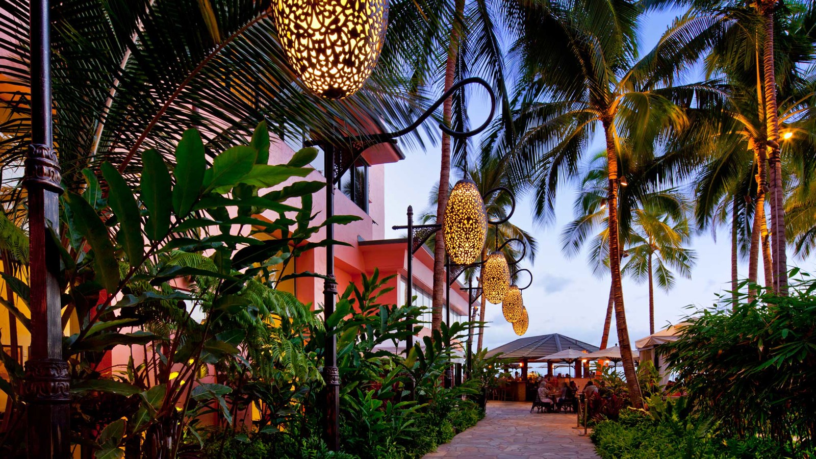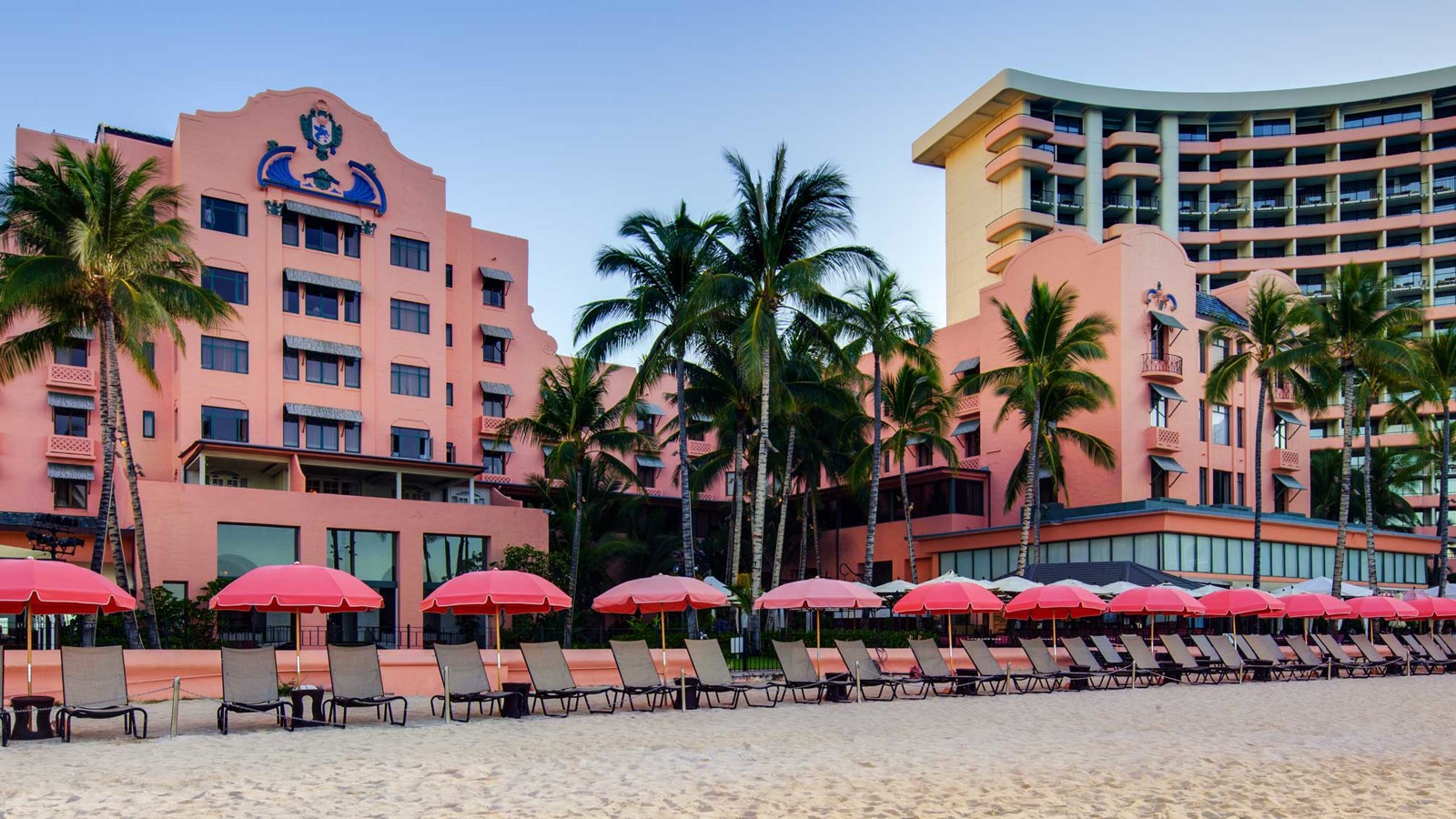 The Royal Hawaiian är en intuition och spelar den viktigaste rollen i Hawaiis hotellhistoria. ”The Pink Palace of the Pacific” invigdes redan 1927 och under snart 90 år har det varit Waikiki Beachs självklara medelpunkt och här blev drinken Mai Tai världsberömd sedan bland andra Elvis Presley läppjat frekvent på läckerheten i filmen ”Blue Hawaii”. Den moriska arkitekturen med både kupoler och klocktorn är inspirerad av stumfilmsstjärnan Rudolph Valentinos arabiska Hollywoodfilmer. Rum och sviter går i rosa eller ljusblå toner med vackra tapeter och tyger, gärna med palmbrokad. Boendet sker i den gamla hotellbyggnaden direkt på stranden eller i den nyare delen Mailani Tower med härligt vida vyer över stranden och Diamond Head. Hotellets restaurang Azure är ansedd som Hawaiis skaldjursparadis med nyskapande och innovativa rätter. Abhasa Spa ligger på topplistan över USAs mest exklusiva span och har en egen trädgård där du blir bortskämd. Läget på restaurang gör att The Royal Hawaiian varje måndag har Waikikis enda Dinner-Luau show direkt på stranden. Detta var en gång den hawaiianska kungafamiljens fest- och dansplats.