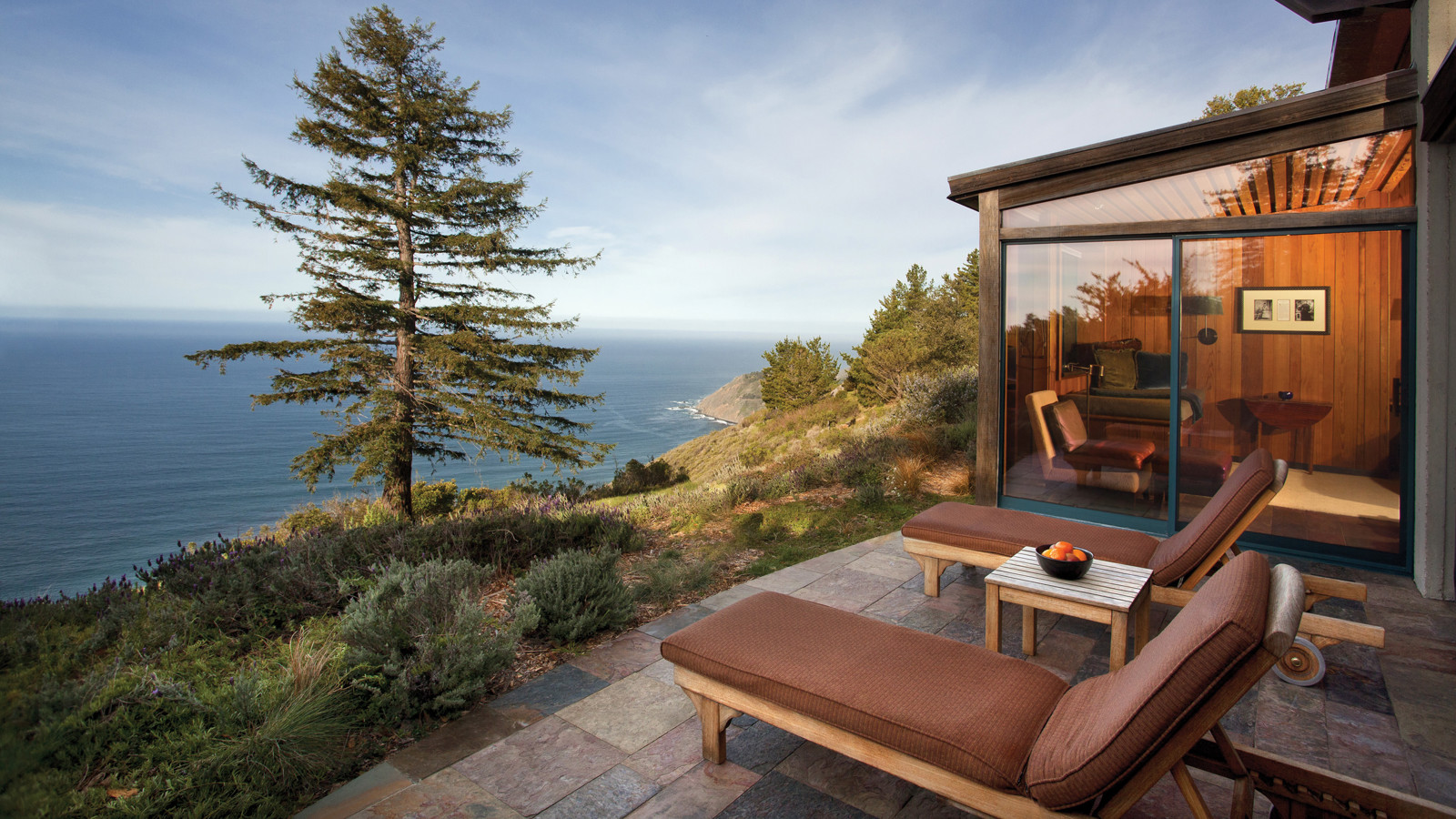 Glamouröst, magnifikt, unikt. Fler ord än så behövs inte för att beskriva detta mycket populära hotell. Ryktet säger att många filmstjärnor älskar att bo här som t ex Anne Hathaway och Drew Barrymore. De olika husen ligger utspridda 360 meter över Stilla Havet och det ser nästan ut som en näve grus som kastats upp på klipporna. Inåt land reser sig de vackra och dramatiska Santa Lucia-bergen. Hit kommer de som vill uppleva romantik, fly stressen och koppla ifrån – rummen är helt fria från både tv och väckarklockor. Endast 39 rum och en privat villa finns till förfogande – alla i högsta privata premiumklass. Boka gärna ett lyxigt tree house, tre meter över marken. Ett takfönster över sängen möjliggör att du kan sova under stjärnorna, utan att tumma på komforten. Hotellet är känt för sin enorma konstsamling. Skulpturer, fotografier, målningar och fina smycken samsas i trädgården och inomhus. Restaurangen Sierra Mar anses vara den allra bästa i Big Sur. Post Ranch Inn erbjuder gratis yoga och meditation och en av de mest unika upplevelserna är en guidad shamansession. Detta är ett andligt äventyr som är utformat för att förbättra ditt fysiska och mentala välbefinnande. Mer traditionella spa-goers kan välja ansiktsbehandlingar eller massage. Som kronan på verket och för att fullända den kaliforniska upplevelsen kan den som vill låna en av hotellets Lexusbilar – helt utan kostnad – och kryssa ner på Pacific Coast Highway.