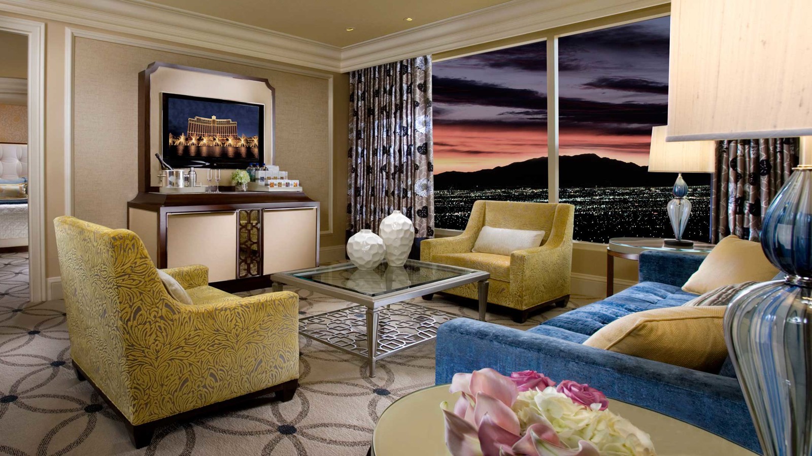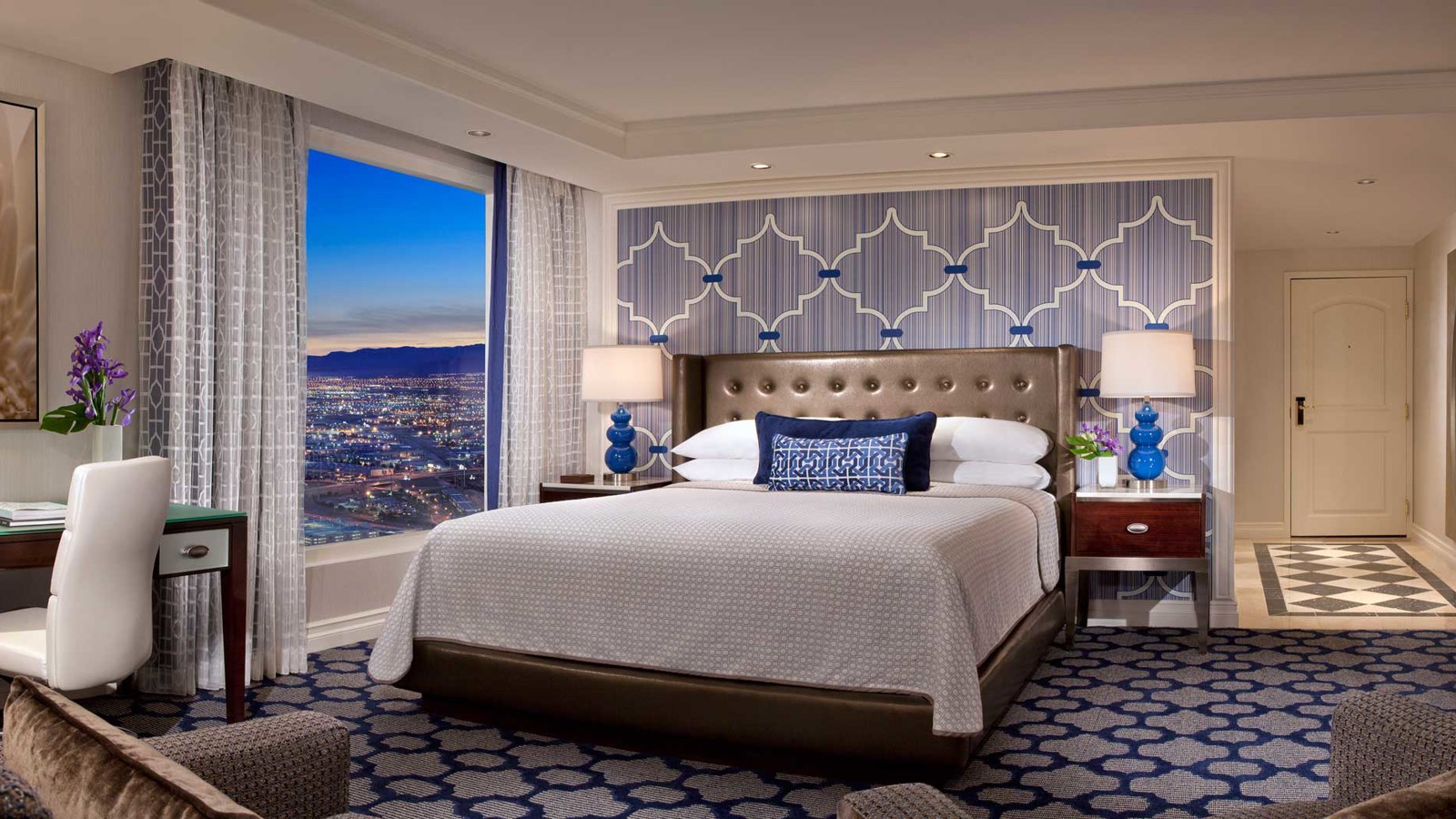 Bellagio behöver ingen närmare presentation. Det är ett av Las Vegas mest berömda hotell och dess dansande fontäner har blivit en symbol för hela staden. Det stora hotellet har nästan 4000 rum som sträcker sig från otaliga rumskategorier till lyxiga sviter och stora villor som erbjuder stadens kanske bästa och mest privata boende. Hotellet är ritat och inspirerat efter den pittoreska staden Bellagio vid Comosjön. Rum och sviter är lyxigt inredda med bekväma sittgrupper, frostat glas, marmorgolv och andra italienskt inspirerade detaljer med färgpaletter i grönt te/plommon eller indigo/platina. Villorna erbjuder det bästa för resenären med höga krav. De nio villorna har privata gårdar, terrasser, pool, jacuzzi, öppen spis, gym, bastu och en privat frisersalong. Dessutom limousinservice, 24-timmars butler, schweiziska ångduschar och badrumsprodukter från Michael Kors. Hotellets Casino är vida känt, precis som den exklusiva märkesshoppingen på Via Bellagio. Nattklubben The Bank är en av Las Vegas allra hetaste, precis som The Hyde – en hotspot i form av toskansk trädgård designad av Phillippe Starck. Bellagio har flera restauranger där exklusiva Picasso med två stjärnor i Guide Michelin är juvelen i skattkistan.