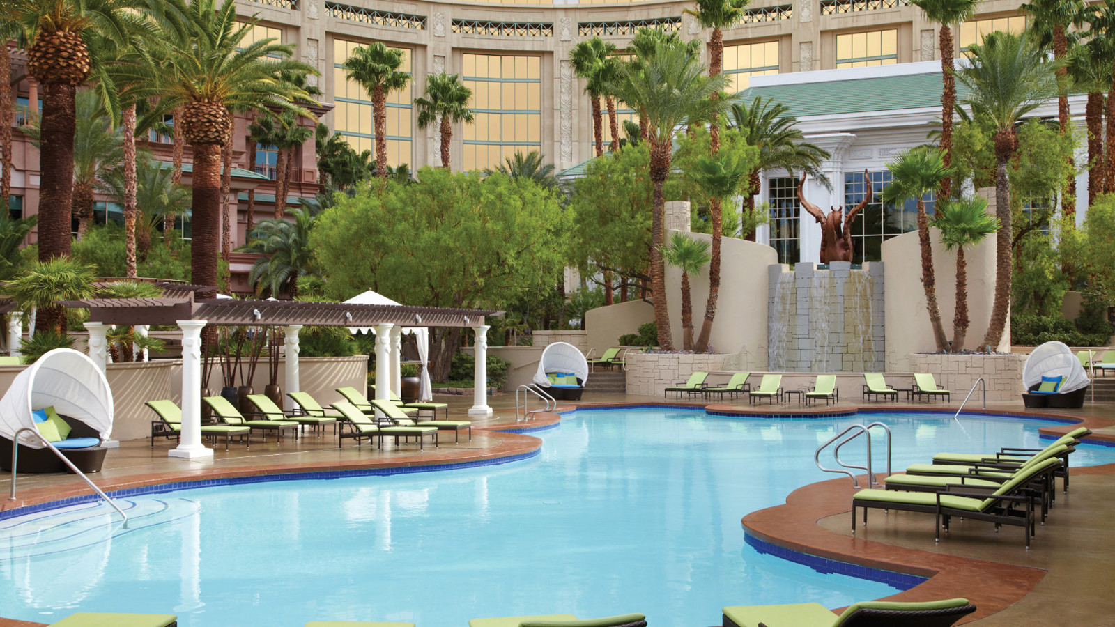 Four Seasons Hotel Las Vegas är Las Vegas mest tropiska hotell. Längs 30 hektar av The Strip ligger ett lyxhotell inbäddat i en lummighet som påminner mer om en lagun i Thailand än den torra öknen i Nevada. Skuggande palmer i lummiga lundar, sandkantade pooler och exotisk arkitektur skapar en både spännande och elegant upplevelse av Las Vegas. Familjen trivs garanterat i de sex poolerna (varav en med vågmaskin!) omringade av nio privata bungalows och över 20 cabanas. Byggnaden består av två hotell med THE Hotel at Mandalay Bay som kronan på den gyllene skyskrapan. Rum och sviter är inredda under temat ”avslappnad elegans” med komfort och varma textilier i tilltalande toner. Restauranger, barer, casino och spa är av högsta klass. På Mandalay Bay har ständigt shower med världsartister eller spektakulära uppsättningar i bästa Vegas-stil. Det är ett hotell som har allt och lite till.