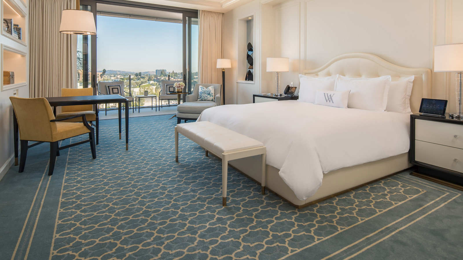 Från det ögonblick du stiger är det uppenbart att du har kommit till ett hotell utöver det vanliga. Lobbyn är majestätiskt inredd i art deco-stil. De generöst rymliga rummen är designade av den franska legendariska inredningsfirman Pierre-Yves Rochon. Alla med har toppmodern teknik med platt-tv, Ipads och sms-service, fönster från golv till tak och stora balkonger. Hotellet andas lyx, med eleganta element som varma vita stendetaljer och trä. Maten på de två väl genomtänkta restaurangerna är även den något alldeles speciell. Vad sägs om smaker från Latinamerika och Sydostasien, kombinerat med New York-flare och Kaliforniens lokala influenser? Frukosten är en modern twist på den traditionella, med utsökta buttermilk-pannkakor, fluffiga omeletter, chiapuddingar, acaibowls och stor fokus på ekologiskt. Missa inte den lockande uppvärmda takpoolen, spat med produkter från La Praire Switzerland, och det fullt utrustade gymmet. Waldorf Astoria är perfekt beläget i hjärtat av Beverly Hills. Bara ett stenkast från hotellet ligger Rodeo Drive där du kan shoppa i high fashion-butiker och besöka lyxiga restauranger eller så fortsätter du ner på Santa Monica Boulevard mot glittrande Hollywood.