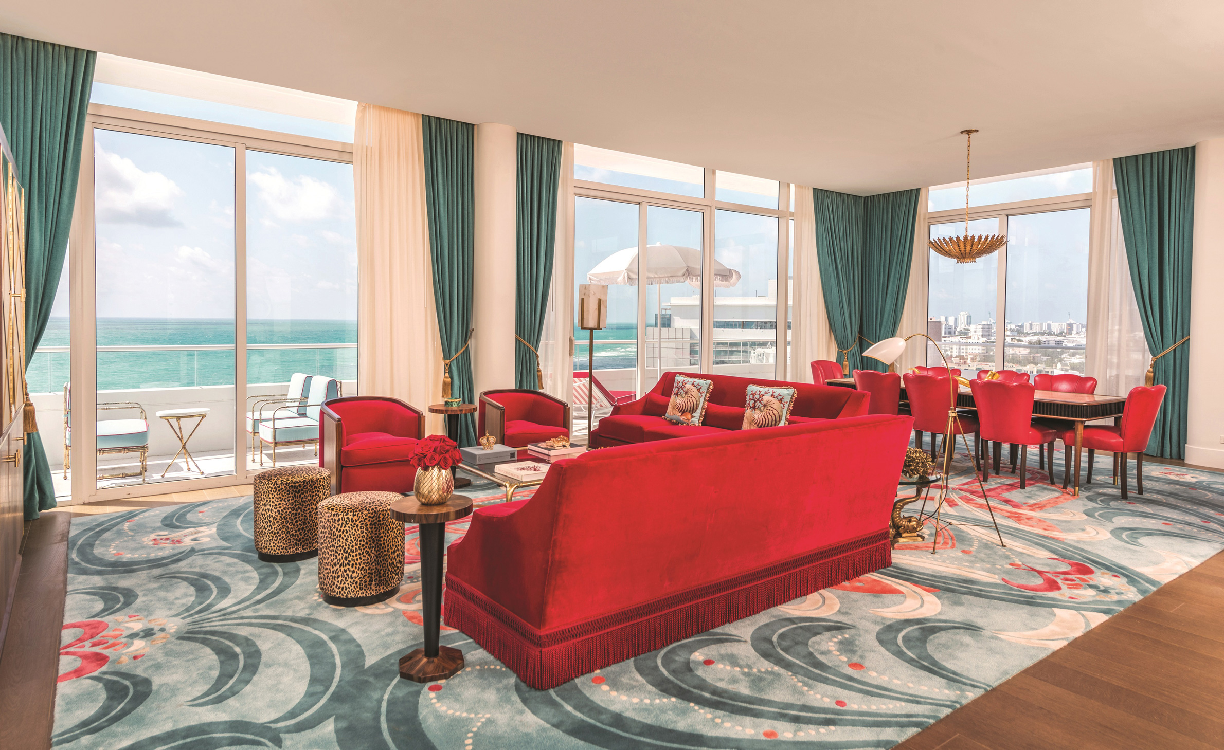 Härligt annorlunda och udda Faena Hotel Miami Beach är den ultrapersonliga utopin till lyxhotell i ett samarbete mellan hotellägaren Alan Faena, kostymdesignern Catherine Martin och hennes make, den australiensiske stjärnregissören Baz Luhrmann (Moulin Rouge, The Great Gatsby). Resultatet är ett hotell med fantastiskt designade rum där till och med galgarna är svepta i röd sammet. De klarröda färgerna med starka mönster och kakelblå detaljer matchar den härliga utsikten över Atlanten eller Miami Beach. Badrummen har underbart djupa badkar och handfat i travertin - samma material som Colosseum och Sankt Peterskyrkan är uppförda i. Varje våningsplan har dessutom en egen butler – dygnet runt. Faena attraherar en internationell publik som uppskattar ”galen glamour”, men som även har höga krav på menyer och vinlistor. Den argentinske stjärnkrögaren Francis Mallman driver Los Fuegos, och Pao drivs av den amerikanske kockhjälten Paul Qui. Den sistnämnda har en gigantisk guldkupol i matsalen som gör måltiden till en teaterscen. Faenas Spa, Tierra Santa Healing är det första sydamerikanskt inspirerande spaet i USA som erbjuder behandlingar baserade på antik läkekonst. En favorit på Faen Hotel Miami Beach är The Living Room, en cocktailbar med ett soft soundtrack av tango, gammal Edith Piaf och moderna artister med gamla örhängen som Besame mucho. En härlig kontrast till den vanligt dunkande housemusiken på South Beach.