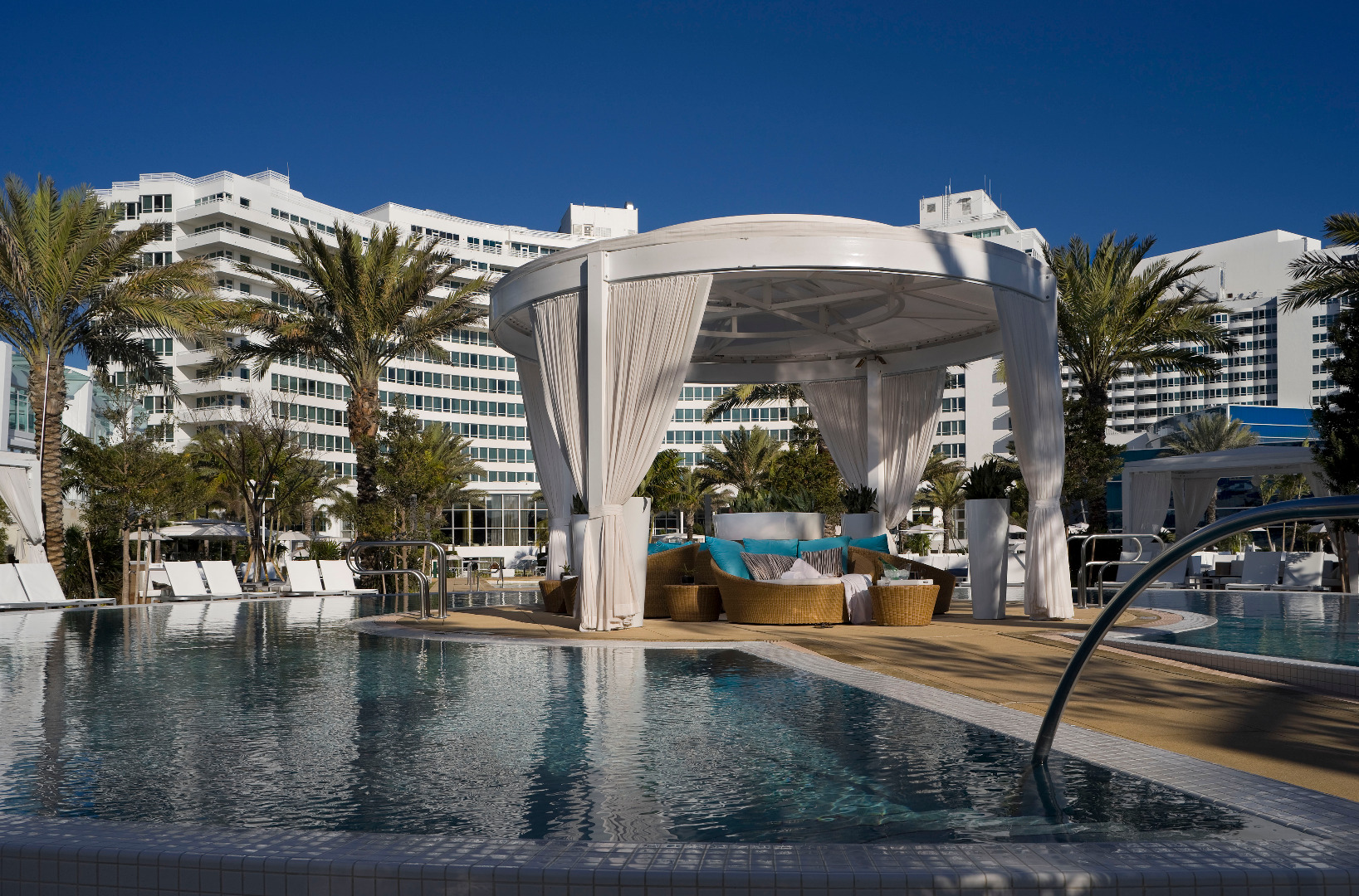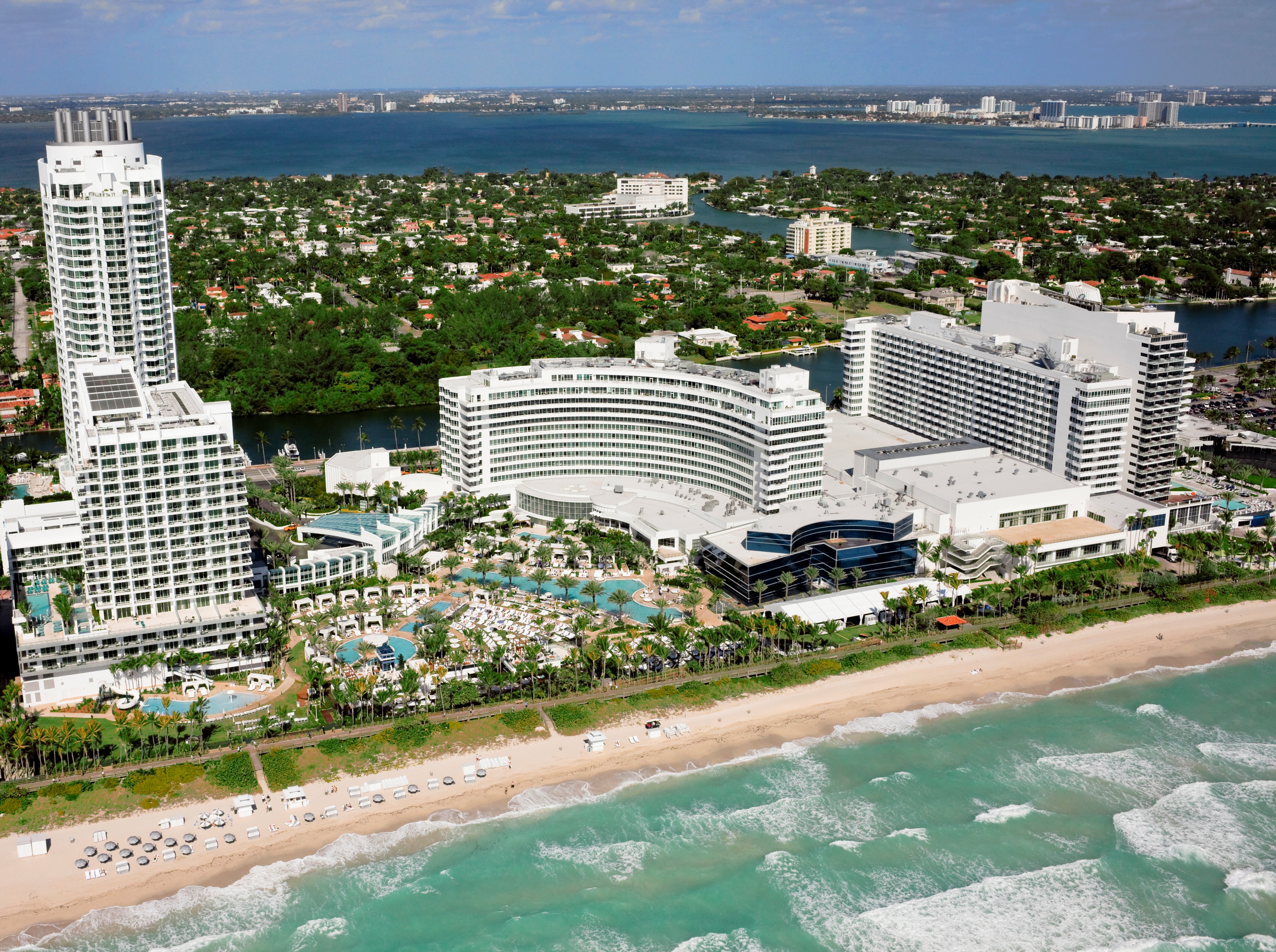 Fontainebleau Miami Beach är en spektakulär blandning av modern lyx och glamouren från “The Golden Era”. Det vita hotellet har genom åren förblivit en favorit i Miami. Den legendariska arkitekten Morris Lapidus mästerverk lever vidare och har uppdaterats till att bli platsen där design, konst, musik, mode samt modern teknik smälter samman till en unik och levande upplevelse. I Fontainebleaus värld är du fri att spela på kasino, shoppa i boutique, äta på trendigaste restaurang, koppla av på spa eller bara softa i en privat cabana på stranden eller vid den stora poolen. För nöjet står stora artister som regelbundet besöker nattkubben – en given mötesplats i South Beachs levande nätter. Underhållning är en del i Fontainebleaus koncept och sedan öppnandet 1954 har traditionen gått från Elvis Presley och Frank Sinatra till dagens Lady Gaga och Maroon 5. Boende sker i rymliga rum och stora sviter, antingen i de klassiska Fontainebleau Chateau och Versailles-byggnaderna, eller i de nyare hotelltornen. Inredningen är klassiskt sober i vitt med fantasieggande detaljer och oftast med fantastisk vy över Atlanten och South Beach. Fontainebleau Miami Beach är ett stort hotell med stora krav. Somliga säger störst i Miami.