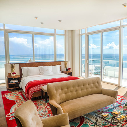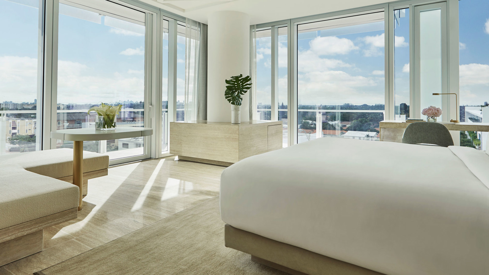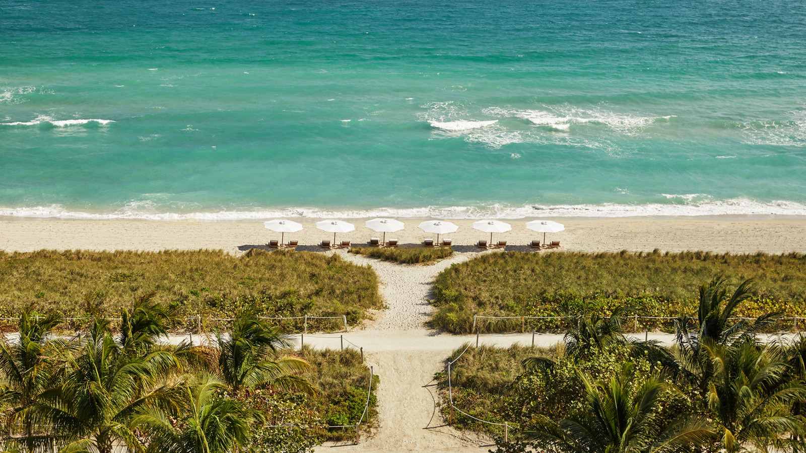 Det var legendariska Miami Surf Club som under 1930-talet gav Miami sitt rykte. Vid de stora sanddynerna i Surfside strax söder om Bal Harbor trivdes såväl kubanska romsmugglare som Elizabeth Taylor, Frank Sinatra och Winston Churchill (som dock åkte hit för att måla och installerade sig i en egen cabana). Den anrika byggnaden ritad av arkitekten Russell Pancoast har fått en ansiktslyftning med ett ultramodernt glastorn designad av självaste Richard Meier. Idag är Four Seasons Hotel The Surf Club och Miamis senaste hotell på heta listan. Det har heller inte sparats på design när det gäller boende där underbarnet Joseph Dirand, mannen bakom Givenchy, Balmain och Chloés butiker, har engagerats. Rum och sviter är sublima med lyxig finish i marmor, mässing och solblekt lövträ i paletter i toner av creme, sand och ljusgrönt. Stora sängar i vit plysch och vackra möbler som arkitektritad schäslong, soffa och bord. Golven går från tak till fönster och täcks av en mörk gardin som effektfullt öppnar upp mot havsutsikten varje gång du kommer tillbaka till rummet. På hotellets ägor finns tre swimmingpooler med cabanas och ett stort spa omgivet av lugna gräsmattor perfekta för en timmes yoga. Restaurangen La Sirenuse ligger i Surf Clubs gamla balsal och bokstavligen tar Positano till Miami med en smak av Amalfikusten i klassiska rätter som Caprese Ravioli och dagsfärsk fisk.